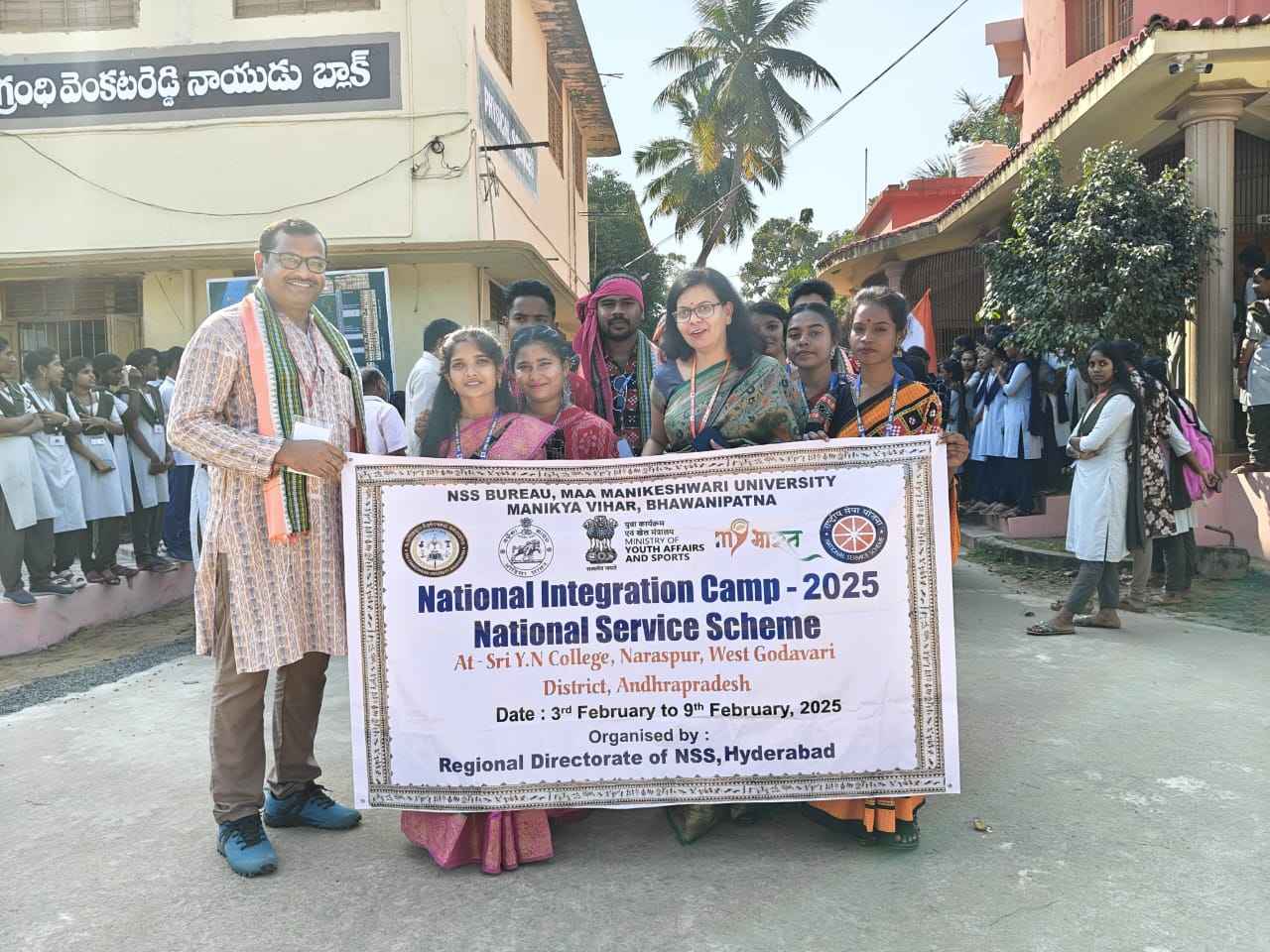 କ୍ରୀଡ଼ା ଓ ଯୁବ ବ୍ୟାପାର ମନ୍ତ୍ରଣାଳୟ ଭାରତ ସରକାର ଓ ଜାତୀୟ ସେବା ଯୋଜନା ଆଞ୍ଚଳିକ ନିର୍ଦ୍ଦେଶାଳୟ ହାଇଦ୍ରାବାଦର ସହଭାଗିତାରେ ୱାଇ ଏନ୍ କଲେଜ ନରସାପୁର ଆନ୍ଧ୍ରପ୍ରଦେଶ ଦ୍ଵାରା ଆୟୋଜିତ ସାତ ଦିନିଆ ରାଷ୍ଟ୍ରୀୟ ଏକତା ଶିବିର ଉଦଘାଟିତ ହୋଇଯାଇଛି।ଆଦି କବି ନନନ୍ୟା ବିଶ୍ଵବିଦ୍ୟାଳୟ ରାଜମଣ୍ଡିର କୁଳପତି ପ୍ରଫେସର ୱାଇ ଶ୍ରୀନିବାସ ରାଓ ଶିବିରକୁ ଉଦଘାଟନ କରିଥିବାବେଳେ ଅଧ୍ୟକ୍ଷ ଡଃ ସି ଏଚ୍ କନକ ରାଓ ସଭାପତିତ୍ବ କରିଥିଲେ।ମୁଖ୍ୟ ଅତିଥି ଭାବେ ଆଞ୍ଚଳିକ ନିର୍ଦ୍ଦେଶାଳୟ ଏନ୍ ଏସ ଏସ ହାଇଦ୍ରାବାଦର ଡ ୟମ ରାମ କ୍ରୀଷ୍ଣା ଓ କାର୍ଯ୍ୟକ୍ରମ ସଂଯୋଜକ ପି ଭେଙ୍କଟେଶ୍ୱର୍ ରାଓ ଯୋଗଦାନ କରିଥିଲେ ।ଆଞ୍ଚଳିକ ନିର୍ଦ୍ଦେଶାଳୟ ଏନ୍ ଏସ ଏସ ଭୁବନେଶ୍ୱରର