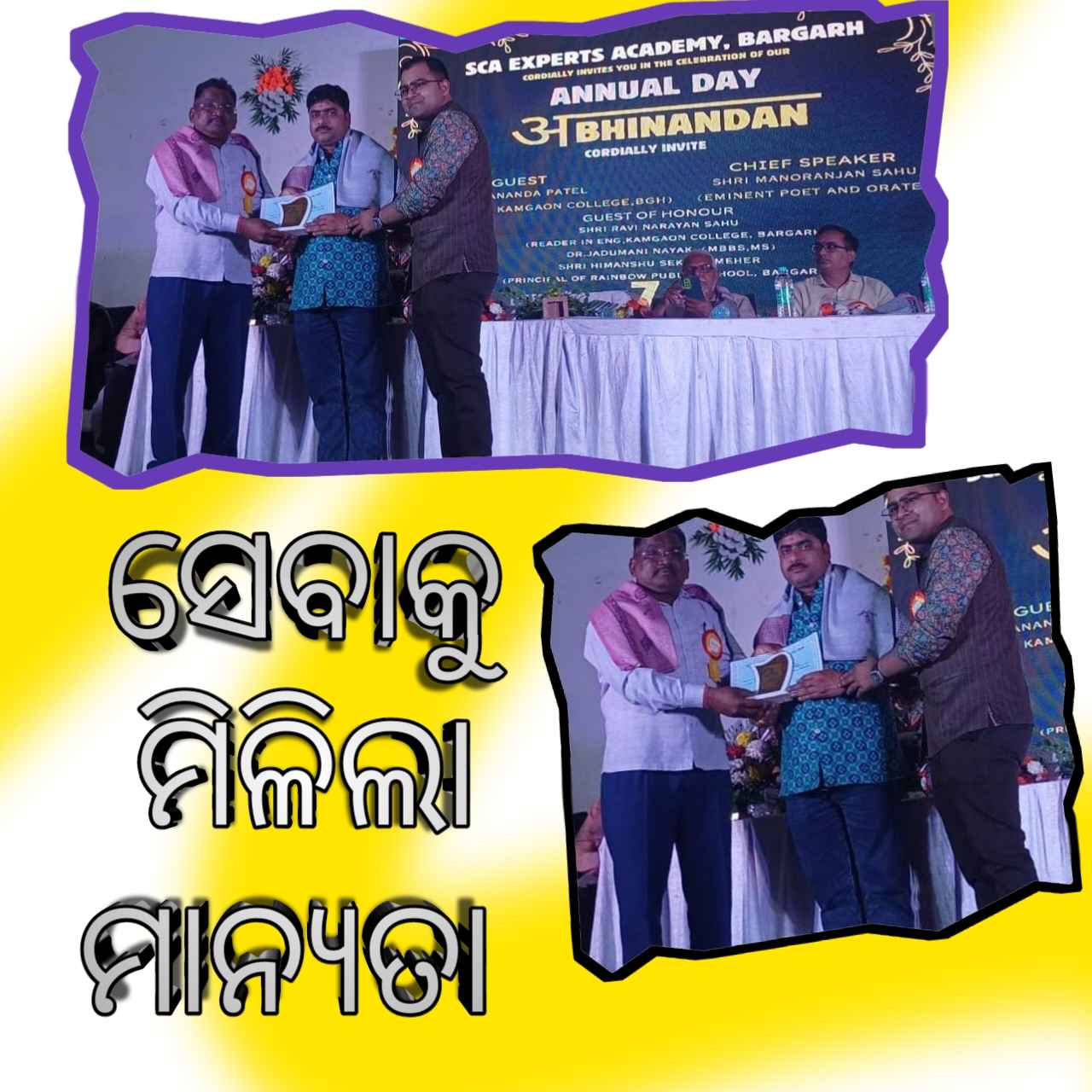 ବରଗଡ଼(ପ୍ରେରଣା ଖବର)- ବରଗଡର ଅଗ୍ରଣୀ ଶିଷ୍ୟ ଅନୁଷ୍ଠାନ ଏସ ସି ଏ ଏକାଡୋମି ର ପ୍ରଥମ ବାର୍ଷିକ ଉତ୍ସବ ବରଗଡ଼ ସ୍ଥିତ ବିଜୁ ପଟ୍ଟନାୟକ ଟାଉନ ହଲ ଠାରେ ଅନୁଷ୍ଠାନ ସମାରୋହରେ ମହାମାରୀ କରୋନା ସମୟରେ ସେବା ତଥା କୁଷ୍ଠ ରୋଗୀ ମାନଙ୍କ ସେବା ଟ୍ରଷ୍ଟ ଜନ କଲ୍ୟାଣ ସେବା ଟ୍ରଷ୍ଟ ର ପ୍ରତିଷ୍ଠାତା ଶ୍ରୀ ଡଃ ମୁକୁନ୍ଦ ଦାଶ ଙ୍କୁ ଅନୁଷ୍ଠାନ ର ମୁଖ୍ୟ ଡଃ ଦେବାଶିଷ ବିରତିୟାଙ୍କ ସହିତ ଅତିଥି ମାନଙ୍କ ଠାରୁ ମାନପତ୍ର ଓ ମୋମେଟୋ ସହ ଉପଢୌକନ ଦେଇ ସମ୍ବର୍ଦ୍ଧିତ କରିଥିଲେ ଏହି କାର୍ଯ୍ୟକ୍ରମ ଅନେକ ବିଶିଷ୍ଟ ସମାଜସେବୀ ତଥା ଶିକ୍ଷାବିତ୍ ତଥା ଛାତ୍ରୀ ଓ ଛାତ୍ରୀ ମାନଙ୍କୁ ମଧ୍ୟ ଅନୁଷ୍ଠାନ ତରଫରୁ ସମ୍ମାନିତ କରାଯାଇଥିଲା,ସେବା ପାଇଁ ଜନ କଲ୍ୟାଣ ସେବା ଟ୍ରଷ୍ଟ କୁ ସ୍ଵତନ୍ତ୍ର ଭାବେ ସମ୍ମାନିତ କରାଯାଇଥିଲା,ଏହି ସମ୍ମାନ ଜନ କଲ୍ୟାଣ ସେବା ଟ୍ରଷ୍ଟ ପାଇଁ ନୁହେଁ ସାରା ବରଗଡ଼ ବାସୀ ତଥା ଓଡ଼ିଶା ବାସୀ ଙ୍କ ଆଶିର୍ବାଦ ଓ ଉତ୍ସାହ ପାଇଁ ଅଟେ ବୋଲି ଅନୁଷ୍ଠାନ ର ପ୍ରତିଷ୍ଠାତା ଡଃ ମୁକୁନ୍ଦ ଦାଶ ସୂଚନା ପ୍ରଦାନ କରିଛନ୍ତି, ପ୍ରକାଶ ଥାଉକି ୨୦୦୮ ମସିହା ରୁ ଅସହାୟ ଲୋକଙ୍କ ସେବା ପାଇଁ ଅନୁଷ୍ଠାନ ନିଜକୁ ସମର୍ପିତ କରିଛି ବୋଲି ଜନ କଲ୍ୟାଣ ସେବା ଟ୍ରଷ୍ଟ ର ସୂଚନା ଓ ଲୋକସମ୍ପର୍କ ଅଧିକାରୀ ଡ଼ଃ ଅଜିତ କୁମାର ନାଥ ସୂଚନା ପ୍ରଦାନ କରିଛନ୍ତି,