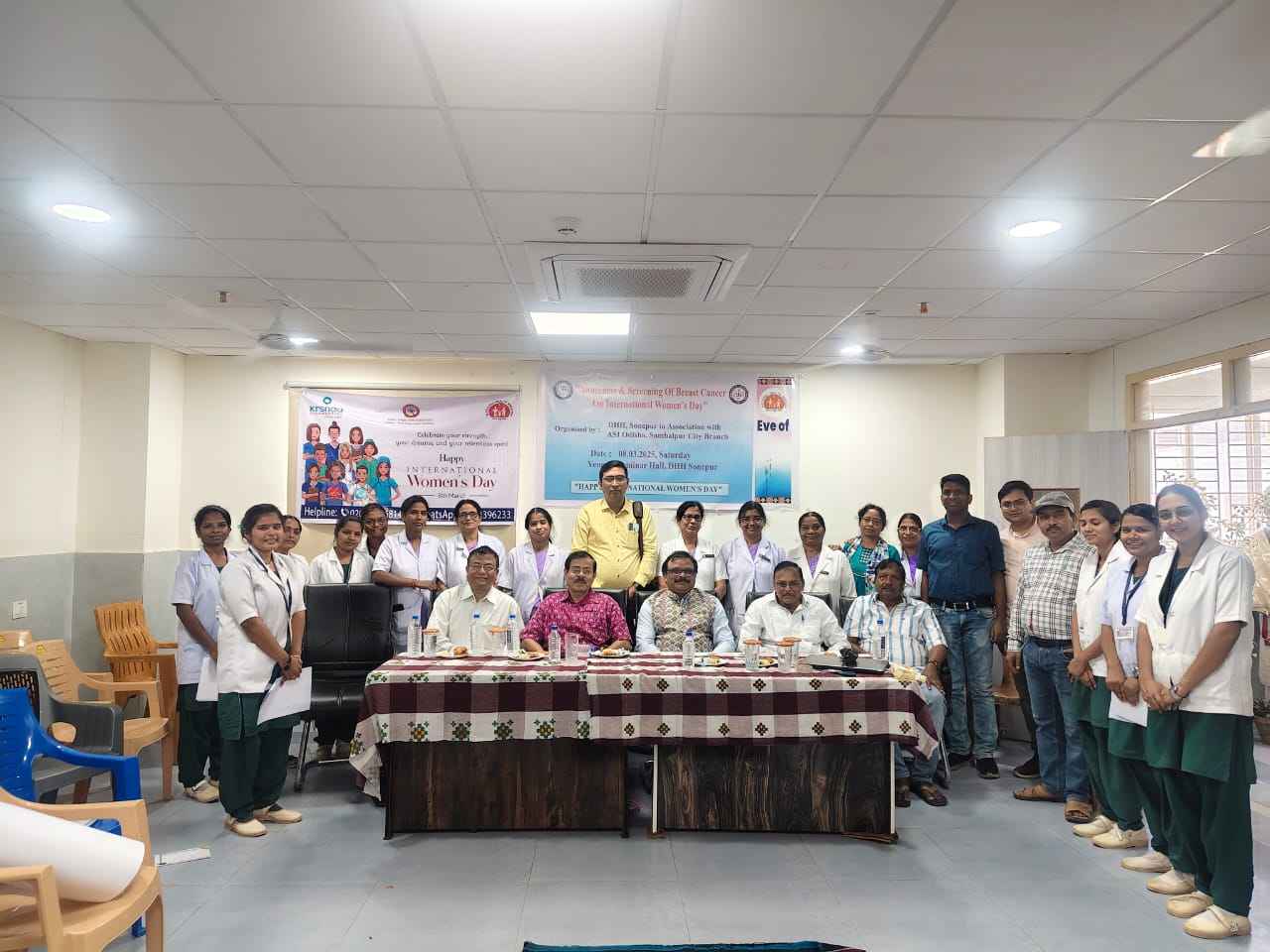 ଜିଲ୍ଲା ମୁଖ୍ୟ ଚିକିତ୍ସାଳୟ ମୀଟିଙ୍ଗ ହଲ ଠାରେ ଆନ୍ତର୍ଜାତୀକ ମହିଳା ଦିବସ ଭାରପ୍ରାପ୍ତ ଜିଲ୍ଲା ମୁଖ୍ୟ ଚିକିତ୍ସା ଓ ଜନ ସ୍ୱାସ୍ଥ୍ୟ ଅଧିକାରୀ ଡା ଦୁର୍ଗା ଦତ୍ତ ଦାସ ଙ୍କ ଅଧ୍ୟକ୍ଷତାରେ ଅନୁଷ୍ଠିତ ହୋଇଯାଇଅଛି. ଉକ୍ତ ସଭାରେ ଆସୋସିଏସନ ସର୍ଜନ ଅଫ ଇଣ୍ଡିଆ ସିଟି ବ୍ରାଞ୍ଚ ସମ୍ବଲପୁର ର ସଭାପତି ଡା ରାଜକୁମାର ସାହୁ ସିନିଅର ସର୍ଜରୀ ସ୍ପେସିଆଲିଷ୍ଟ ଡି ଏଚ ଏଚ ବରଗଡ ଓ ସମ୍ପାଦକ ଡା ପ୍ରତ୍ୟୁଷ ରଞ୍ଜନ ବିଶି ଆସୋସିଏଟ ପ୍ରଫେସର ସର୍ଜରୀ ବୁର୍ଲା , ସମଲେଶ୍ୱରୀ ନରସିଙ୍ଗ ହୋମ ବୁର୍ଲା ର ଡିରେକଟର ଡା ରବୀନ୍ଦ୍ର ପ୍ରଧାନ, ସହକାରୀ ପ୍ରଫେସର ସର୍ଜରୀ ଡା ବିଶ୍ୱଜିତ ବେଦବାକ ବୁର୍ଲା,ଡା ବିପିନ ବିହାରୀ ସାହୁ ସର୍ଜରୀ ସ୍ପେସିଆଲିଷ୍ଟ, ସିନିଅର ସ୍ପେସିଆଲିଷ୍ଟ ସ୍ତ୍ରୀ ଓ ପ୍ରସୂତି ରୋଗ ଡା ପ୍ରକାଶ ଚନ୍ଦ୍ର ଦଣ୍ଡସେନା ଓ ଡା ମାନସ ଦଣ୍ଡପାଟ ସବୁ ମଞ୍ଚାସିନ ଥିଲେ. ଏହି ସଭାରେ ସରକାରୀ ମହିଳା ସ୍ୱାସ୍ଥ୍ୟକର୍ମୀ ତାଲିମକେନ୍ଦ୍ର ର ଛାତ୍ରୀ ତଥା ବିଜୁ ପଟନାୟକ ନର୍ସିଙ୍ଗ କଲେଜ ସୋନପୁର ର ଛାତ୍ରୀ, ସୁବର୍ଣ୍ଣପୁର ନର୍ସିଙ୍ଗ କଲେଜ ର ସ୍ତୁଡେଣ୍ଟ ସବୁ ଉପସ୍ଥିତ ଥିଲେ ଅନ୍ୟ ମାନଙ୍କ ମଧ୍ୟରେ ଡି ଏଚ ଏଚ ର ସମସ୍ତ ନର୍ସିଙ୍ଗ ଅଫିସର, ଏ ଏମ ଏନ ସି ଡି ଗୀତାଞ୍ଜଳି ମେହେର, ହସ୍ପିଟାଲ ମ୍ୟାନେଜର ବି କେ ସାଗରୀକା ପ୍ରମୁଖ ଉପସ୍ଥିତ ଥିଲେ. ସମସ୍ତ ଅତିଥି ମହିଳା ସଶକ୍ତି କରଣ ଉପରେ ମତ ରଖିଥିଲି. ମହିଳା ମାନଙ୍କର ସ୍ୱାସ୍ଥ୍ୟ କିପରି ଭଲ ରହିବ ଓ ସମାଜ ରେ ସେମାନେ କିପରି ପ୍ରତିଷ୍ଠିତ ହୋଇ ଦେଶ ଗଠନ ରେ ପ୍ରମୁଖ ଭୂମିକା ନେଇପାରିବେ ତା ଉପରେ ମତ ପ୍ରକାଶ ହୋଇଥିଲା. ମହିଳା ମାନେ ବିଭିନ୍ନ ରୋଗ ଯଥା ବ୍ରେଷ୍ଟ କେନସର ୟୁଟେରସ କ୍ୟାନସର ରୁ ପ୍ରାଥମିକ ସ୍ତର ରୁ ଚି଼ହ୍ନଟି କରଣ ହୋଇ ଏ ସବୁ ରୁ ମୁକ୍ତି ଲାଭ କରିବେ ତା ଉପରେ ପାୱାର ପଏଣ୍ଟ ମାଧ୍ୟମ ରେ ବୁଝାଇ ଦିଆଯାଇଥିଲା. ସ୍ୱାସ୍ଥ୍ୟ ପରିଦର୍ଶକ ପ୍ରମୋଦ କୁମାର ସାହୁ ସମସ୍ତ କାର୍ଯ୍ୟକ୍ରମ କୁ ପରିଚାଳନା କରିଥିଲେ ଓ ଶେଷ ରେ ଧନ୍ୟବାଦ ଅର୍ପଣ କରିଥିଲେ.