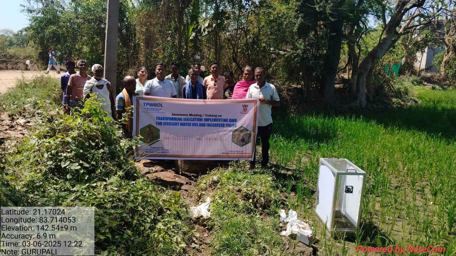 .ବରଗଡ ଜ଼ିଲ୍ଲା ଭେଡେନ ବ୍ଲକ ଅଇଲାପାଲି ଅନ୍ତର୍ଗତ ଗୁରୁପାଲି ଗ୍ରାମ ରେ ମହାଶକ୍ତି ଫାଉଣ୍ଡେସନ ଓ ଟିପିଡବ୍ଲୁଓଡିଏଲ ର ମିଳିତ ଆନୁକୂଲ୍ୟରେ ହେଉଥିବା ଅଦଲବଦଲ ଜଳସେଚନ ପଦ୍ଧତି ରେ ଧାନ ଚାଷ ପ୍ରକଳ୍ପ ତରଫରୁ ଆଜି ମିଥେନ ଗ୍ୟାସ ନମୁନା ସଂଗ୍ରହଣ କାର୍ଯ୍ୟକ୍ରମ ଅନୁଷ୍ଠିତ ହୋଇଯାଇଛି l ଏହି କାର୍ଯ୍ୟକ୍ରମ ରେ ମହାଶକ୍ତି ଫାଉଣ୍ଡେସନ ତରଫରୁ ପ୍ରକଳ୍ପ ମୁଖ୍ୟ ସ୍ମୃତିରଞ୍ଜନ ସେଠି ଯୋଗଦାନ କରି ଧାନ ଚାଷରେ କିପରି ଭାବରେ ଚେମ୍ବର ବାକ୍ସ ଦ୍ୱାରା ମିଥେନ ଗ୍ୟାସ ସଂଗ୍ରହ କରାଯାଏ ତାହାର ତାଲିମ୍ ସହିତ ପ୍ରଥମ ନମୁନା ସଂଗ୍ରହ କରିଥିଲେ l ଏହି ଅବସରରେ ଗ୍ରାମର ବହୁ ସଂଖ୍ୟାରେ ଚାଷୀ ମାନେ ଏହି ତାଲିମ୍ ରେ ଅଂଶଗ୍ରହଣ କରିଥିଲେ l କାର୍ଯ୍ୟକ୍ରମ ରେ ଗ୍ରାମର ମନୋଜ ବେହେରା ସହଯୋଗ କରିଥିବା ବେଳେ ମହେଶ୍ୱର କର୍ଣ ନମୁନା ସଂଗ୍ରହ କରିଥିଲେ l