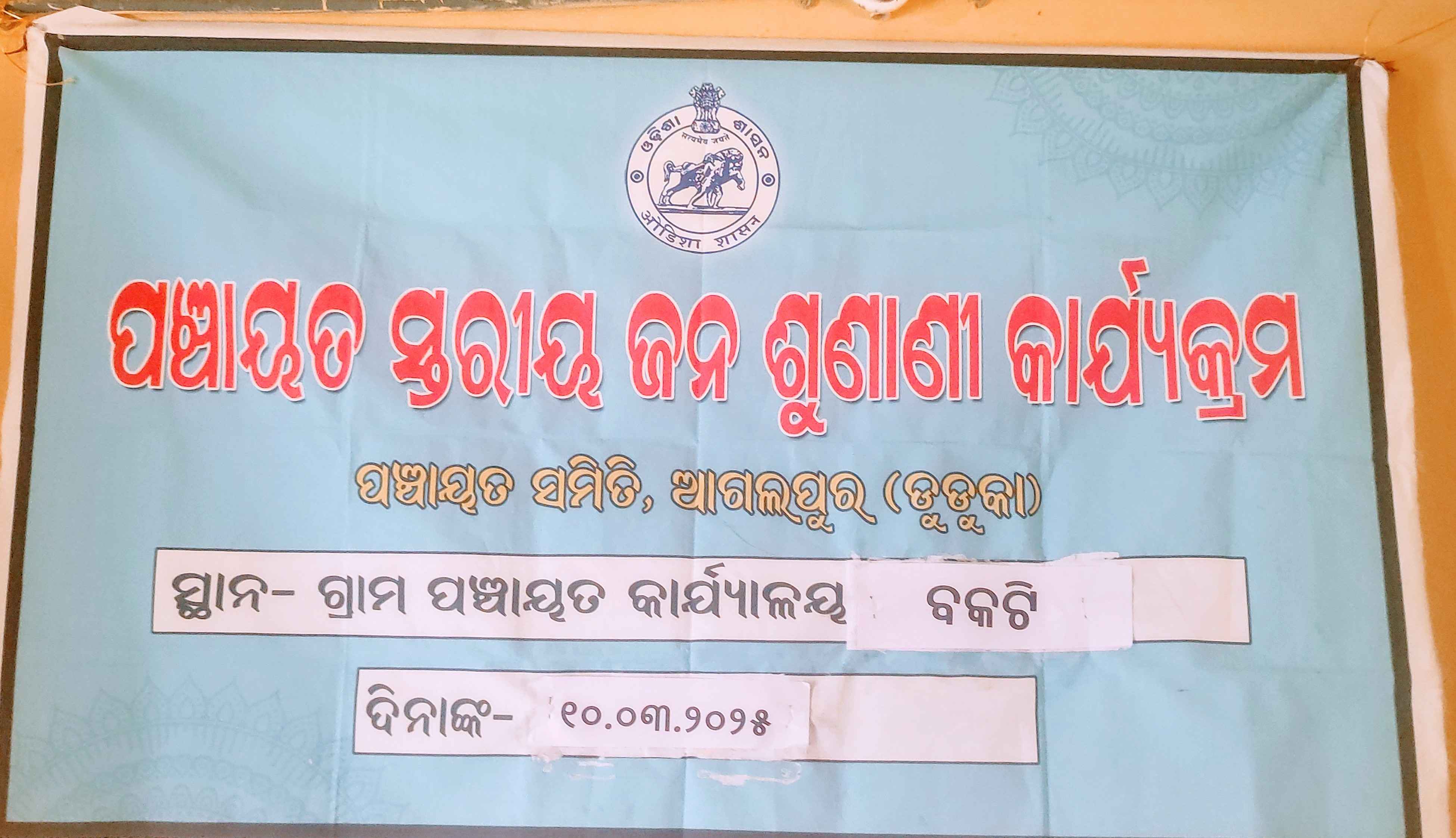 ଆଗଲପୁର, (ବିନୋଦ ଦୀପ) ଆଗଲପୁର ବ୍ଲକ ବକଟି ପଞ୍ଚାୟତ ରେ ପଞ୍ଚାୟତ ସ୍ତରୀୟ ଜନ ଶୁଣାଣି ଶିବିର ଅନୁଷ୍ଠିତ ହୋଇ ଯାଇଛି l ଗ୍ରାମ ପଞ୍ଚାୟତ ର ନାଏବ ସରପଞ୍ଚ ସୁଶୀଲ ସେଠ ଓ କାର୍ଯ୍ୟନିର୍ବାହୀ ଅଧିକାରୀ ସୁଶ୍ରୀ ରୀତିକାରାଣୀ ପଟ୍ଟନାୟକ ଓ ଅତିରିକ୍ତ କାର୍ଯ ନିର୍ବାହୀ ଅଧିକାରୀ ଶ୍ରୀ ବିଜୟ କୁମାର ସାହୁ ଙ୍କ ତତ୍ୱାବଧାନ ରେ କାର୍ଯ୍ୟକ୍ରମ ଅନୁଷ୍ଠିତ ହୋଇ ଯାଇଛି। ଗ୍ରାମ ପଞ୍ଚାୟତ ଅଧିକାରୀ ଶ୍ରୀ ସୌଭାଗ୍ୟ କୁମାର ପଧାନ୍ ମଧ୍ୟ ପଞ୍ଚାୟତ ସ୍ତରୀୟ ଜନ ଶୁଣାଣି କାର୍ଯକ୍ରମ ରେ ପୂର୍ଣ୍ଣ ସହଯୋଗ କରିଥିଲେ।ଆଜିର ଜନ ଶୁଣାଣି ଶିବିର କାର୍ଯକ୍ରମ ଆଗଲପୁର ବ୍ଲକ୍ , ଏବିଡ଼ିଓ ରୁଦ୍ରପ୍ରତାପ ସୁନା, ଶିଶୁ ବିକାଶ ପ୍ରକଳ୍ପ ଅଧିକାରୀ ଶ୍ରୀମତୀ ଶୁଭଶ୍ରୀ ମିଶ୍ର, ସାମାଜିକ ସୁରକ୍ଷା ଅଧିକାରୀ ଶ୍ରୀ ସୁଶାନ୍ତ ମହାକୁର, ସ୍ବାସ୍ଥ୍ୟ ଓ ପରିମଳ ବିଭାଗର ଯନ୍ତ୍ରୀ ଶ୍ରୀ ଦୁର୍ଗାପ୍ରସାଦ ମିଶ୍ର, ଅଭି ସାହୁ, ଅଂଶୁମାନ ବାବୁ, ଉଦ୍ୟାନ ବିଭାଗ ର ନରେନ୍ଦ୍ର ପଧାନ, ବି ପି ଏମ ଶ୍ରୀ ସରୋଜ କୁମାର ଧରୂଆ ମଧ୍ୟ କାର୍ଯ୍ୟକ୍ରମ ରେ ଯୋଗ ଦେଇଥିଲେ l