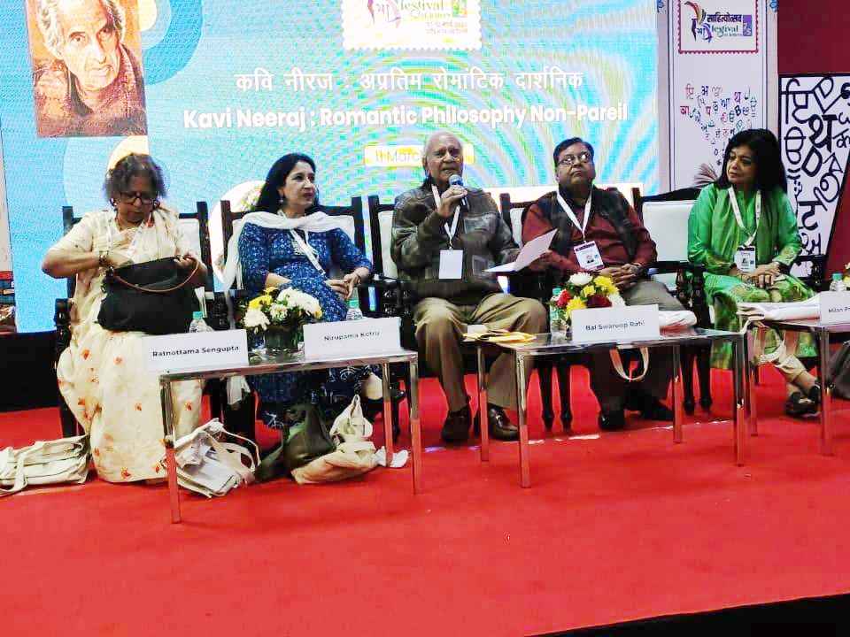 ସେହିପରି ଗୋପାଳଦାସ ନୀରଜଙ୍କ ଜନ୍ମ ଶତବାର୍ଷିକୀରେ, 'କବି ନୀରଜ: ଏକ ଅପ୍ରତିମ ରୋମାଣ୍ଟିକ ଦାର୍ଶନିକ' ଶୀର୍ଷକ ଏକ ଆଲୋଚନା ପ୍ରଖ୍ୟାତ ଗୀତିକାର ବାଲସ୍ୱରୂପ ରାହିଙ୍କ ଅଧ୍ୟକ୍ଷତାରେ ଅନୁଷ୍ଠିତ ହୋଇଥିଲା। ଏଥିରେ ନୀରଜଙ୍କ ପୁଅ ମିଲନ ପ୍ରଭାତ ଗୁଞ୍ଜନଙ୍କ ସମେତ ଅଳକା ସରାଓଗୀ, ନିରୁପମା କୋତ୍ରୁ ଏବଂ ରତ୍ନୋତ୍ତମା ସେନଗୁପ୍ତ ଯୋଗ ଦେଇଥିଲେ। 'କଥାସନ୍ଧି' କାର୍ଯ୍ୟକ୍ରମରେ ପ୍ରସିଦ୍ଧ ହିନ୍ଦୀ ଗାଳ୍ପିକ ଜିତେନ୍ଦ୍ର ଭାଟିଆ ଗଳ୍ପ ପାଠ କରିଥିଲେ।