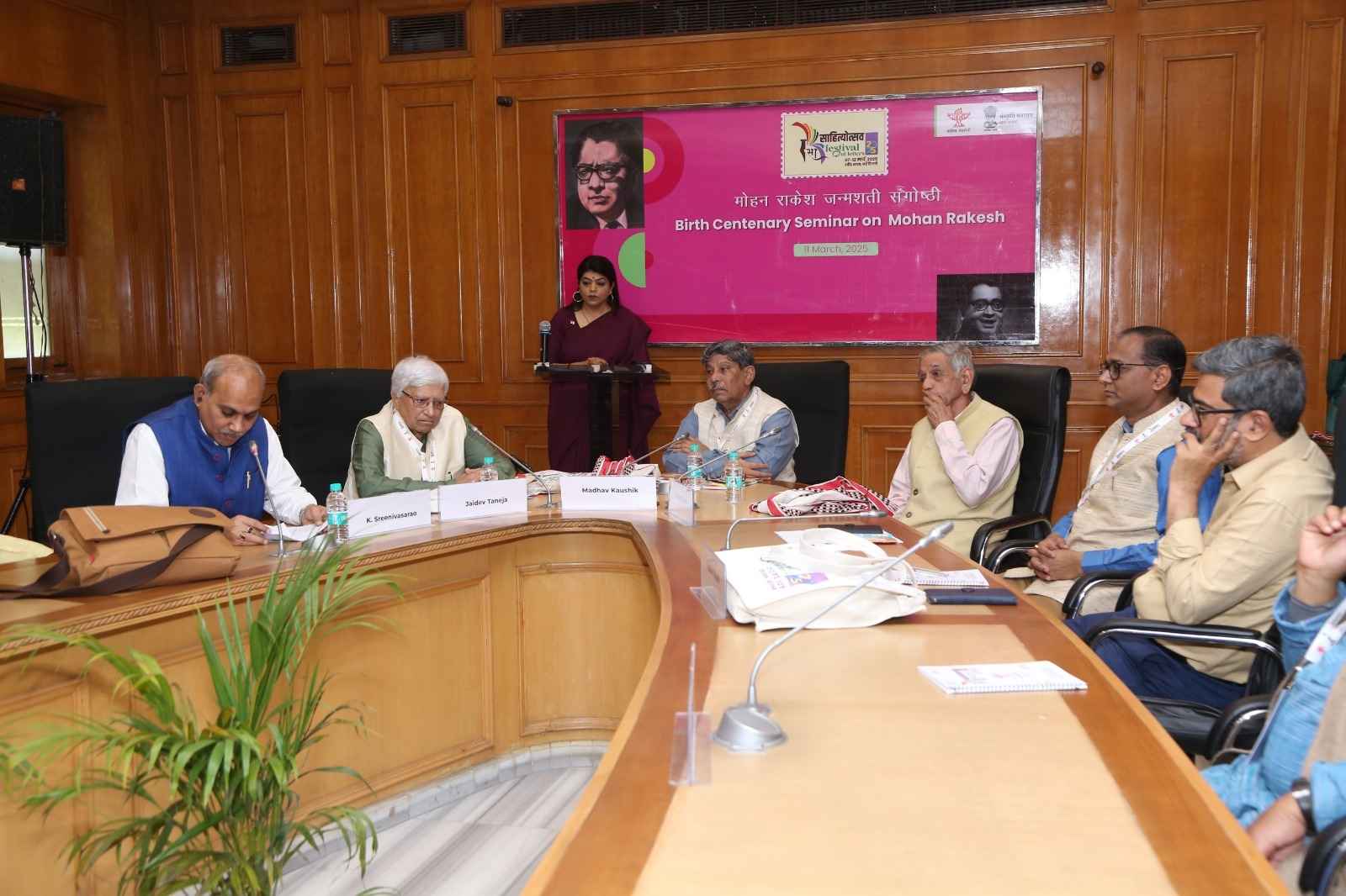 ମୋହନ ରାକେଶ ଜନ୍ମ ଶତବାର୍ଷିକୀ ସଂପାନର ଉଦଘାଟନୀ ଅଧିବେଶନରେ ସାହିତ୍ୟ ଏକାଡେମୀର ସଭାପତି ମାଧବ କୌଶିକ ଅଧ୍ୟକ୍ଷତା କରିଥିଲେ ଏବଂ ମୂଳ ଭାଷଣ ପ୍ରଦାନ କରିଥିଲେ ବିଶିଷ୍ଟ ହିନ୍ଦୀ ନାଟ୍ୟ ସମାଲୋଚକ ଜୟଦେବ ତନେଜା। ହିନ୍ଦୀ ପରାମର୍ଶଦାତା ମଣ୍ଡଳୀର ଆବାହକ ଗୋବିନ୍ଦ ମିଶ୍ର ପ୍ରାରମ୍ଭିକ ବକ୍ତବ୍ୟ ଦେଇଥିଲେ। ସ୍ୱାଗତ ଭାଷଣରେ ସାହିତ୍ୟ ଏକାଡେମୀର ସଚିବ କେ. ଶ୍ରୀନିବାସରାଓ ମୋହନ ରାକେଶଙ୍କ ବ୍ୟକ୍ତିତ୍ୱକୁ ବହୁମୁଖୀ ବୋଲି ବର୍ଣ୍ଣନା କରିଥିଲେ। ସେ କହିଥିଲେ ଯେ ତାଙ୍କ ଲେଖାର ପୁନଃମୂଲ୍ୟାୟନ କରାଯିବା ଆବଶ୍ୟକ। ଗୋବିନ୍ଦ ମିଶ୍ର କହିଥିଲେ ଯେ ମୋହନ ରାକେଶ ହେଉଛନ୍ତି ପ୍ରଥମ ନାଟ୍ୟକାର ଯାହାଙ୍କ ନାଟକରେ ନାଟକର ଶତ ପ୍ରତିଶତ ମାନଦଣ୍ଡ ରହିଥାଏ। ତାଙ୍କ ଲେଖାର ଦ୍ୱନ୍ଦ୍ୱ ତାଙ୍କ ବ୍ୟକ୍ତିଗତ ଜୀବନର ମଧ୍ୟ ଦ୍ୱନ୍ଦ୍ୱ ଏବଂ ଏହା ସମାଜକୁ ମୂଲ୍ୟାଙ୍କନ କରିବା ପାଇଁ ଅନେକ ସୂତ୍ର ପ୍ରଦାନ କରେ।