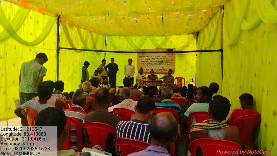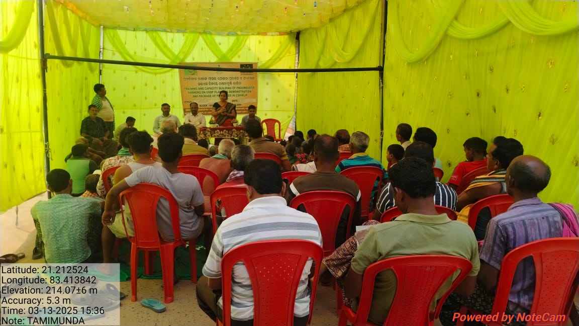 ବରଗଡ ଜ଼ିଲ୍ଲା ସୋହେଲା ବ୍ଲକ ଅନ୍ତର୍ଗତ ତାମିମୁଣ୍ଡା ଗ୍ରାମରେ ପ୍ରଗତିଶୀଲ ଚାଷୀ ଙ୍କ ଫସଲ ଯୋଜନା ପ୍ରଦର୍ଶନ ଓ ପ୍ୟାକେଜ ଅଭ୍ୟାସ ନିମନ୍ତେ ଦିନିକିଆ ତାଲିମ୍ ଶିବିର ଓଡିଶା ସରକାରଙ୍କ କୃଷି ଓ କୃଷକ ସଶସ୍ତ୍ରୀ କରଣ ବିଭାଗ ଏବଂ ଦୀ ହ୍ୟୁମାନ ଡେଭଲପମେଣ୍ଟ ର ମିଳିତ ଆନୁକୂଲ୍ୟରେ ଅନୁଷ୍ଠିତ ହୋଇଯାଇଛି l ଏହି କାର୍ଯ୍ୟକ୍ରମ ରେ ମୁଖ୍ୟ ଅତିଥି ଭାବରେ ବ୍ଲକ କୃଷି ଅଧିକାରୀ ନିତାଞ୍ଜଳି ବିଶି ଯୋଗଦାନ କରି ସରକାର ଙ୍କ କୃଷି ବିଭାଗ ର ବିଭିନ୍ନ ଯୋଜନା ତଥା ଫସଲ ଯୋଜନା ଉପରେ ଆଲୋଚନା କରିଥିଲେ l ଅନୁଷ୍ଠିତ କାର୍ଯ୍ୟକ୍ରମ ରେ ପ୍ରସନ୍ନ ଭୋଇ ଭିଏଡଭଲୁ ବିଶେଷକରି କାର୍ଯ୍ୟକ୍ରମ ଉପରେ ନିଜର ବକ୍ତବ୍ୟ ପ୍ରଦାନ କରି ସରକାର ଙ୍କ ବିଭିନ୍ନ ରିହାତି ଯୋଜନା ଉପରେ ଆଲୋଚନା କରିଥିଲେ l ଅନ୍ୟ ମାନଙ୍କ ମଧ୍ୟରେ ସହକାରୀ କୃଷି ଅଧିକାରୀ ସୋହେଲା ବ୍ଲକ ର ଅଭିଷେକ ଅଗ୍ରୱାଲ ଯୋଗଦାନ କରି ପ୍ୟାକେଜ ଅଭ୍ୟାସ ଉପରେ ତାଲିମ୍ ପ୍ରଦାନ କରିଥିଲେ l କାର୍ଯ୍ୟକ୍ରମ କୁ ସୁବୋଧ କୁମାର ପରିଚାଳନା କରିଥିବା ବେଳେ ହେରମ ପଟେଲ ଏବଂ ହେମଚନ୍ଦ୍ର ଦିଶ୍ରୀ ସହଯୋଗ କରିଥିଲେ l