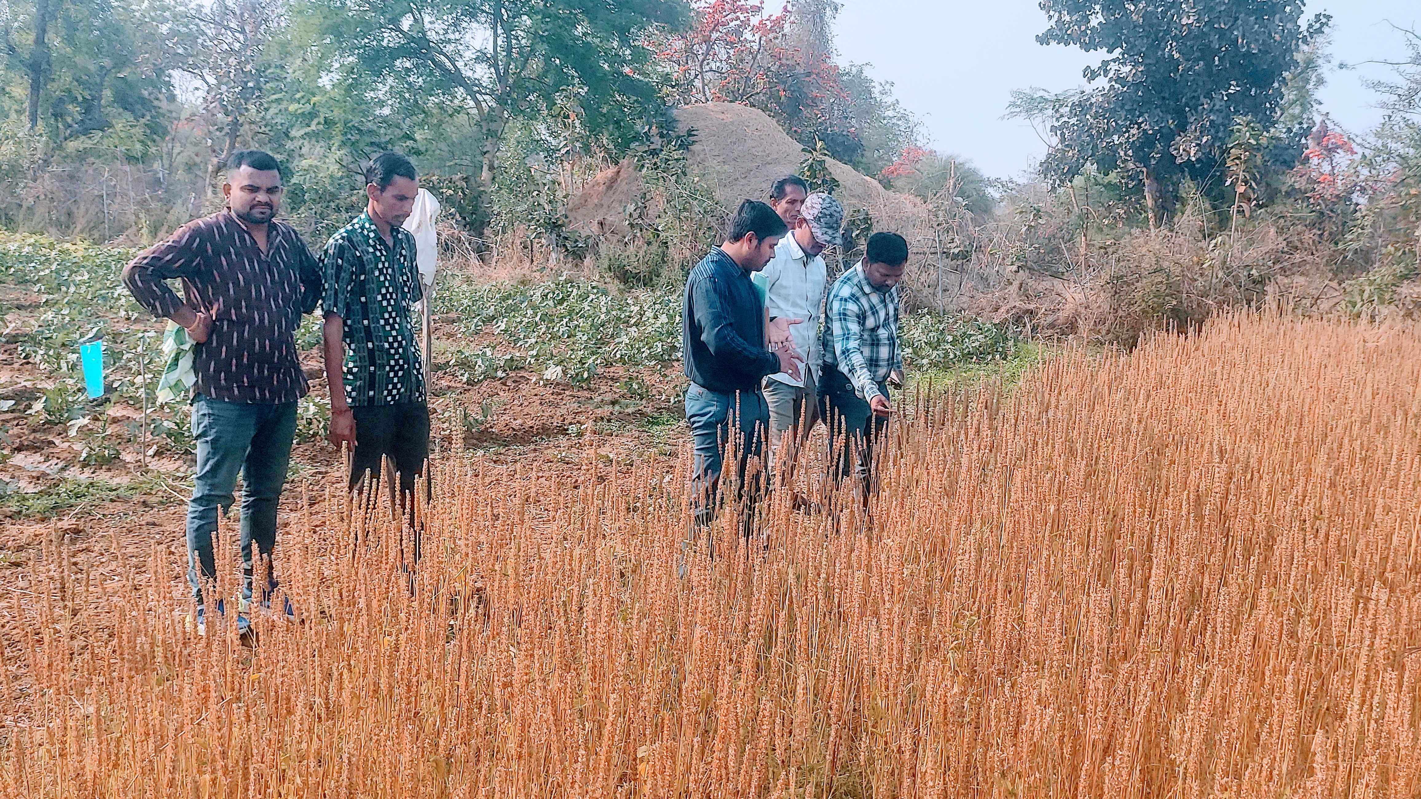 ଆଗଲପୁର, (ବିନୋଦ ଦୀପ) ଆଗଲପୁର ବ୍ଲକ କୃଷି ଅଧିକାରୀ ଶ୍ରୀ ଆଶିଷ କୁମାର ପାଣିଗ୍ରାହୀ ଙ୍କ ଉଦ୍ୟମ ରେ ନୁନିଆପାଲି ପଞ୍ଚାୟତ ଅନ୍ତର୍ଗତ ଅମରାମୁଣ୍ଡା ଗ୍ରାମରେ ଚାଷୀ ଶ୍ରୀ ପବିତ୍ର ସାହୁ ଙ୍କ ବିଲ ରେ ପରୀକ୍ଷା ମୂଳକ ଭାବରେ ଚୀୟା ନାମକ ଏକ ଫସଲ ଚାଷ ଆରମ୍ଭ କରା ଯାଇଛି l କୃଷିବିଭାଗ ର ସହଯୋଗ ତଥା ବ୍ଲକ୍ କୃଷି ଅଧିକାରୀଙ୍କ ପୂର୍ଣ୍ଣ ତତ୍ତ୍ଵାବଧାନରେ ଏହି ଚାଷ ଠିକ୍ ସମୟରେ ଅମଳ ହୋଇ ପାରିଛି l ଆଜି ବ୍ଲକ୍ କୃଷି ଅଧିକାରୀ ଓ ତାଙ୍କ ଟିମ୍ ଚାଷ କରାଯାଇଥିବା ବିଲକୁ ଆସି ପରିଦର୍ଶନ କରିଥିଲେ l ବିଲକୁ ପରିଦର୍ଶନ କରି ଚାଷ ହୋଇଥିବା କ୍ଷେତ ଦେଖି ଖୁସିବ୍ୟକ୍ତ କରିଛନ୍ତି। ପରୀକ୍ଷା ମୂଳକ ଭାବରେ ପ୍ରଥମ କରି କରା ଯାଉଥିବା ଫସଲ ଠିକ୍ ଭାବରେ ଉଚିତ୍ ସମୟରେ ଅମଳ ହୋଇଥିବା କୃଷି ଅଧିକାରୀ ସୂଚନା ଦେଇଛନ୍ତି। ଏହା ଏକ ମଞ୍ଜି ମାଣ୍ଡିଆ ଭଳି ଠିକ୍ ଦେଖିବାକୁ। ଏହା ଦୁଇ ପ୍ରକାରର ରଙ୍ଗ ରେ ଉପଲବ୍ଧ। କଳା ଓ ଧଳା ରଙ୍ଗରେ ଉପଲବ୍ଧ।
