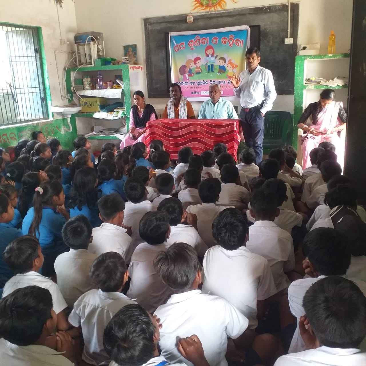 ନୂଆଁପଡ଼ା(ପରମେଶ୍ଵର ମେହେର): ନୂଆପଡ଼ା ଜିଲ୍ଲା ସିନାପାଲି ବ୍ଲକ ଅନ୍ତର୍ଗତ ସରକାରୀ ଉଚ୍ଚ ପ୍ରାଥମିକ ବିଦ୍ଯାଳୟରେ "ଗପଶୁଣିବା ଓ କହିବା "ଗୁରୁବାର ସ୍କୁଲ ପରିସରରେ ଅନୁଷ୍ଠିତ ହୋଇଯାଇଛି l ଏ ଅବସରରେ ହୀରାପୁର ଉଚ୍ଚ ପ୍ରାଥମିକ ବିଦ୍ୟାଳୟର ପ୍ରଧାନ ଶିକ୍ଷକ ଶ୍ରୀଯୁକ୍ତ ସନତ କୁମାର ସାହୁ ଙ୍କ ଅଧ୍ଯକ୍ଷତାରେ ଅନୁଷ୍ଠିତ ସଭାକାର୍ଯ୍ୟରେ ମୁଖ୍ୟ ଅତିଥି ଭାବରେ ଶ୍ରୀଯୁକ୍ତ କେଶବ ପାଣ୍ଡେ , ସମ୍ମାନିତ ଅତିଥି ଭାବରେ ଶ୍ରୀଯୁକ୍ତ ହୀରାଧର ହଂସ, ବିଦ୍ୟାଳୟ ପରିଚାଳନା କମିଟିର ସଭାପତି ଶ୍ରୀଯୁକ୍ତ ଭୋଳାନାଥ ଛତ୍ରିଆ ମଞ୍ଚାସିନ ଥିଲେ। ଶିକ୍ଷା ହିଁ ଏକ ସୁସ୍ଥ ସମାଜ ଗଠନର ମୂଳ ଆଧାର ା ତେଣୁ ଶିକ୍ଷା ମାଧ୍ଯମରେ ସମାଜକୁ ଆଗେଇ ନିଆଯାଇ ପାରିବ,ଛାତ୍ର ଛାତ୍ରୀ ମାନଙ୍କୁ ଶିକ୍ଷା,ସଂସ୍କାର ତଥା ଏକାଗ୍ରତା ଏବଂ ଶ୍ରବଣ ଓ କଥନ ଦକ୍ଷତାର ବିକାଶ ପାଇଁ ଗଳ୍ପ ଏକ ମାଧ୍ୟମ ବୋଲି ଏ ଅବସରରେ ଅତିଥି ମାନେ ସାମୁହିକ ମତବ୍ଯକ୍ତ କରିଥିଲେ l ଶ୍ରୀଯୁକ୍ତ କେଶବ ପାଣ୍ଡେ ପାରମ୍ପରିକ ଶୈଳୀରେ ଏକ ଗଳ୍ପ ଉପସ୍ଥାପନା କରିଥିଲେ l ପ୍ରାରମ୍ଭରେ ସହଶିକ୍ଷକ ଶ୍ରୀଯୁକ୍ତ ଦାରୁକ ସିଂ ମାଝୀ ସମସ୍ତଙ୍କୁ ସ୍ବାଗତ କରିବା ସହ ପରିଚୟ ପ୍ରଦାନ କରିଥିଲେ । ଛାତ୍ରଛାତ୍ରୀ ଓ ସହକାରୀ ଶିକ୍ଷକଗଣ ଅତିଥି ମାନଙ୍କୁ ଫୁଲ ଚନ୍ଦନ ଓ ଓପ ଢୌକନ ଦେଇ ସମ୍ମର୍ଦ୍ଧିତ କରିଥିଲେ । ପରେ ଅତିଥିଗଣ ଦ୍ୱାରା ଦେବ ପୂଜନ ହେଲାପରେ ସଭାକାର୍ଯ୍ୟ ଆରମ୍ଭ କରାଯାଇଥିଲା l ଶିକ୍ଷୟିତ୍ରୀ ଶ୍ରୀମତୀ ରୋଜାଲିନ ରାଉତରାୟଙ୍କ ନିର୍ଦେଶନାରେ ଛାତ୍ରୀଗଣ ସୁ ଲଳିତ କଣ୍ଠରେ ପ୍ରାରମ୍ଭିକ ସଂଗୀତ ଗାନ କରିଥିଲେ। ଗଳ୍ପ କଥନ ପ୍ରତିଯୋଗିତାରେ ବିଭିନ୍ନ କ୍ଷେତ୍ରରେ କୃତିତ୍ୱ ଅର୍ଜନ କରିଥିବା ଛାତ୍ରଛାତ୍ରୀଙ୍କୁ ଅତିଥିଙ୍କ ଦ୍ୱାରା ପୁରସ୍କୃତ କରାଯାଇଥିବା ବେଳେ ଏହାକୁ ସହ ଶିକ୍ଷୟିତ୍ରୀ ବୀଣାମାଝି ସଭାକାର୍ଯ୍ୟ ପରିଚାଳନା କରିଥିଲେ ା ଶେଷରେ ଶିକ୍ଷୟିତ୍ରୀ ଉମା ତୁମୁନିଆ ଧନ୍ଯବାଦ ଅର୍ପଣ କରିଥିଲେ। ା ଉକ୍ତ କାର୍ଯ୍ୟକ୍ରମରେ ଅଭିଭାବକ, ଅଭିଭାବିକା ତଥା ଗ୍ରାମର ପ୍ରାୟ ଦୁଇଶହ ଭଦ୍ର ବ୍ୟକ୍ତି ଉପସ୍ଥିତ ହୋଇଥିଲେ । ବିଦ୍ୟାଳୟ ର ସହ ଶିକ୍ଷକ / ଶିକ୍ଷୟିତ୍ରୀ ତାରୁଖ ସିଂ ମାଝୀ,ଉମା ତୁମୁନିଆ, ବୀଣା ମାଝୀ ଓ ରୋଜାଲିନ ରାଉତରାୟ ପ୍ରମୁଖ କାର୍ଯ୍ୟକ୍ରମ ରେ ସମ୍ପୂର୍ଣ୍ଣ ସହଯୋଗ କରିଥିଲେ..!