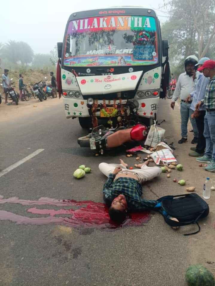 ଦିଗପହଣ୍ଡି ଥାନା ଅର୍ନ୍ତଗତ କଇଠଖଣ୍ଡି ଛକରେ ନୀଳକଣ୍ଠ ନାମକ ବସ୍ ଧକ୍କାରେ ମୋଟରସାଇକେଲ ଆରୋହୀ ତଥା ପ୍ରଧାନଶିକ୍ଷକ ଭାବେ କାର୍ଯ୍ୟରତ କୁରେଶ ପାତ୍ରଙ୍କ ଘଟଣାସ୍ଥଳ ରେ ମୃତ୍ୟୁ ଘଟିଛି।ମୃତ ପ୍ରଧାନଶିକ୍ଷକ ମଧୁବନ ବିଦ୍ୟାଳୟରେ ପ୍ରଧାନଶିକ୍ଷକ ଭାବେ କାର୍ଯ୍ୟରତ ଅଟନ୍ତି। ତାଙ୍କ ଘର ନୁଆଗଡ ଓ ବଜାର କାମ ସାରି ଫେରୁଥିବାବେଳେ ଏହି ଭଳି ଦୁର୍ଘଟଣା ର ସମ୍ମୁଖୀନ ହୋଇଛନ୍ତି। ପୋଲିସ ଘଟଣାସ୍ଥଳରେ ପହଞ୍ଚି ବସ୍ ଓ ମୋଟରସାଇକେଲକୁ ଜବତ କରି ମୃତ ଶରୀରକୁ ବ୍ୟବଛେଦ ପାଇଁ ଡାକ୍ତରଖାନାକୁ ପଠାଇ ଘଟଣା ର ତଦନ୍ତ ଆରମ୍ଭ କରିଛନ୍ତି।