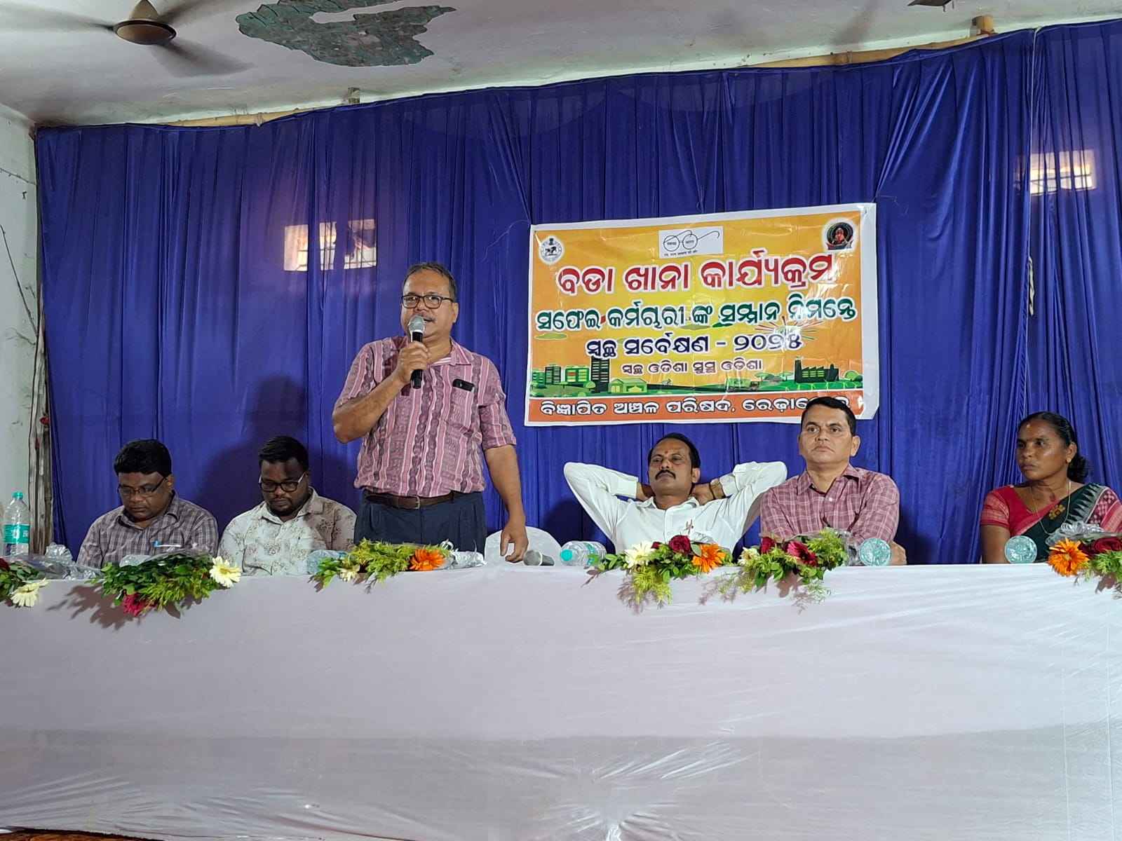 ଅଧ୍ୟକ୍ଷ ଶିବରାମ ସାହୁ କହିଛନ୍ତି | ସେଥିପାଇଁ ବଡା ଖାନା କାର୍ଯ୍ୟକ୍ରମ ସଫେଇ କର୍ମଚାରୀ ମାନଙ୍କ ନିମନ୍ତେ ସ୍ୱତନ୍ତ୍ର ହୋଇଥିବାରୁ ସମସ୍ତ କର୍ମଚାରୀଙ୍କୁ ଅତିଥି ମାନେ ଫୁଲତୋଡ଼ା ଦେଇ ସ୍ୱାଗତ କରିବା ସହିତ ନିଜ ହାତରେ ସଫେଇ କର୍ମଚାରୀଙ୍କ ନିମନ୍ତେ ଖାଦ୍ୟ ପରଷିବା ପରେ ଅତିଥି ମାନେ