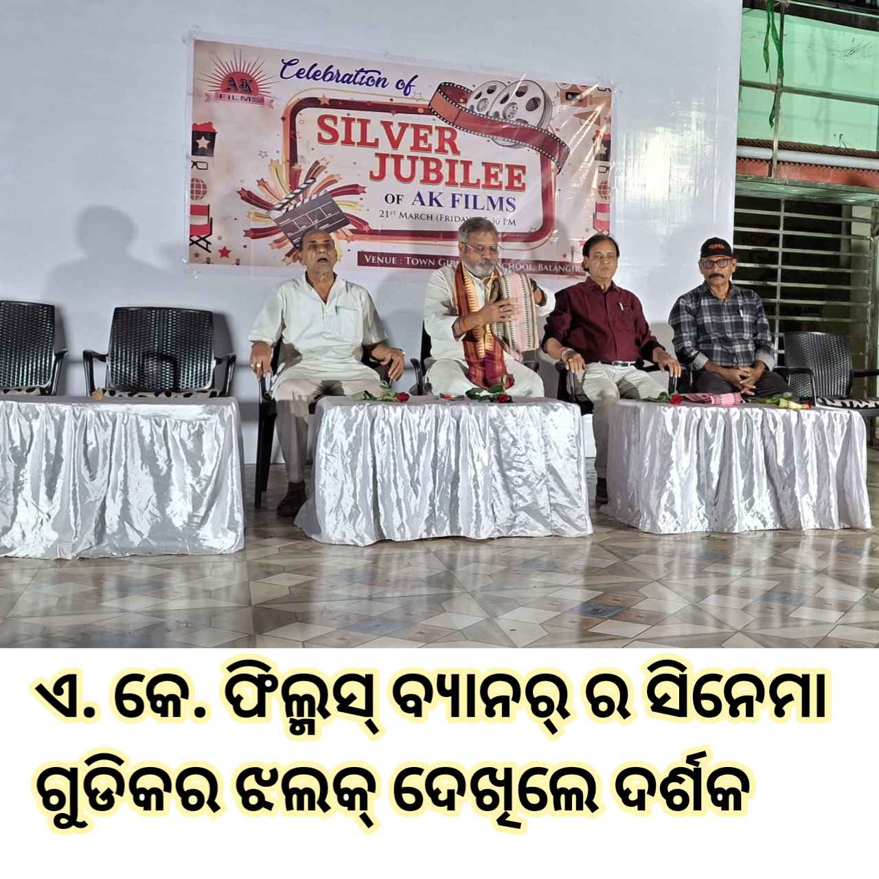 ବଲାଙ୍ଗୀର(ପ୍ରେରଣା ଖବର): ଆଜି ସ୍ଥାନୀୟ ଟାଉନ୍ ବାଳିକା ଉଚ୍ଚ ବିଦ୍ୟାଳୟ ଠାରେ ବଲାଙ୍ଗୀର ଏ. କେ ଫିଲ୍ମସ୍ ର ରୌପ୍ୟ ଜୟନ୍ତୀ ପାଳିତ ହୋଇଯାଇଛି l 'ସାମ୍ପ୍ରତିକ ପରିସ୍ଥିତିରେ ସମାନ୍ତରାଳ ଫିଲ୍ମର ପ୍ରାସଙ୍ଗିକତା' ଶୀର୍ଷକ ବିଷୟ ଉପରେ ଏକ ଆଲୋଚନାଚକ୍ର ଅନୁଷ୍ଠିତ ହୋଇଥିଲା l ଏ.କେ ଫିଲ୍ମସ୍ ର ପ୍ରତିଷ୍ଠାତା ଅଶୋକ କୁମାର ମିଶ୍ରଙ୍କ ସଭାପତିତ୍ବରେ ଅନୁଷ୍ଠିତ ଏହି କାର୍ଯ୍ୟକ୍ରମରେ ମୁଖ୍ୟ ଅତିଥି ଭାବରେ ସମାଜସେବୀ ଡ. ଶ୍ରୀକର ମିଶ୍ର ଓ ସମ୍ମାନିତ ଅତିଥି ଭାବେ ବରିଷ୍ଠ ବିଜେପି ନେତା ଗୋପାଳଜୀ ପାଣିଗ୍ରାହୀ, ମୁଖ୍ୟ ବକ୍ତା ଭାବରେ ଗାଳ୍ପିକ ପ୍ରଦୀପ କୁମାର ମହାପାତ୍ର ଯୋଗଦେଇ ନିଜର ଅଭିଭାଷଣ ରଖିଥିଲେ l ସଭା ପ୍ରାରମ୍ଭରେ ବରିଷ୍ଠ ଅଭିନେତା ଓ ନାଟ୍ୟ ନିର୍ଦ୍ଦେଶକ ବ୍ରଜମୋହନ ମିଶ୍ର ଓ କ୍ଷୁଦ୍ର ଚଳଚ୍ଚିତ୍ର ନିର୍ମାତା ଓ ନିର୍ଦ୍ଦେଶକ ଗୋବର୍ଦ୍ଧନ ଭୋଇଙ୍କ ବିୟୋଗରେ ଏହି ଦୁଇ ଅମର ଆତ୍ମାର ସଦଗତି ନିମନ୍ତେ ଦୁଇ ମିନିଟ୍ବ ନୀରବ ପ୍ରାର୍ଥନା କରାଯାଇଥିଲା ସରରେ. ଏ କେ ବେନରସ ରେ ଅଭିନୟ କରିଥିବା କିଛି କଳାକାର ଓ ଟେକନିସିଆନ ମାନଙ୍କୁ ସମ୍ବର୍ଦ୍ଧିତ କରାଯାଇଥିଲା l ସଭାକୁ ବିଜୟ ତ୍ରିପାଠୀ ସଂଯୋଜନା କରିଥିଲେ l ଶେଷ ରେ କପିଳେଶ୍ଵର ଖମାରୀ ଧନ୍ୟବାଦ ଅର୍ପଣ କରିଥିଲେ l ପରେ ଏ କେ ବେନରସ ରେ ନିର୍ମିତ ସିନେମା ସବୁକୁ ଦର୍ଶକ ମାନେ ଉପଭୋଗ କରିଥିଲେ l