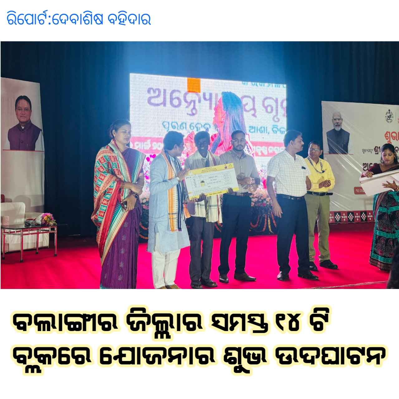 ଆଗଲପୁର ର ୨୩୬ ଜଣ, ବଲାଙ୍ଗିର ୩୦୩, ବଙ୍ଗୋମୁଣ୍ଡା ୧୬୩, ବେଲପଡା ୩୦୩, ଦେଓଗାଁ ୩୪୧, ଗୁଡଭେଳା ୧୩୩ , ଖପ୍ରାଖୋଲ ୩୧୧ , ଲୋଇଶିଙ୍ଘା ୧୯୭, ମୁରିବାହଳ ୨୨୬ , ପାଟଣାଗଡ଼ ୩୧୯, ପୁଇଁତଳା ୩୧୫, ସଇଁତଳା ୧୭୨ , ଟିଟିଲାଗଡ ୧୯୭, ତୁରେକେଲା ୧୯୪ ଜଣ ଙ୍କୁ ସମୁଦାୟ ୩୪୧୦ ଜଣଙ୍କୁ ଅନ୍ତ୍ୟୋଦୟ ଗୃହ ଯୋଜନାରେ କାର୍ଯ୍ୟାଦେଶ ଦିଆଗଲା ।