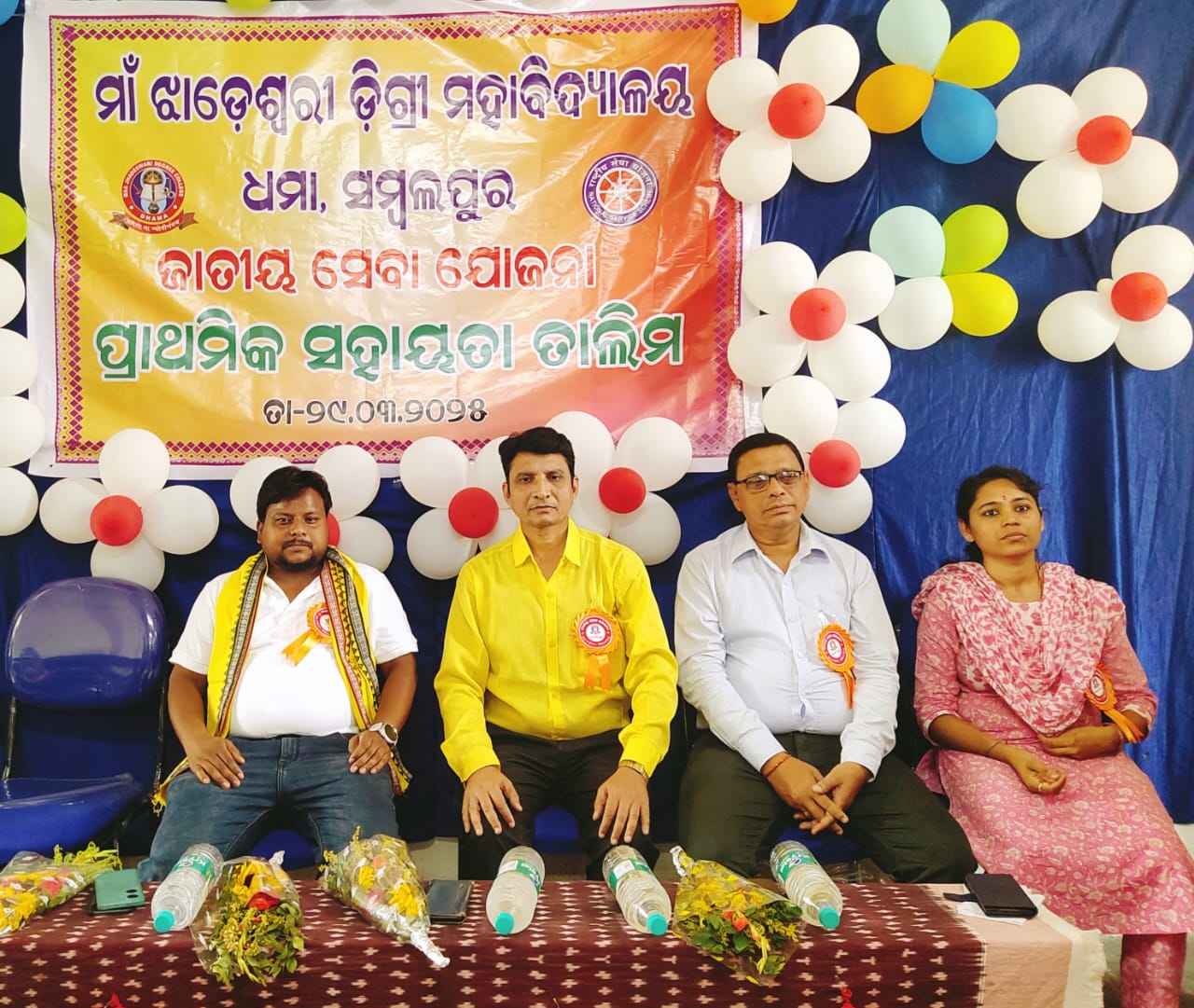 ତଥା ରାଜ୍ୟ ପୁରସ୍କରପ୍ରାପ୍ତ ଯୁବ ରେଡ କ୍ରସ୍ ପରାମର୍ଶଦାତା ଉଦ୍ଧବ ପ୍ରଧାନ ପ୍ରାଥମିକ ସହାୟତା ବିଷୟରେ ତାଲିମ ପ୍ରଦାନ କରିଥିଲେ ।ଏହି କାର୍ଯ୍ୟକ୍ରମକୁ ଜାତୀୟ ସେବା ଯୋଜନାର କାର୍ଯ୍ୟକ୍ରମ ଅଧିକାରୀ ଅଧ୍ୟାପିକା ତନ୍ମୟା ବେହେରା ସଂଯୋଜନା କରିଥିବା ବେଳେ ଅଧ୍ୟାପକ ପ୍ରମୋଦ ଦେହେରି ଅତିଥି ପରିଚୟ ପ୍ରଦାନ କରିଥିଲେ । ସୁଦୀପ୍ତା ଦାସ, ଅମ୍ରିତା ପଟ୍ଟନାୟକ, ସୁଶ୍ରୀ ପାଢୀ, ସୁନୀତା ସେଠ୍ ପ୍ରମୁଖ ଅଧ୍ୟାପକ ଅଧ୍ୟାପିକା ଓ କର୍ମଚାରୀଗଣ ଏହି କାର୍ଯ୍ୟକ୍ରମ ପରିଚାଳନାରେ ସହଯୋଗ କରିଥିଲେ । ଶେଷରେ ଅଧ୍ୟାପକ ସଂସାର ପଧାନ ଧନ୍ୟବାଦ ଅର୍ପଣ କରିଥିଲେ ।