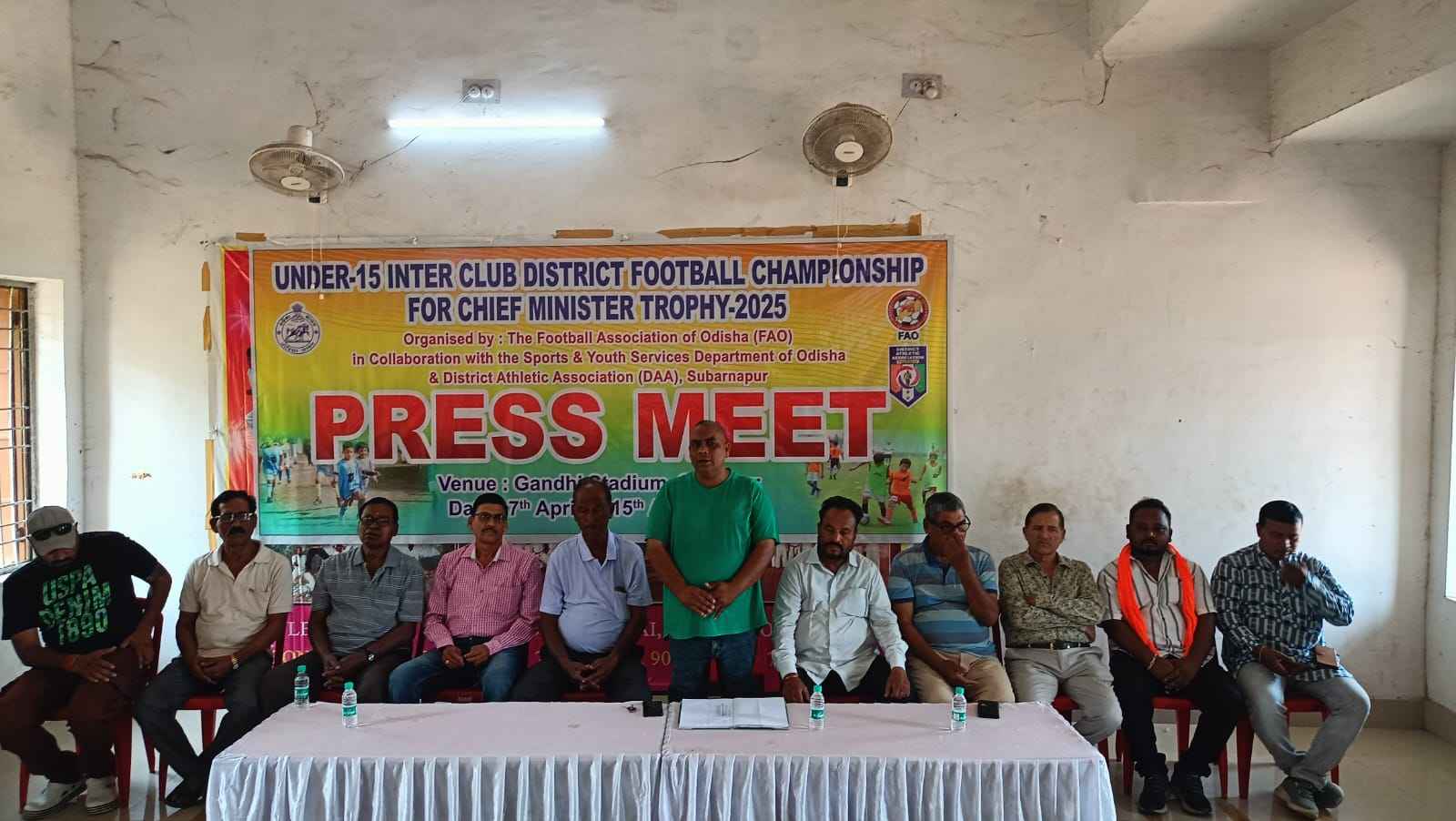 ଆସନ୍ତା ଏପ୍ରିଲ ୭ ତାରିଖ ରେ ସୋନପୁର ଗାନ୍ଧୀ ଷ୍ଟାଡିୟମ ରେ ହେବାକୁ ଥିବା ୧୫ ବର୍ଷ ରୁ କମ୍ ଚିଫ ମିନିଷ୍ଟର ଇଣ୍ଟର କ୍ଳବ୍ ଜିଲ୍ଲା ସ୍ତରୀୟ ଫୁଟବଲ୍ ଚାମ୍ପିଅନସିପ ୨୦୨୫ ପାଇଁ ସୁବର୍ଣ୍ଣପୁର ଜିଲ୍ଲା କ୍ରିଡ଼ା ସଂଘ ପକ୍ଷରୁ ଆଜି ଏକ ସାମ୍ବାଦିକ ସମ୍ମିଳନୀ ଅନୁଷ୍ଟିତ ହୋଇଛି l ଜିଲ୍ଲା ସୋନପୁର , ଉଲୁଣ୍ଡା, ବୀର ମହାରାଜ ପୁର ବ୍ଲକ ୬ ଟି ଦଳ ସମେତ ସୋନପୁର ମୁନିସିପାଲିଟି ର ୪ ଗୋଟି ଦଳ ସମୁଦାୟ ୧୦ ଗୋଟି ଫୁଟବଲ୍ ଦଳ ଏଥିରେ ଭାଗ ନେବାକୁ ଥିବା ବେଳେ ଏଥିରୁ ପ୍ରଥମ ପର୍ଯ୍ୟାୟ ରେ ୪୦ ଜଣ ଓ ଦ୍ୱିତୀୟ ପର୍ଯ୍ୟାୟ ରେ ସେଥିରୁ ୨୪ ଜଣ ଖେଳାଳୀ ଙ୍କୁ ରାଜ୍ୟ ସ୍ତରୀୟ ଫୁଟବଲ୍ ପାଇଁ ମନୋନୀତ କରାଯିବ ବୋଲି ଜିଲ୍ଲା କ୍ରିଡ଼ା ସଂଘ