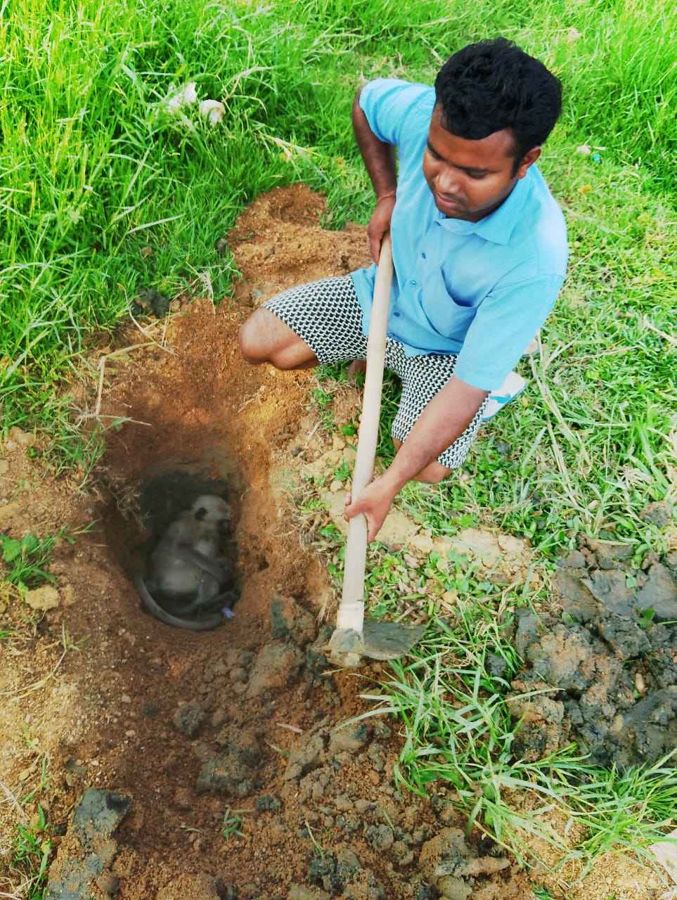 ସହ କିଛି ଥଟ୍ଟା ତାମସା କରି ଯେ ଜା ରାସ୍ତାରେ ଚାଲି ଯାଉଥିଲେ ।କିଛି ସମୟ ପରେ ଜଣେ ସ୍ଵେଚ୍ଛାସେବୀ ଯୁବକ କର୍ଣ୍ଣ ,ଯିଏ କି ଚଣା ମୁଢ଼ି ବିକ୍ରୟ କରି ନିଜର ଗୁଜୁରାଣ ମେଣ୍ଟାଇ ଥାନ୍ତି, ସେ ଦୁର୍ଗl ମନ୍ଦିର ରୁ ମାଁ ଙ୍କର୍ ଦର୍ଶନ ସାରି ଫେରୁଥିବା ବେଳେ ମୃତ ମାଙ୍କଡ କୁ ଦେଖି କିଛି ଜଣ ଅନ୍ୟ ସ୍ବେଚ୍ଛାସେବୀ ଯଥା ବଜରଙ୍ଗ ଦଳର ମନୀଷ ଶର୍ମା, ସାମ୍ବାଦିକ ଆକାଶ ମିଶ୍ର, ସୋମନାଥ ପଟ୍ଟନାୟକ ବାବୁ ଆଦି ଙ୍କୁ ଫୋନ କରି ଡକାଇ ଥିଲେ । ସମସ୍ତେ ପହଞ୍ଚିବା ପରେ ସାଥୀ ମାଙ୍କଡ ମାନଙ୍କ ଠାରୁ ବହୁ କଷ୍ଟରେ ମୃତ ମାଙ୍କଡକୁ ଆଣି ଏକ ବସ୍ତା ରେ ଭର୍ତ୍ତି କରି ଭାଲୁପାଲି ନଳିଆ କୂଳରେ ତାର ଅନ୍ତିମ ସଂସ୍କାର କରିଥିଲେ। ସଂସ୍କାର ପରେ ପୂଜାର୍ଚ୍ଚନା କରି ତାର ଆତ୍ମାର ସଦଗତି ନିମନ୍ତେ ଶ୍ରୀ ବଜରଙ୍ଗ ବଳୀ ଙ୍କ ଠାରେ ପ୍ରାର୍ଥନା କରିଥିଲେ ।