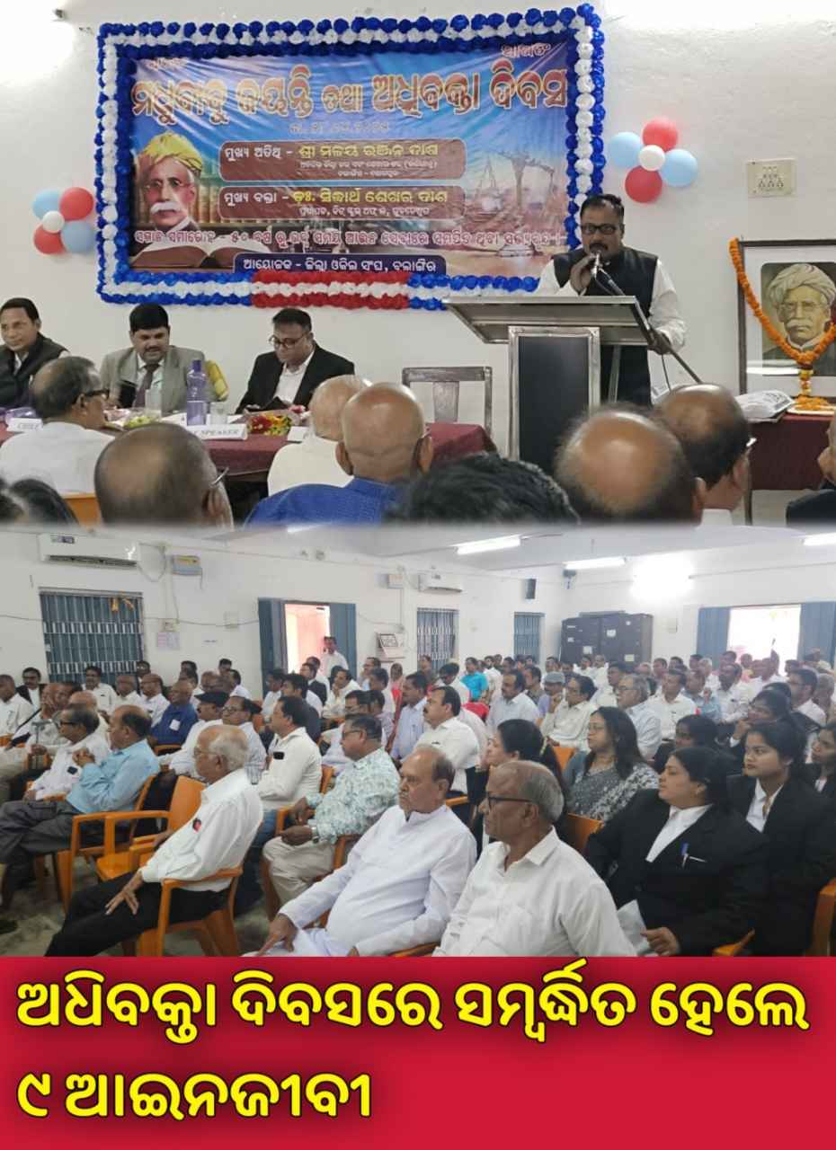 ମାନପତ୍ର ଓ ଉପଢ଼ୌକନ ଦେଇ ସମ୍ବର୍ଦ୍ଧିତ କରାଯାଇଥିଲା । ଜିଲ୍ଲା ଓକିଲ ସଂଘର ସଂପାଦକ ସଂଜୟ ବଗର୍ତ୍ତି ଧନ୍ୟବାଦ ଅର୍ପଣ କରିଥିଲେ । ଏହି ଜୟନ୍ତୀ ସମାରୋହକୁ ସଫଳ କରିବାରେ ସଂଘର ଉପସଭାପତି ସୁଧାଂଶୁ ଦେଓ, କାର୍ଯ୍ୟକାରୀ କମିଟି ସଭ୍ୟ ସରୋଜ ଗୁପ୍ତା ଦିପ୍ତୀ ସର୍ମା, ଶଙ୍କର ପ୍ରସାଦ ମିଶ୍ର, ଚନ୍ଦ୍ରଶେଖର ମିଶ୍ର,ଗୋବିନ୍ଦ ମହାନ୍ତି, ଭବାନୀ ଭୋଇ, ସବିତାରଣୀ ମିଶ୍ର ପ୍ରମୁଖ ସହଯୋଗ କରିଥିଲେ ।