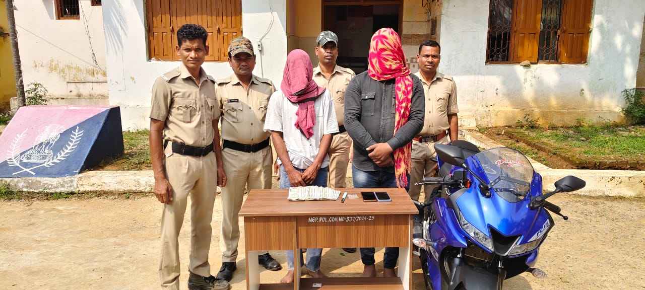 ଡାବୁଗାଁ ଥାନା ଅଧୀନ କନ୍ୟାଆଶ୍ରମ ରାସ୍ତା ନିକଟରେ ମଙ୍ଗଳବାର ଅପରାହ୍ନ ରେ ବୃଦ୍ଧା ମହିଳା ଙ୍କ ବେକରୁ ସୁନା ଚେନ ଟାଣିନେବା ଘଟଣାରେ ଶୁକ୍ରବାର ଡାବୁଗାଁ ପୋଲିସ ୨ ଜଣ ଦୁର୍ବୁତ୍ତ ଙ୍କୁ ଗିରଫ କରି କୋର୍ଟ ଚାଲାଣ କରିଛି | ସୂଚନାଯୋଗ୍ୟ:- ଉମୁରହାଣ୍ଡି ଗ୍ରାମର ଚଞ୍ଚଳା ମାଝି ମଙ୍ଗଳବାର ସକାଳୁ ପନିପରିବା ବିକ୍ରି କରିବାକୁ ପାପଡାହାଣ୍ଡି ହାଟକୁ ଯାଇଥିଲେ | ସେଠାରେ ବିକ୍ରି କରିବା ପରେ ଅପରାହ୍ନରେ ବସ ଯୋଗେ ଆସି କନ୍ୟାଶ୍ରମ ଛକ ଠାରେ ଓହ୍ଲାଇ ନିଜ ଘର ଉମୁରହାଣ୍ଡି ଗ୍ରାମକୁ ଯିବା ବେଳେ ମୋଟରସାଇକେଲ ଯୋଗେ ୨ ଜଣ ଯୁବକ ମୁହଁରେ ମାସ ବାନ୍ଧି ଆସି ମହିଳାଙ୍କୁ ଝରିଗାଁ ରାସ୍ତା କେଉଁ ପଟେ ପଚାରିଥିଲେ | ମହିଳା ଜଣଙ୍କ ରାସ୍ତା କହି ନିଜ ଗ୍ରାମ ଆଡକୁ ଯାଉଥିବା ବେଳେ ୨ ଯୁବକ ଙ୍କ ମଧ୍ୟରୁ ଜଣେ ଯୁବକ ବୃଦ୍ଧା ମହିଳାଙ୍କ ବେକରୁ ପଛପଟୁ ତାଙ୍କ ସୁନା ଚେନ ଝାମ୍ପି ନେଇ ମୋଟର ସାଇକେଲରେ ଚାଲି ଯାଇଥିଲେ | ସେଦିନ ରାତ୍ରିରେ ମହିଳା ଚଞ୍ଚଳା ମାଝି ଥାନାରେ ଏତଲା ଦେଇଥିଲେ | ଉକ୍ତ ଏତଲାକୁ ଭିତ୍ତି କରି ଥାନା ପୋଲିସ ତଦନ୍ତ ଆରମ୍ଭ କରିଥିଲା | ଅଭିଯୁକ୍ତ ମାନେ ହେଲେ ଝରିଗାଁ ବ୍ଲକ ଅଧୀନ ପିତାସିଲ ଗ୍ରାମର ପରଶୁରାମ ସାନ୍ତା (୨୪) ଓ ମୁଣ୍ଡାଗୁଡା ଗ୍ରାମର ରାକେଶ ସାନ୍ତା (୨୩) ଗିରଫ କରାଯାଇ ଆଜି ଅପରାହ୍ନରେ କୋର୍ଟ ଚାଲାଣ କରଯାଇଥିଲା | ଏହାସହ ଏକ ନମ୍ବର ବିହୀନ ମୋଟରସାଇକେଲ ଜବତ କରାଯାଇଛି | ଥାନା ସବଇନିସ୍ପେକ୍ଟର ଚନ୍ଦନ ସାହୁ ଘଟଣାର ତଦନ୍ତ କରୁଛନ୍ତି | ଏନି ଥାନା କେସ ନଂ ୮୬/୨୫ ରେ ଏକ ମାମଲା ରୁଜୁ କରାଯାଇଛି |
