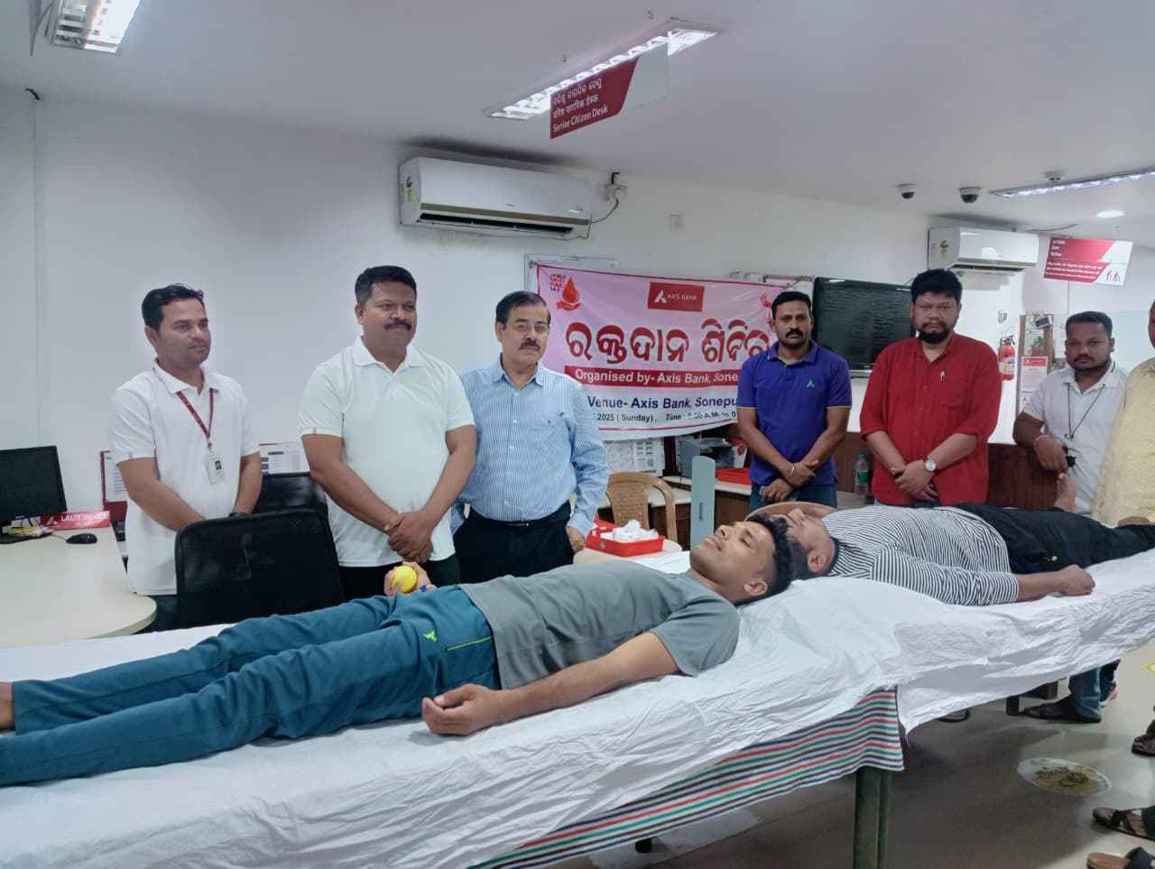 ସୁବର୍ଣ୍ଣପୁର ଜିଲ୍ଲାର ସଦର ମହକୁମା Axis Bank ତରଫରୁ ଏକ ସ୍ବେଛାକୃତ ରକ୍ତଦାନ ଶିବିର ଆୟୋଜନ କରାଯାଇ ଥିଲା। ଏହି ଶିବିରକୁ ଜିଲ୍ଲାର ଅତିରିକ୍ତ ସ୍ୱାସ୍ଥ୍ୟ ଅଧିକାରୀ ଡା .ଦୁର୍ଗା ଦତ୍ତ ଦାଶ ଉଦ୍ଘାଟନ କରିଥିଲେ । ଏହି ଶିବିର ରେ ଜଣେ ମହିଳା ଓ ଖୋଦ୍ ବ୍ୟାଙ୍କ ମ୍ୟାନେଜର ଙ୍କ ସହିତ ସମୁଦାୟ 28 ୟୁନିଟ୍ ରକ୍ତ ସଂଗ୍ରହ କରାଯାଇ ଥିଲା । ସର୍ଵ ସାଧାରଣ ଙ୍କ ସହିତ ଉତ୍ତମ ସମ୍ପର୍କ ସ୍ଥାପନ ଓ ରକ୍ତ କେନ୍ଦ୍ର ରେ ରକ୍ତ ଅଭାବ କୁ ଦୂର କରିବା ସକାଶେ ଏ ଶିବିର ଅନୁଷ୍ଠିତ କରାଯାଇ ଥିଲା ବୋଲି ମୁଖ୍ୟ ବ୍ୟାଙ୍କ ମ୍ୟାନେଜର ସୁମନ୍ତ ଦତ୍ତ କହିଛନ୍ତି । ଏହି ମହତ କାର୍ଯ୍ୟକ୍ରମ କୁ ଜିଲ୍ଲା ରକ୍ତ ଦାତା ସେବା ସଂଘ ସଭାପତି ମନୋଜ ପଣ୍ଡା ଓ ଜିଲ୍ଲା ରକ୍ତ କେନ୍ଦ୍ର ର ଟେକ୍ନିସିଆନ ସୁଦାମ ବିଶ୍ଵାଳ, କାଉନସିଲର ଜଗତ ଦରୁଆନ , ଯୁଧିଷ୍ଟିର ନାୟକ ପ୍ରମୁଖ ରକ୍ତ ଦାନ ଶିବିର ପରିଚାଳନା କରିଥିଲେ । ସମସ୍ତ ରକ୍ତ ଦାତା ଙ୍କୁ ମାନପତ୍ର ପ୍ରଦାନ କରି ସମ୍ବର୍ଧିତ କରାଯାଇଥିଲା । ତପନ କୁମାର ମିଶ୍ର, ଲଳିତ ମେହେର, ରାଜେଶ୍ ମହାନ୍ତି, ସୂମିତ୍ କୁମାର୍ ଦାଶ, ସଂଧ୍ୟା ରାଣୀ ବେହେରା, ରୋଜି ସାହୁ ପ୍ରମୁଖ ରକ୍ତ ଦାନ କରି ଥିଲେ ।