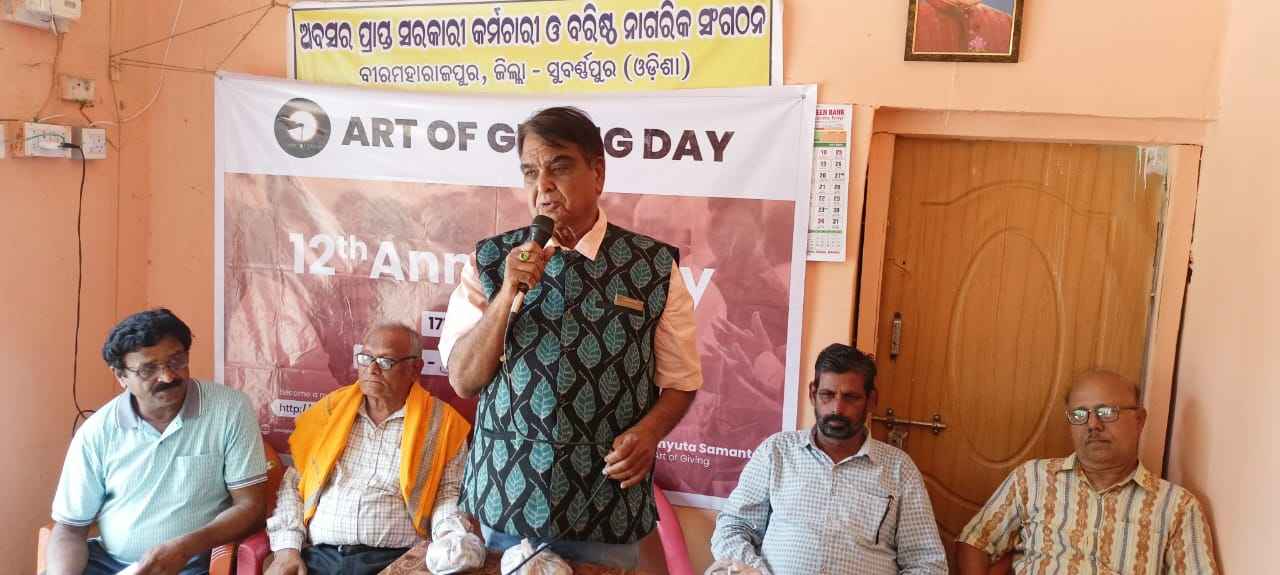 ବୀରମହାରାଜପୁର,(ବିନୋଦ ପାଣ୍ଡେ ):ସୁବର୍ଣ୍ଣପୁର ଜିଲ୍ଲା ବୀରମହାରାଜପୁର ବ୍ଲକ ସଦର ମହକୁମା ଠାରେ ଥିବା ବରିଷ୍ଠ ନାଗରିକ ସଂଗଠନ କାର୍ଯ୍ୟାଳୟ ପରିସରରେ ଅଚ୍ୟୁତ ସାମନ୍ତ ଙ୍କ ପ୍ରାୟୋଜିତ କାର୍ଯ୍ୟକ୍ରମ ଆର୍ଟ ଅଫ୍ ଗିଭିଙ୍ଗ୍ର ଦ୍ବାଦଶ ବାର୍ଷିକୋତ୍ସବ ଶନିବାର ପାଳିତ ହୋଇ ଯାଇଛି। ଏହି ଉପଲକ୍ଷେ ଡକ୍ଟର ପ୍ରଫୁଲ୍ଲ କୁମାର ରଥଙ୍କ ସଭାପତିତ୍ବରେ ଅନୁଷ୍ଠିତ କାର୍ଯ୍ୟକ୍ରମରେ ଶିକ୍ଷାବିତ ଜ୍ଞାନେନ୍ଦ୍ର ତ୍ରିପାଠୀ ମୁଖ୍ୟ ଅତିଥି, ବରିଷ୍ଠ ସାମ୍ବାଦିକ କିଶୋର ହୋତା,ସୂର୍ଯ୍ୟ ନାରାୟଣ ପାଣିଗ୍ରାହୀ ସମ୍ମାନିତ ଅତିଥି ଭାବେ ମଞ୍ଚାସୀନ ଥିଲେ । କାର୍ଯ୍ୟକ୍ରମର ଆରମ୍ଭ ରେ କଳିଙ୍ଗ ଟିଭି ରିପୋର୍ଟର ଶେଷଦେବ ବାରିକ ଉତ୍ସବ ପାଳନର ଉଦ୍ଦେଶ୍ୟ ଜ୍ଞାପନ କରିବା ସଙ୍ଗେ ସଙ୍ଗେ ସ୍ବାଗତ ଅଭିଭାଷଣ ପ୍ରଦାନ କରି କହିଲେ ଆର୍ଟ ଅଫ୍ ଗିଭିଙ୍ଗ୍ ର ଏ ବର୍ଷର ବିଷୟ ବସ୍ତୁ ହେଉଛି ପଡୋଶୀ ସଂପର୍କ । ପଡୋଶୀ ସହିତ ଉତ୍ତମ ସଂପର୍କ ଓ ବୁଝାମଣା ହିଁ ସାମାଜିକ ଉତ୍ତରଣର ପ୍ରକୃଷ୍ଟ ପାହିଚ ବୋଲି ମତବ୍ୟକ୍ତ କରିଥିଲେ। ଅନୁଷ୍ଠାନ ତରଫରୁ ଏ ବର୍ଷର କିଟ୍ ସମ୍ମାନ ବରିଷ୍ଠ ସଦସ୍ୟ ଗୋପୀନାଥ ମହାକୁରଙ୍କୁ ତାଙ୍କର ନୀତି ଆଦର୍ଶ ପାଇଁ ପ୍ରଦାନ କରାଯାଇଥିଲା। ଡକ୍ଟର ଦ୍ବିତୀକୃଷ୍ଣ ପଣ୍ଡା ସଭା ସଂଯୋଜନା କରିଥିବା ବେଳେ ସୌମିତ୍ରୀ ମେହେର ଧନ୍ୟବାଦ ଅର୍ପଣ କରିଥିଲେ । ପ୍ରତାପ ଶଙ୍କର ପାଣିଗ୍ରାହୀ, ବାସୁଦେବ ପଣ୍ଡା, ରାଧେଶ୍ୟାମ ରାଏ, ତ୍ରିନାଥ ମିଶ୍ର, ଭଗବାନ ମିଶ୍ର, ଭୂଷଣ ପାତ୍ର,ଦିଲ୍ଲିପ ମିଶ୍ର,ଆଶ୍ରୟ ମହାନନ୍ଦ,ଚମରା ମହାକୁର,ସୁରୁ ସାହୁ,ଧୃବ ଚରଣ ଦାଶ, ସନ୍ତୋଷ ଷଡ଼ଙ୍ଗୀ, ବଳରାମ କାଣ୍ଡ, ଶ୍ୟାମସୁନ୍ଦର ସେଠି, ନାରାୟଣ ପ୍ରସାଦ ନାୟକ, ଦୟାନିଧି ହୋତା,ପ୍ରଭଞ୍ଜନ ପୂଜାରୀ, ପ୍ରମୁଖ କାର୍ଯ୍ୟକ୍ରମରେ ସାମିଲ ହୋଇଥିଲେ।