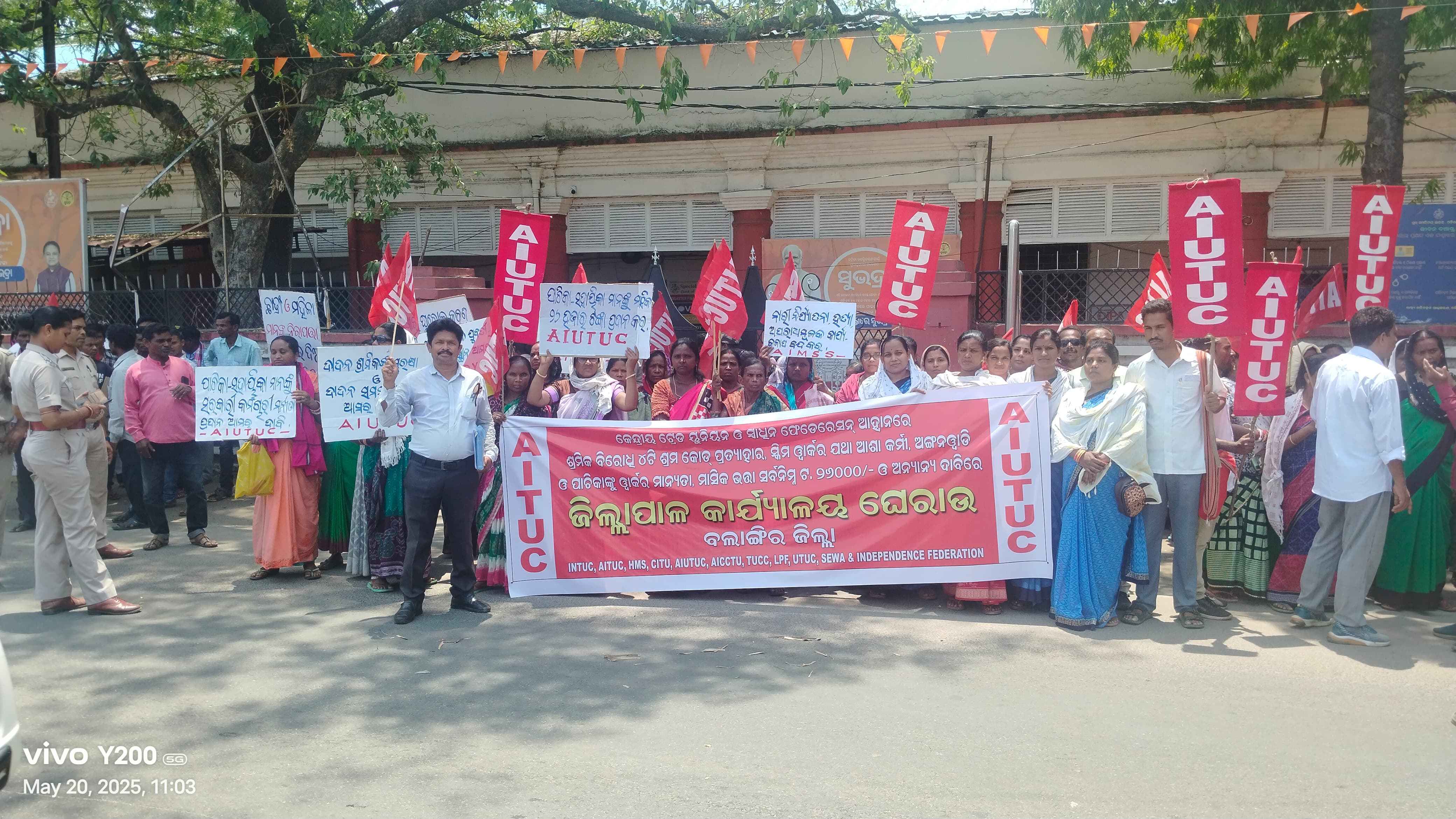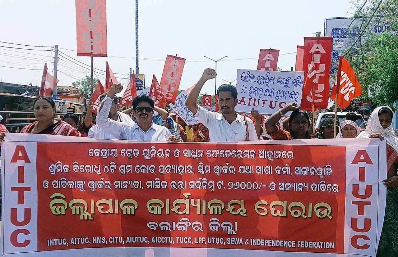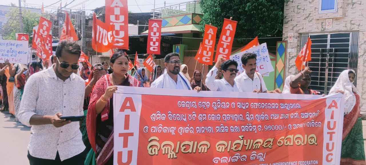 ଏନ୍ପିଏସ୍ ୟୁପିଏସ୍ ବାତିଲ କରି ପୁରୁଣା ପେନସନ ସ୍କିମ ପ୍ରଚଳନ, ସମାନ କାମକୁ ସମାନ ଦରମା, ୨୦୨୨ ବିଦ୍ୟୁତ ସଂଶୋଧନ ପ୍ରତ୍ୟାହାର, ପ୍ରିପେଡ ସ୍ମାର୍ଟ ମିଟର ବାତିଲ, ରାଷ୍ଟ୍ରାୟତ ଓ ସରକାରୀ ସଂସ୍ଥାର ଘରୋଇ କରଣ ବନ୍ଦ କରିବା ଓ ଜାତୀୟ ଶିକ୍ଷାନିତି ୨୦୨୦ ବାତିଲ ଆଦି ୧୭ ଦଫା ଦାବିରେ ବିକ୍ଷୋଭ ପ୍ରଦର୍ଶନ କରାଯାଇଛି । ଏଆଇଟିୟୁସି ଜିଲ୍ଲାସଭାପତି ତୀର୍ଥ ପଧାନଙ୍କ ସଭାପତିତ୍ୱରେ ଆଜିର ବିକ୍ଷୋଭ ସଭାରେ ବକ୍ତବ୍ୟ ରଖିଥିଲେ ଏଆଇୟୁଟିୟୁସି ରାଜ୍ୟ କମିଟି ସଭ୍ୟ ଅଶୋକ ମିଶ୍ର । ନିଖିଳ ଓଡିଶା ଆଶା କର୍ମୀ ସଂଘ ସଭାପତି ଦମୟନ୍ତି ମହାନନ୍ଦ, ସଂଜୁ ବାଗ, ପ୍ରଭାସିନି ରାୟ, ବଲାଙ୍ଗିର ବ୍ଲକ ସଂଘ ସଂପାଦିକା ବାସନ୍ତି ସେଠ,