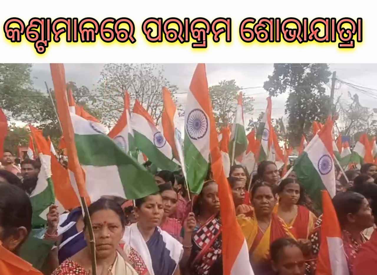 ମୋଦୀ ଜୀଙ୍କ ହାତରେ ଅଛି l ଏହି ଶୋଭାଯାତ୍ରା ଦେଶର ସୀମାନ୍ତ ରେ ଲଢ଼ୁଥିବା ଜାଗ୍ରତ ପ୍ରହରୀ ଭରତୀୟ ସେନା ଙ୍କ ଉଦ୍ଦେଶ୍ୟ ରେ ଉତ୍ସର୍ଗୀକୃତ ବୋଲି ବିଧାୟକ ସେ କହିଥିଲେ। ସଭା ପରେ ବର୍ଷା ଯୋଗୁଁ ବ୍ଲକ ଛକ ଠାରୁ ବାହାରି ସତସଙ୍ଗ ବିହାର ପର୍ଯ୍ୟନ୍ତ ଏକ ତ୍ରିରଙ୍ଗା ଶୋଭାଯାତ୍ରାରେ ବହୁ ସଂଖ୍ୟକ ଲୋକମାନେ ଯୋଗଦେଇ ହାତରେ ତ୍ରିରଙ୍ଗା ପତାକା ଧରି ଜୟ ହିନ୍ଦ, ଭାରତ ମାତା କି ଜୟ ଧ୍ୱନୀରେ ଚାଲି ଚାଲି ଏହି ଯାତ୍ରା ସମ୍ପୂର୍ଣ୍ଣ କରିଥିଲେ। ପ୍ରତିକୂଳ ପାଗ ସତ୍ତ୍ୱେ ଲୋକଙ୍କ ମଧ୍ୟରେ ଉତ୍ସାହ ଦେଖିବାକୁ ମିଳିଥିଲା l ଶୋଭାଯାତ୍ରାରେ କଣ୍ଟାମାଳ ବିଧାୟକ କହ୍ନାଇ ଚରଣ ଡାଙ୍ଗଙ୍କ ସହ ଜିଲ୍ଲା ସଭାପତି ପ୍ରେମାନନ୍ଦ ମିଶ୍ର,ପୂର୍ବତନ ସଭାପତି ବିପ୍ରଚରଣ ମହାନ୍ତି,୪ନଂ ଜୋନ ଜିଲ୍ଲାପରିଷଦ ସଭ୍ୟ ରାକେଶ ତ୍ରିପାଠୀ, ୨ନଂ ଜୋନ ଜିଲ୍ଲାପରିଷଦ ସଭ୍ୟା ଶ୍ରୀମତୀ ପଦ୍ମାଳୟା ପ୍ରଧାନ,ଯୁବନେତା ଓମ ପ୍ରକାଶ ମିଶ୍ର,ବରିଷ୍ଠ ନେତା ନବୀନ
