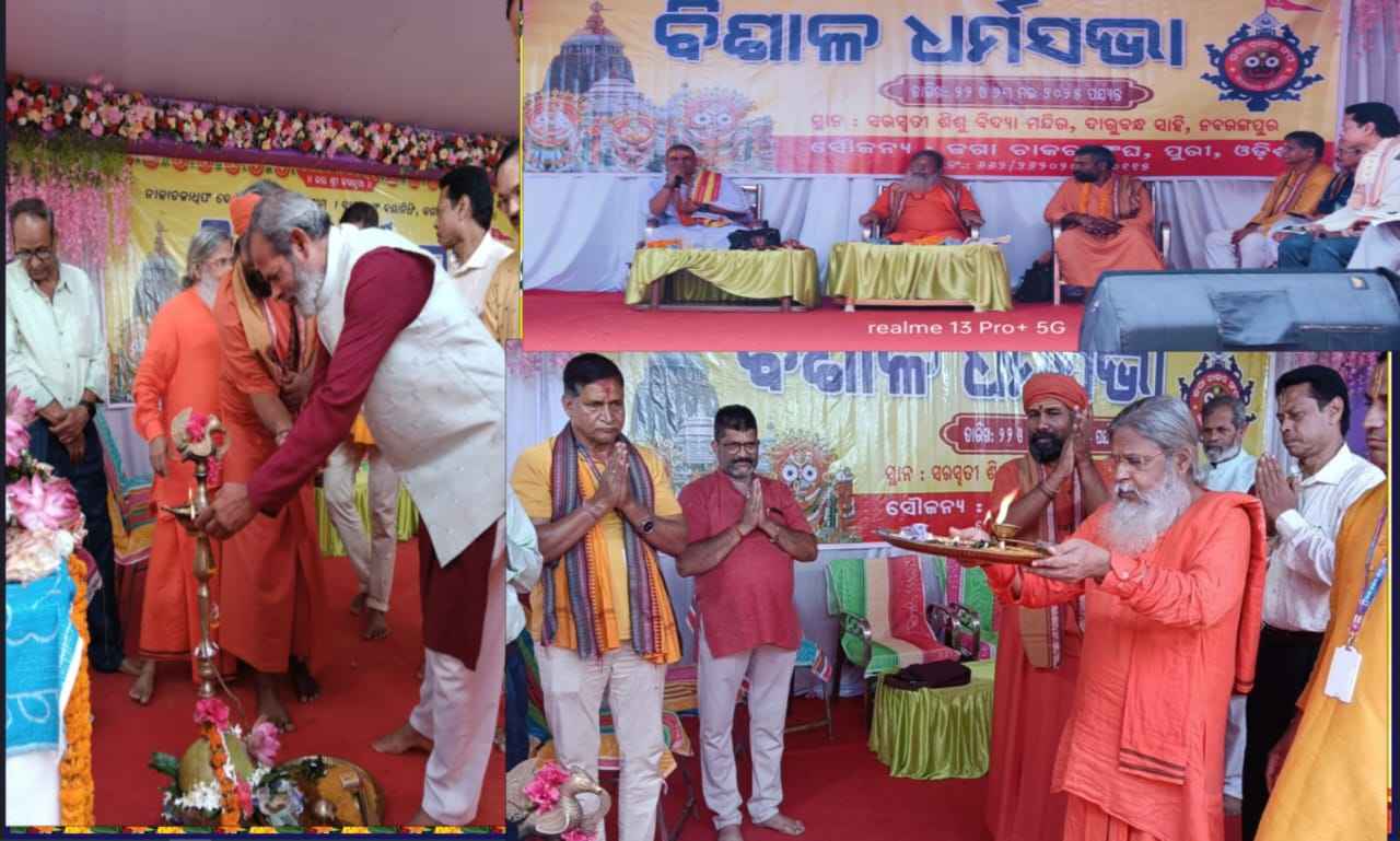 ଦାରୁବନ୍ଧ ସାହି ସ୍ଥିତ ସରସ୍ୱତୀ ଶିଶୁ ମନ୍ଦିର ପରିସରରେ ୨୨ ଓ ୨୩ ତାରିଖ ଦୁଇ ଦିନ ବ୍ୟାପୀ ଓଡିଶାର ବିଭିନ୍ନ ଜିଲ୍ଲାରୁ ଆଗତ ଓ ସ୍ଥାନୀୟ ଶତାଧିକ ଶ୍ରଦ୍ଧାଳୁ ଭକ୍ତଙ୍କ ସମାବେଶରେ ପୁରୀ ସ୍ଥିତ ଜଗା ଚାକର ସଂଘ ତରଫରୁ ସଂଘର ପ୍ରତିଷ୍ଠାତା ଲଳିତ କୁମାର ସାହୁଙ୍କ ପରିଚାଳନା ଓ ସଭାପତି ପ୍ରକାଶ ଚନ୍ଦ୍ର ସାହୁଙ୍କ ସଭାପତିତ୍ବ ତଥା ସନ୍ତୋଷ କୁମାର ମିଶ୍ରଙ୍କ ସମ୍ପାଦକତ୍ବ ସାଙ୍ଗକୁ ସଂଘର କର୍ମୀ ଅନୀତା ମହାରଣା ,ଧର୍ମାନନ୍ଦ ସାହୁ,ରାଜେଶ କୁମାର ବେହେରା,ସରୋଜ ମହାଙ୍କୁଡ, ଘାସିରାମ ନାୟକ,ମନୋଜ କଂସ ବେହେରା ,ସୁନିଲ ମହାନ୍ତି, ହେମାଙ୍ଗିନୀ ପଟ୍ଟନାୟକ, ସୀତା ଲକ୍ଷ୍ମୀ ବେହେରା, ସୁନିତା ମହାରଣା,କଳ୍ପନା ଦାଶ ପ୍ରମୁଖଙ୍କ ପରିଚାଳନା ସହଯୋଗରେ ଭବ୍ୟ ଧର୍ମ ସଭା ଓ ଆଧ୍ଯାତ୍ମିକ ସମ୍ମିଳନୀ ଅନୁଷ୍ଠିତ ହୋଇ ଯାଇ ଅଛି ।ପୂଜ୍ୟ ପୂଜାରେ ନବରଙ୍ଗପୁରର ବିଶିଷ୍ଟ ଆଧ୍ଯାତ୍ମିକ ଗୁରୁ ଓ ବିଜ୍ଞ ତଥା ସମାଜସେବୀମାନଙ୍କୁ ସମ୍ମାନିତ କରା ଯିବା ସାଙ୍ଗକୁ ସ୍ଥାନୀୟ କିଛି ଭିନ୍ନ କ୍ଷମ ଓ ଅସହାୟଙ୍କୁ ଅନ୍ନ ବସ୍ତ୍ରାଦି ବିତରଣ କରା ଯାଇ ଅଛି ।ବେଦ ମନ୍ତ୍ରୋଚ୍ଚାରଣ,ସ୍ବାଗତ ଗୀତ,ଗୀତା ପାଠ, ସୁନିତା ମହାରଣା ଓ ସାଥୀଙ୍କ ସୁମଧୁର ଶ୍ରୀ ଜଗନ୍ନାଥଙ୍କ ଭଜନ ପରିବେଷଣ, ବାଲିଘାଇ ,ପୁରୀ ସ୍ଥିତ, କ୍ରିୟା ଯୋଗାଶ୍ରମର ସନ୍ଥ ସ୍ବାମୀ ଶ୍ରୀ କୃଷ୍ଣାନନ୍ଦ ଗିରି,ସ୍ବାମୀ ଶ୍ରୀ ନିତ୍ୟ ପ୍ରେମାନନ୍ଦ ଗିରି ଓ ଅନ୍ୟତମ ବାଲ୍ୟ ସନ୍ଥ ଶ୍ରୀ ପ୍ରେମାନନ୍ଦ ଦାସଙ୍କ ଶ୍ରୀ ଜଗନ୍ନାଥଙ୍କ ଅମୃତ ବାରି ପ୍ରବଚନ; ଉପସ୍ଥିତ ଭକ୍ତ ଗଣଙ୍କୁ ଦିବ୍ୟ ଚେତନାରେ ଉଦ୍ ବୁଦ୍ଧ କରି ଅଛି।ନବରଙ୍ଗପୁରର ବିଶିଷ୍ଟ ଶିକ୍ଷାବିତ୍ ଡ:ବିଜୟ କୁମାର ମିଶ୍ର, ସ୍ଥାନୀୟ ରଶ୍ମି ରଞ୍ଜନ ସିଦ୍ଧାଶ୍ରମର ଅଧ୍ୟକ୍ଷ ଶ୍ରୀ ସ୍ବାମୀ ଡ: ରଶ୍ମି ପ୍ରସାଦ,କାଳୀ କୃଷ୍ଣ ସଂଘର ନବରଙ୍ଗପୁର ପ୍ରମୁଖ ଦିଲୀପ କୁମାର ହୋତା,ସରସ୍ୱତୀ ଶିଶୁ ମନ୍ଦିରର ପ୍ରାପ୍ତାବସର ପ୍ରଧାନାଚାର୍ଯ୍ୟ ହୃଷୀକେଶ ଦାଶ ଓ ଅନ୍ୟତମ ପ୍ରାଚାର୍ଯ୍ୟ ରବି ଶଙ୍କର ସାହୁ,ସରସ୍ବତୀ ଶିଶୁ ମନ୍ଦିରର ସଭାପତି ବଳରାମ ଛୁଆଳ ସିଂହ,ବିଶିଷ୍ଟ ରାଜ ପୁରୋହିତ ନରସିଂହ ତ୍ରିପାଠୀ ପ୍ରମୁଖ ଅତିଥି ଗଣ ନିଜ ବକ୍ତବ୍ୟରେ ଶ୍ରୀଜଗନ୍ନାଙ୍କ ମହିମା,ଗାରିମା ଓ ବୈଶିଷ୍ଟ୍ୟ ପ୍ରତିପାଦନ ପୂର୍ବକ ସମଗ୍ର ବିଶ୍ୱରେ ଓଡିଶା ଓ ଶ୍ରୀ ଜଗନ୍ନାଥ ସଂସ୍କୃତି