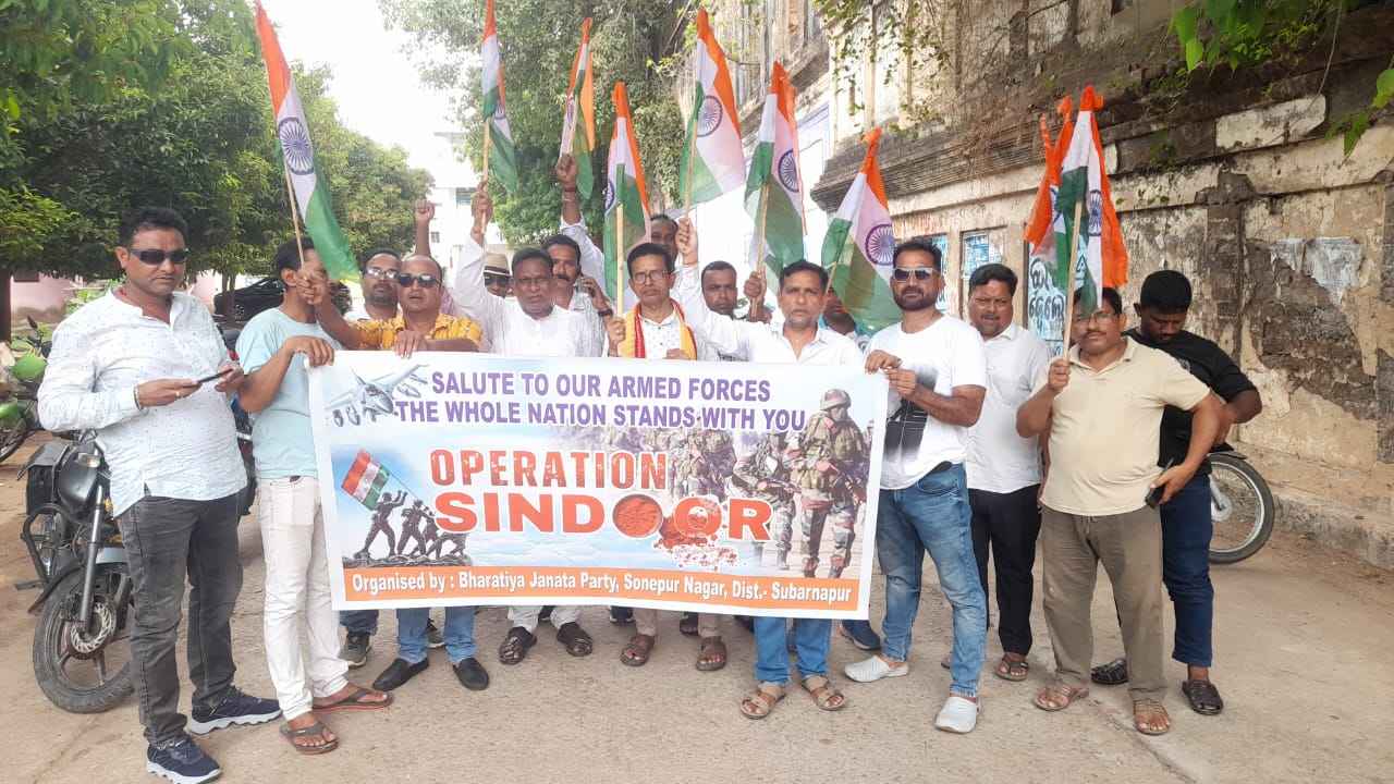 ସୋଳପୁର, (ମନୋରଞ୍ଜନ ତ୍ରିପାଠୀ)- ଅପରେସନ୍ ସିନ୍ଦୂରର ସଫଳତା କୁ ନେଇ ଜନସାଧାରଣଙ୍କ ମଧ୍ୟରେ ଉତ୍ସହ ସୃଷ୍ଟି କରିବା ସହ ଦେଶପ୍ରେମ ଜାଗ୍ରତ କରିବା ଉଦ୍ଦେଶ୍ୟରେ ଆଜି ସୁବର୍ଷପୁର ବିଜେପି ନଗର ମଣ୍ଡଳ ପକ୍ଷରୁ ସ୍ଥାନୀୟ ଜଗନ୍ନାଥ ମନ୍ଦିର ପ୍ରାଙ୍ଗଣ ରେ ତ୍ରିରଙ୍ଗା ଯାତ୍ରା ଶୁଭାରମ୍ଭ ହୋଇଛି । ଏହି ଶୋଭାଯାତ୍ରା ସହର ପରିକାମ କରି ଲୋକଙ୍କ ମଧ୍ୟରେ ଦେଶପ୍ରେମ ବାର୍ତା ପହଚାଇଥିଲା । ଏଥିରେ ମୁଖ୍ୟ ଅତିଥୁ ଭାବେ ଜିଲ୍ଲା ବିଜେପି ସଭାପତି ବେଣୁଧର ଦାଶ ଯୋଗ ଦେଇ କାର୍ଯ୍ୟକ୍ରମ ଶୁଭାରମ୍ଭ କରିଥିଲେ । ନଗର ମଣ୍ଡଳ ସଭାପତି ସୁରେଶ ବିଶ୍ଵାଳଙ୍କ ନେତୃତ୍ୱରେ ଆୟୋଜିତ ଏହି କାର୍ଯ୍ୟକ୍ରମ ରେ ଜିଲ୍ଲା ଯୁବ ମୋର୍ଚ୍ଚା ସଭାପତି ସରୁପ ପାତ୍ର, ବରିଷ୍ଠ କାର୍ଯ୍ୟକର୍ତା ଶିବରାମ ସାହୁ, କାଉନସିଲର ଗଙ୍ଗାଧର ଦରିଆ, ଦଶରଥି ମେହେର, ଗୁପ୍ତପ୍ରକାଶ ମିଶ୍ର, ବିବେକାନନ୍ଦ ମିଶ୍ର,ପ୍ରଫୁଲ୍ଲ ମେହେର, ଦେବାଶିଷ ପୂଜାରୀ, ଶୁଭ୍ରାଂଶୁ ଶେଖର ମିଶ୍ର, ପ୍ରମୁଖଙ୍କ ବହୁ କାର୍ଯ୍ୟକର୍ତା ସାମିଳ ଥିଲେ ।