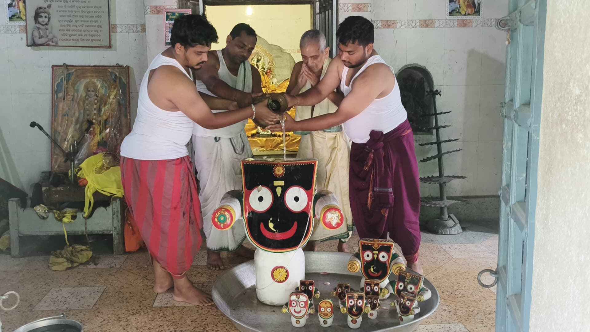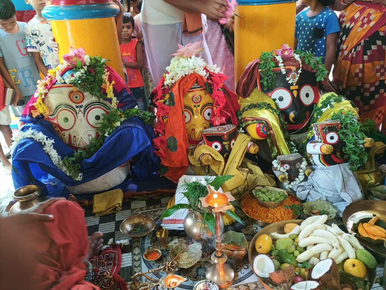 ପବିତ୍ର ଜଳ କୁ ଚନ୍ଦନ, ଅଗୁରୁ, କର୍ପୁର , କେଶର ଆଦି ଦିବ୍ୟ ସୁବାସିତ ପଦାର୍ଥ ଦେଇ ମନ୍ତ୍ରପୂତ କରାଯାଇଥିଲା। ଓ ଦେବ ସ୍ନାନ କରା ଯାଇଥିଲା lତାପରେ ଶ୍ରୀଜୀଉ ମାନଙ୍କର ଦିବ୍ୟ ଗଜାନନ ବେଶ ଅନୁଷ୍ଠିତ ହୋଇଥିଲା ଓ ଭୋଗ, ଆଳତୀ ପୂଜାର୍ଚ୍ଚନା ପରେ ଏହି ଦିବ୍ୟ ଦୁର୍ଲଭ ବେଶ କୁ ଭକ୍ତ ମାନେ ଦର୍ଶନ କରିଥିଲେ। ତାପରେ ଶ୍ରୀଜୀଉ ମାନଙ୍କର ଅଣସର ବିଜେ କରାଯାଇଥିଲା। ପ୍ରକାଶ ଥାଉ କି ଆଜି ଠାରୁ ମହାପ୍ରଭୁ ଙ୍କ ଶ୍ରୀମୁଖ ଦର୍ଶନ ନିଷେଧ ଅଛି। ଏହି କାର୍ଯ୍ୟକ୍ରମ ରେ ଶ୍ରୀ ଜଗନ୍ନାଥ ମନ୍ଦିର ଠାରେ ପୂଜକ ରାମ ଗୋପାଳ ପୁଝାରୀ, , ରାଜା ପୁଝାରୀ, ବାଲାଜୀ ତରାସିଆ, ରାମ ଶଙ୍କର ଭୋଇ, ବୈକୁଣ୍ଠ ଶତପଥି, ଜୟ ପ୍ରକାଶ ମିଶ୍ର, ରାଜ କିଶୋର ତ୍ରୀପାଠୀ , ଶ୍ରୀ ଦଧି ବାମନ ମନ୍ଦିର ଠାରେ ପୂଜକ ଦେବେସ ମିଶ୍ର, ସେବାୟତ ଶ୍ରୀବତ୍ସ ମଲ୍ଲିକ, ସାରଦା ମିଶ୍ର, କଲ୍ୟାଣ ପାଢ଼ୀ, ଶିବ ସରାଫ, ପ୍ରଦୀପ ବକ୍ସି, ଅଶୋକ ପୂଝାରୀ, ଦଧି ବାମନ ପୁଝାରୀ, ହରି ପଟ୍ଟନାୟକ, କାର୍ତ୍ତିକ ପଧାନ, ତାରା ଶଙ୍କର ସାହୁ ଓ ବୃନ୍ଦାବନ ବିହାରୀ ମନ୍ଦିର ଠାରେ ପଣ୍ତିତ ରାଜେନ୍ଦ୍ର କୁମାର ମହାପାତ୍ର, ପଣ୍ତିତ ପୀତବାସ ମିଶ୍ର, ଶ୍ରୀତମ ମହାପାତ୍ର, ମିକୁ ମିଶ୍ର, କୃପାନିଧି ରାୟ ଗୁରୁ, ଶ୍ୟାସୁନ୍ଦର ଶର୍ମା, କୁନା ନାଏକ ପ୍ରମୁଖ ଏ ଅଞ୍ଚଳ ର ଭକ୍ତ ମାନେ ସହଯୋଗ କରିଥିଲେ l