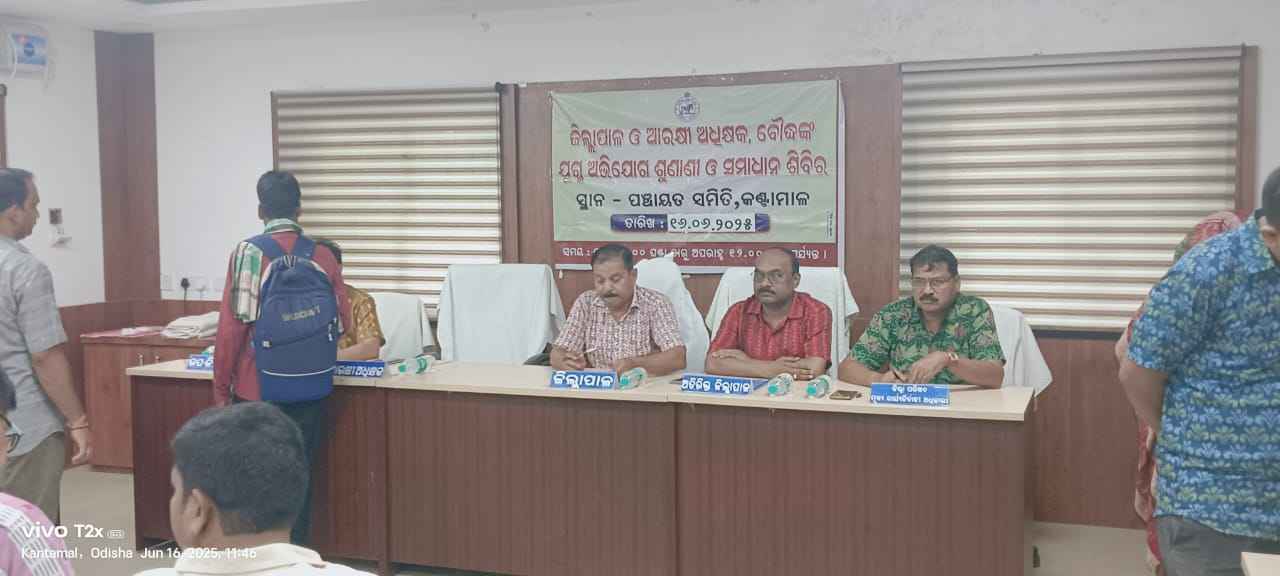 କଣ୍ଟାମାଳ(ଜୟକୁମାର ମହାରଣା): କଣ୍ଟାମାଳ ବ୍ଲକ ସମ୍ବିଳନୀ କକ୍ଷଠାରେ ଜିଲ୍ଲା ପ୍ରଶାସନ ପକ୍ଷରୁ ଜିଲ୍ଲାପାଳସୁବ୍ରତ କୁମାର ପଣ୍ଡା ଓ ଜିଲ୍ଲା ଆରକ୍ଷୀ ଅଧିକ୍ଷକ ରାହୁଲ ଗୋୟଲ ଙ୍କ ମିଳିତ ଯୁଗ୍ମ ଅଭିଯୋଗ ଶୁଣାଣୀ ଓ ସମାଧାନ ଶିବିର ଅନୁଷ୍ଠିତ ହୋଇ ଯାଇଛି । ୬୮ଅଭିଯୋଗ ପଞ୍ଜିକୃତ ହୋଇଥିବା ବେଳେ ବ୍ୟକ୍ତିଗତ ୬୧ଟି ଓ ଗୋଷ୍ଟୀଗତ ୦୭ଗୋଟି ହୋଇ ଥିଲା l ଆଠ ଜଣଙ୍କୁ ନୂତନ ଭତ୍ତା ପ୍ରଦାନ କରା ଯାଇଥିଲା l ଜଣଙ୍କୁ ହୁଇଲ ଚେୟାର ଦିଆ ଯାଇଥିଲା l ବିଭିନ୍ନ ଆପତ୍ତି ଅଭିଯୋଗ ର ଶୁଣାଣି କରିବା ସହ ସମ୍ପୃକ୍ତ ବିଭାଗୀୟ ଅଧିକାରୀମାନଙ୍କୁ ସମାଧାନ ପାଇଁ ନିର୍ଦ୍ଦେଶ ଦିଆଯାଇଥିଲା । ଶିବିରରେ ଅନ୍ୟମାନଙ୍କ ମଧ୍ୟରେ ଅତିରିକ୍ତ ଜିଲ୍ଲାପାଳ ଅନିରୁଦ୍ଧ ପ୍ରଧାନ,ଜିଲ୍ଲା ପରିଷଦ ମୁଖ୍ୟ ଉନ୍ନୟନ ଅଧିକାରୀ ପ୍ରଭାସ ଚଦ୍ର ଦଣ୍ଡସେନା,ଉପଜିଲ୍ଲାପାଳ ପ୍ରବୀଣ କୁମାର ବାଣୁଆ, ତହସିଲଦାର ଶ୍ୱେତପଦ୍ମା ଯୋଶୀ,ଅତିରିକ୍ତ ତହସିଲଦାର ତଥା ଭାରପ୍ରାପ୍ତ ବିଡ଼ିଓ ଧନଞ୍ଜୟ ସାହୁ , ବ୍ଲକ ସହକାରୀ ନିର୍ବାହୀ ଯନ୍ତ୍ରୀ ଜୟ ମହନ୍ତ ,ଏପିଓ ସଂଜିତକୁମାର ମିଶ୍ର,ଗ୍ରାମ ପଂଚାୟତ ଉନ୍ନୟନ ଅଧିକାରୀ ଜୟ ଦେବ ପ୍ରଧାନ,ସହକାରୀ ନିର୍ବାହୀ ଯନ୍ତ୍ରୀ ଇଂ ଗୋବିନ୍ଦ ଚନ୍ଦ୍ର ନାଏକ,ସହକାରୀ ଯନ୍ତ୍ରୀ,ଇଂ ଅଜିତ କୁମାର ସେଠୀ,କନିଷ୍ଠ ଯନ୍ତ୍ରୀ ରବିନ୍ଦ୍ର ଆଚାରି, ,ବିଏସଏସଓ ସୂର୍ଯ୍ୟ ନାରାୟଣ ଦାସ,କଣ୍ଟାମାଳ ମେଡିକାଲ ଅଫିସର ଡାକ୍ତର ଜଗଦୀଶ ସେଠି, ସିଡିପିଓ ପଙ୍କଜିନୀ ମିଶ୍ର,କଣ୍ଟାମାଳ ଥାନା ଅଧିକାରୀ ଭାବନନ୍ଦ ପ୍ରଧାନ ସମେତ କଣ୍ଟାମାଳ ବ୍ଲକର ସମସ୍ତ ଅଧିକାରୀ ଓ କର୍ମଚାରୀ ଶିବିର ପରିଚାଳନାରେ ସହଯୋଗ କରିଥିଲେ ।