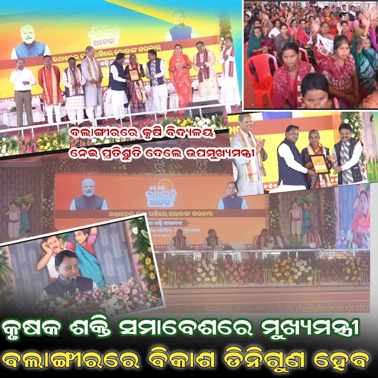ଉପମୁଖ୍ୟମନ୍ତ୍ରୀ ତଥା କୃଷି ଓ କୃଷକ ସଶକ୍ତିକରଣ ମନ୍ତ୍ରୀ କନକବର୍ଦ୍ଧନ ସିଂହଦେଓ ଯୋଗ ଦେଇ ଆତ୍ମନିର୍ଭରଶୀଳ ଭାରତ ଓ ଆତ୍ମନିର୍ଭରଶୀଳ ଓଡ଼ିଶା ଗଠନ ଦିଗରେ ଆମ ସରକାର କାମ କରୁଛି । ଖୁବଶୀଘ୍ର ବଲାଙ୍ଗୀରରେ ଗୋଟିଏ କୃଷି ବିଦ୍ୟାଳୟ ଓ ସୋନପୁରରେ ଫିସରୀ କଲେଜ ସ୍ଥାପନ କରାଯିବାର ଯୋଜନା ରହିଛି ବୋଲି ଉପମୁଖ୍ୟମନ୍ତ୍ରୀ ଶ୍ରୀ ସିଂଦେଓ ଦୃଢ଼ୋକ୍ତି ପ୍ରକାଶ କରିଛନ୍ତି । ଅନ୍ୟ ମାନଙ୍କ ମଧ୍ୟରେ ବଲାଙ୍ଗୀର ସାଂସଦ ସଙ୍ଗୀତା କୁମାରୀ ସିଂଦେଓ, ସ୍ୱାସ୍ଥ୍ୟ ଓ ପରିବାର କଲ୍ୟାଣ ମନ୍ତ୍ରୀ ଡ. ମୁକେଶ ମହାଲିଙ୍ଗ, କଂଟାବାଞ୍ଜି ବିଧାୟକ ଲକ୍ଷ୍ମଣ ମାଝୀ, ଟିଟିଲାଗଡ଼ ବିଧାୟକ ନବୀନ ଜୈନ, ବରଗଡ଼ ସାଂସଦ ପ୍ରଦୀୂପ ପୁରୋହିତ, ବୀରମହାରାଜପୁର ବିଧାୟକ ରଘୁନାଥ ଜଗଦଲା,ଉତ୍ତରାଞ୍ଚଳ ରାଜସ୍ବ କମିଶନର ସଚିନ ରାମଚନ୍ଦ୍ର ଯାଦବ ପ୍ରମୁଖ ମଂଚାସୀନ ରହି ରାଜ୍ୟରେ ବିଜେପିର ଗୋଟିଏ ବର୍ଷର ଶାସନ ଓ ଦେଶରେ ବିଜେପିର ୧୧ ବର୍ଷ ଶାସାନ ଦେଶକୁ ଆଗେଇ ନେଇଛି । ଯଶସ୍ୱୀ ପ୍ରଧାନମନ୍ତ୍ରୀ ନରେନ୍ଦ୍ର ମୋଦୀଙ୍କ ଯୁଗାନ୍ତକାରୀ ଯୋଜନାର ସୁଫଳ ସମାଜର ସମାଜର ସବୁ ବର୍ଗର ଲୋକେ ପାଇ ପାରିଛନ୍ତି ବୋଲି କହିଥିଲେ । ଆଜି ଶାନ୍ତିଶୃଙ୍ଖଳା ରକ୍ଷା ପାଇଁ ପଥରଚେପାରେ ଉତ୍ତରାଞ୍ଚଳ ଡିଆଇଜି ହିମାଂଶୁ ଲାଲ୍ବ ଓ ବଲାଙ୍ଗୀର ଏସ୍ ପି ଅଭିଳାଷ ଜୀ ଙ୍କ ତତ୍ତ୍ଵାବଧାନରେ ବ୍ୟାପକ ପୋଲିସ ମୃତୟନ ହୋଇଥିଲେ । ଶେଷ ରେ ବଲାଙ୍ଗୀର ଜିଲ୍ଲାପାଳ ଗୌରବ ଶିବାଜୀ ଇଶଲୱାର୍ ସମସ୍ତଙ୍କୁ ଧନ୍ୟବାଦ ଅର୍ପଣ କରିଥିଲେ l