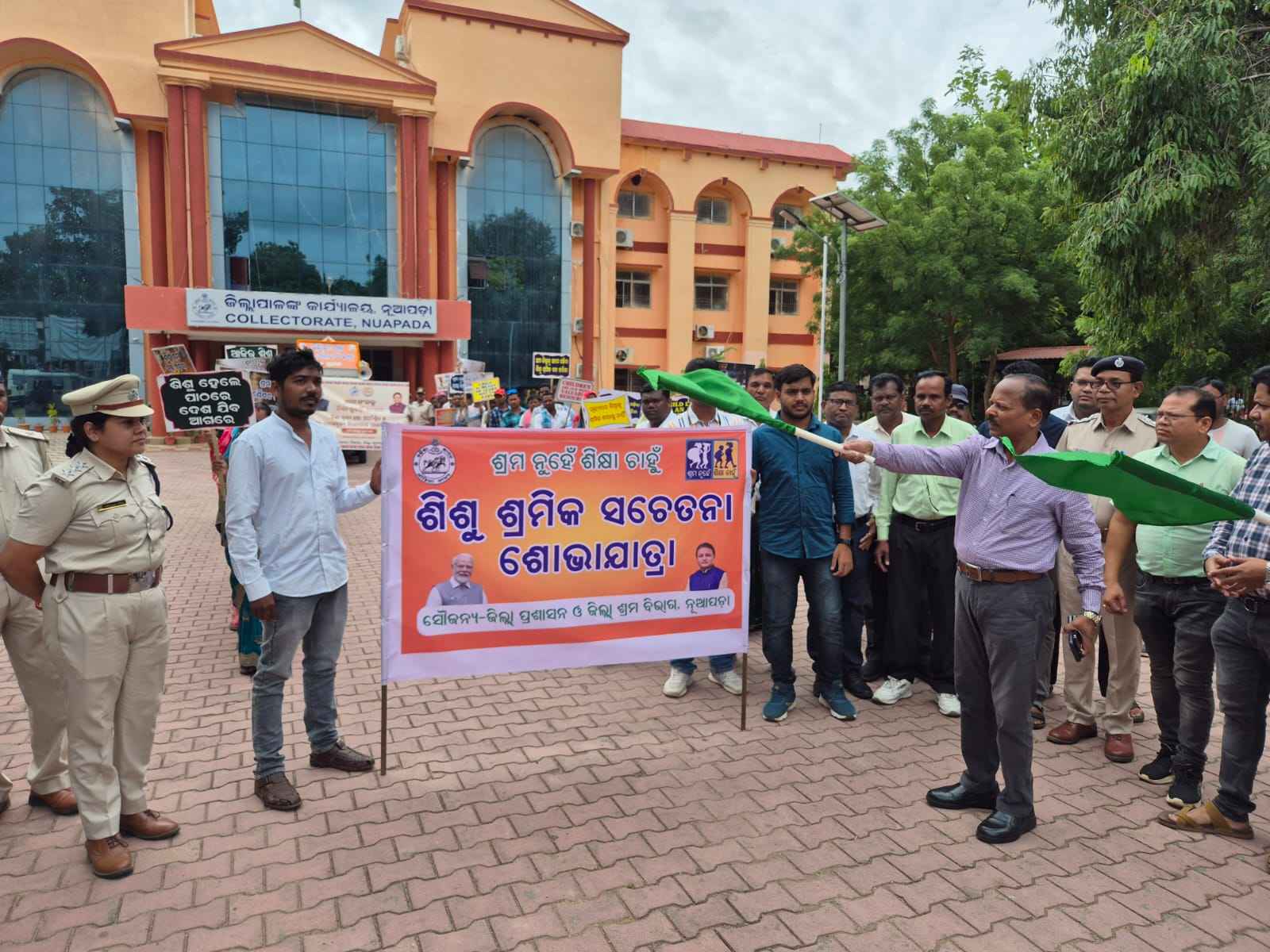 ନୂଆପଡ଼ା(ପରମେଶ୍ଵର ମେହେର): ନୂଆପଡ଼ା ଜିଲ୍ଲା ମୁଖ୍ୟାଳୟରେ ରେ ଜିଲ୍ଳା ପ୍ରଶାସନ ତଥା ଶ୍ରମ ବିଭାଗ ତରଫରୁ ଶିଶୁ ଶ୍ରମିକ ସଚେତନତା ଶୋଭାଯାତ୍ରା ଅନୁଷ୍ଠିତ ହୋଇଯାଇଛି l ଜିଲ୍ଲାପାଳ ମଧୁସୂଦନ ଦାଶ ନିଜ କାର୍ଯ୍ୟାଳୟରୁ ପତାକା ପ୍ରଦର୍ଶନ କରି ସଚେତନତା ରଥ ଓ ରେଲି ର ଶୁଭାରମ୍ଭ କରିଥିଲେ l ରାଜ୍ୟ ସରକାର ଶିଶୁ ଶ୍ରମ ମୁକ୍ତ ଓଡିଶା କରିବାକୁ ସଂକଳ୍ପ ନେଇଛନ୍ତି l ଆଇନତଃ ୧୪ ବର୍ଷରୁ କମ୍ ବୟସର ଶିଶୁଙ୍କୁ କୌଣସି କାମରେ ନିୟୋଜିତ କରିବା ଦଣ୍ଡନୀୟ ଅପରାଧ l ୧୫ରୁ ୧୮ ବର୍ଷ ମଧ୍ୟରେ କିଶୋର କିଶୋରୀ ମାନଙ୍କୁ ବିପଦସଙ୍କୁଳ କାମରେ ନିୟୋଜିତ କରା ଯିବନାହିଁ l ଏପରି କଲେ ୫୦ହଜାର ଟଙ୍କା ପର୍ଯ୍ଯନ୍ତ ଜରିମାନା ଏବଂ ଦୁଇ ବର୍ଷ ଜେଲ ଦଣ୍ଡାଦେଶ ହୋଇପାରେ l ଯାହା ନଜରରେ ଏଭଳି ଶିଶୁ ଶ୍ରମିକ ଆସିବ ତୁରନ୍ତ ପୋଲିସ, ପ୍ରଶାସନ କିମ୍ବା ଶ୍ରମ ବିଭାଗର ନଜରକୁ ଆଣିବେ l ଏହି କାର୍ଯ୍ୟକ୍ରମକୁ ସାକାର କରିବା ପାଇଁ ଜନସଚେତନତା ସୃଷ୍ଟି ଉଦ୍ଦେଶ୍ୟରେ ନୂଆପଡ଼ା ଜିଲ୍ଲାର ସବୁ ପଞ୍ଚାୟତରେ ଏହି ରଥ ବୁଲିବ l ଜିଲ୍ଳା ଶ୍ରମ ବିଭାଗ ଅତିରିକ୍ତ ଶ୍ରମ କମିଶନର ରବିନ୍ଦ୍ର