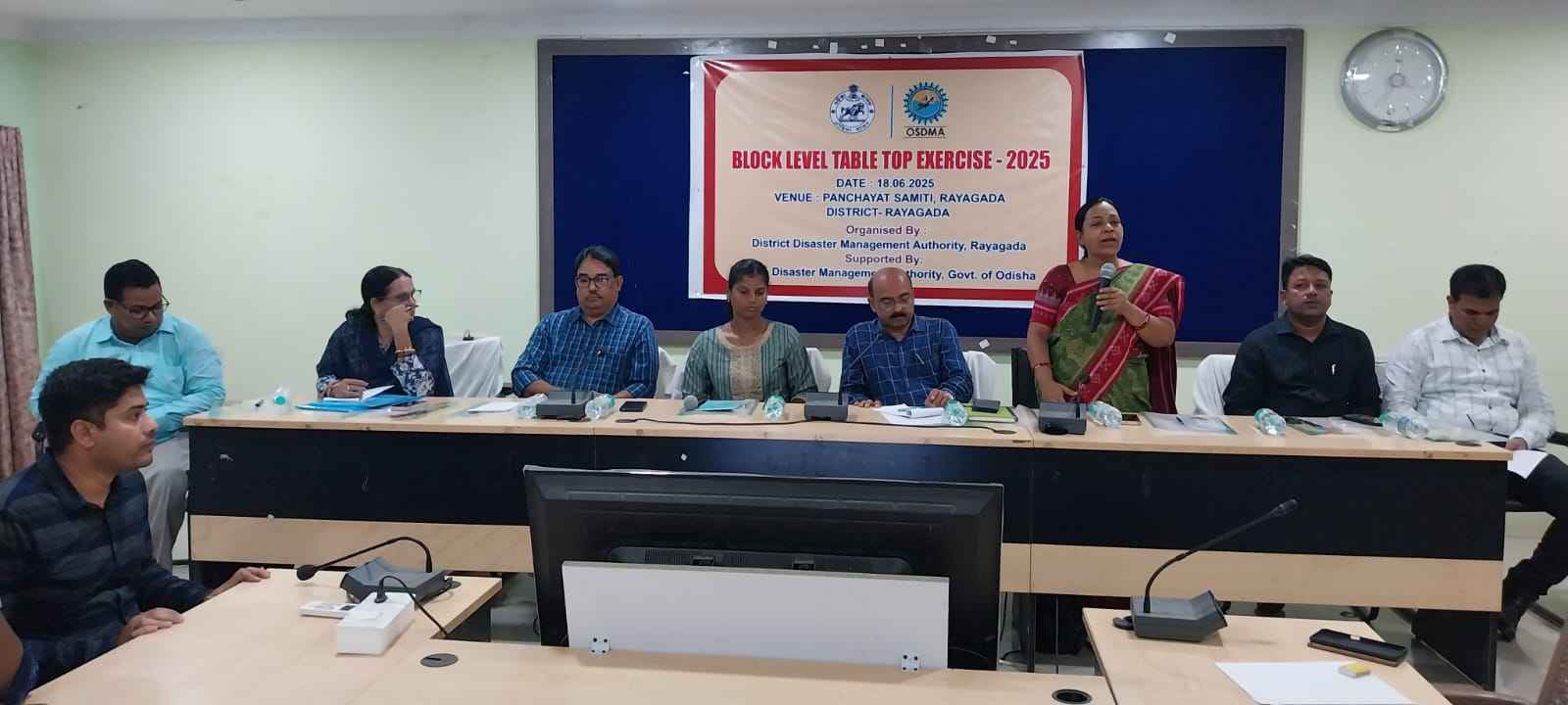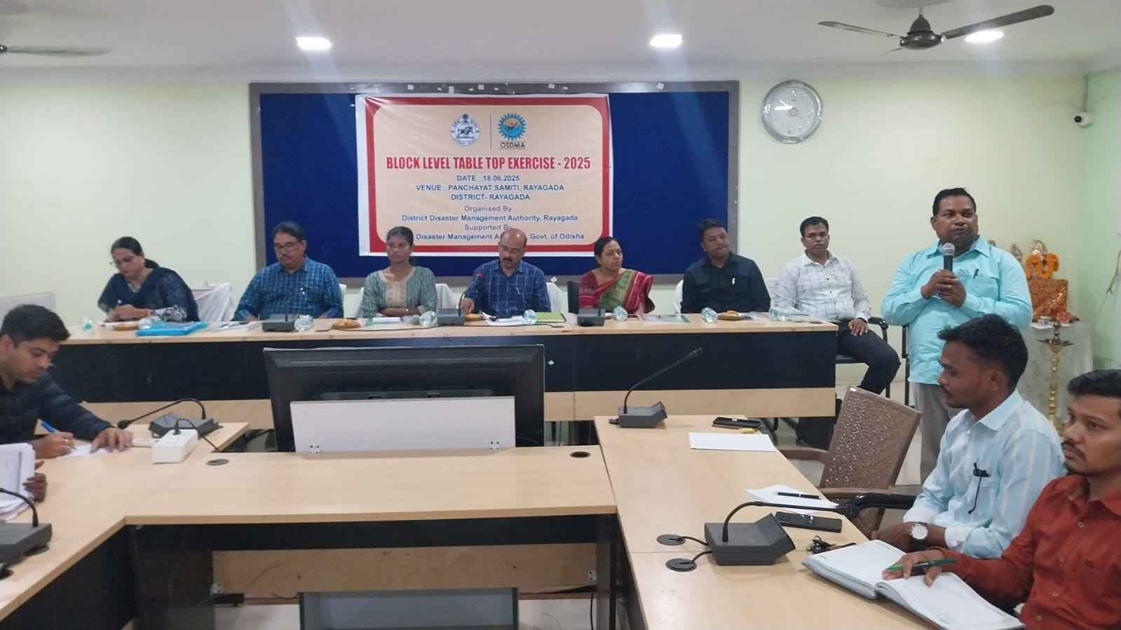 ସେହିପରି ଜିଲ୍ଲାପାଳ, ରାୟଗଡ଼ଙ୍କ ନିର୍ଦ୍ଦେଶ କ୍ରମେ ବୁଧବାର ଦିନ ଅପରାହ୍ନ ତିନି ଘଟିକା ସମୟରେ ରାୟଗଡ଼ ବ୍ଲକ ସ୍ତରୀୟ ବିପର୍ଯ୍ୟୟ ପରିଚାଳନା ନିମନ୍ତେ ଟେବୁଲ ଟପ୍ ଅଭ୍ୟାସ ଶିବିର ବ୍ଲକ ସଦଭାବନା ସଭାଗୃହରେ ଅନୁଷ୍ଠିତ ହୋଇଥିଲା । ଓସଡମାର ରାଜ୍ଯ ପ୍ରକଳ୍ପ ଅଧିକାରୀ ଶ୍ରୀମତୀ ସଙ୍ଗୀତା ଦାଶ, ଜରୁରୀକାଳୀନ ଅଧିକାରୀ ମନୋଜ କୁମାର