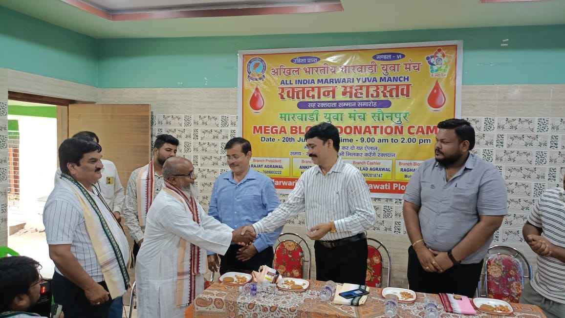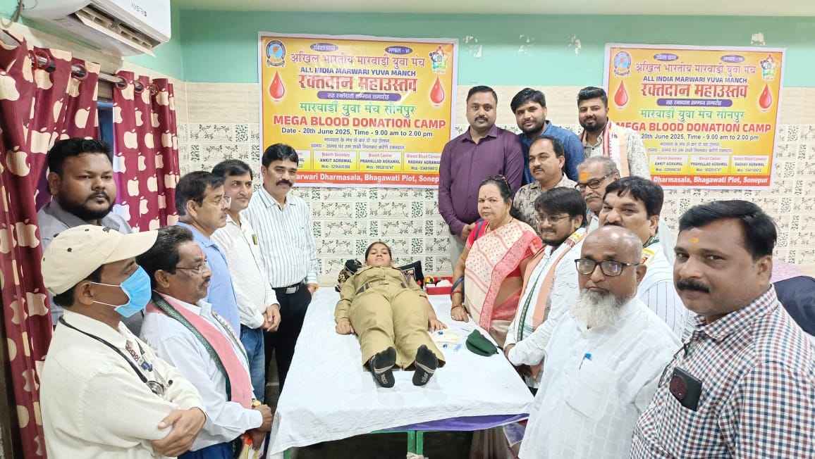 ଅଲ୍ ଓଡିଶା ମାରୱାଡ଼ି ଯୁବା ମଞ୍ଚ ପକ୍ଷରୁ ଆଜି ସୋନପୁର ମାରୱାଡ଼ି ଧର୍ମଶାଳା ଠାରେ ଏକ ମେଗା ରକ୍ତ ଦାନ ଶିବିର ଅନୁଷ୍ଠିତ ହୋଇଛି l ସୁବର୍ଣ୍ଣପୁର ଏସପି ଶ୍ରୀ ନାରାୟଣ ନାୟକ ମୁଖ୍ୟ ଅତିଥି ଭାବରେ ଯୋଗଦେଇ ଏହାକୁ ଉଦଘାଟନ କରି ଆୟୋଜକ ଓ ରକ୍ତ ଦାତା ଙ୍କୁ ଉତ୍ସାହିତ କରିଥିଲେ l ଯୁବା ମଞ୍ଚ ର ସଭାପତି ରଜତ ଅଗ୍ରୱାଲ ଙ୍କ ସଭାପତିତ୍ବ ରେ ଅନୁଷ୍ଟିତ ଏହି କାର୍ଯ୍ୟକ୍ରମ ରେ ସମ୍ମାନିତ ଅତିଥି ଭାବରେ ସୁବର୍ଣ୍ଣପୁର ମୁଖ୍ୟ ଚିକିତ୍ସା ଲୟ ର ଏଡିଏମଓ ଡ଼ା ଦୁର୍ଗା ଦତ୍ତ ଦାଶ, ଯୁବା ମଞ୍ଚ ସଂପାଦକ ଅଙ୍କିତ ଅଗ୍ରୱାଲ, ପ୍ରାନ୍ତୀୟ ଉପାଧ୍ୟକ୍ଷ ଅଙ୍କିତ ଅଗ୍ରୱାଲା, ମାରୱାଡ଼ି ସମାଜ ସଭାପତି ଗୋପାଳ ଭୁତ, ମହିଳା ସମିତି ସଭାପତି ମିନା ଅଗ୍ରୱାଲ, ବ୍ଲଡ କନଭେନର୍ ରାଘବ ଅଗ୍ରୱାଲା ଯୋଗ ଦେଇ ରକ୍ତ ଦାତା ଙ୍କୁ ଉତ୍ସାହିତ କରିଥିଲେ l ସୋନପୁର କଲେଜ୍ ଏନ୍ ସି ସି ଲେଫ୍ଟେନେଣ୍ଟ ଆଶିଷ କୁମାର ଅଗ୍ରୱାଲ ସଭା ସଂଯୋଜନା କରି ଅତିଥି ପରିଚୟ କରିଥିଲେ l ଯୁବା ମଞ୍ଚ ତଥା ମାରୱାଡି ସମାଜ ର ବରିଷ୍ଠ ନନ୍ଦୁ କମାଣି, ମନୋଜ୍ ଅଗ୍ରୱାଲା, ଶେଖର ଭୁତ, ପ୍ରହଲ୍ଲାଦ ଅଗ୍ରୱାଲା, ଅମିତ୍ ଅଗ୍ରୱାଲା ପ୍ରମୁଖ ସମସ୍ତ ସଦସ୍ୟ ସହଯୋଗ କରିଥିଲେ l