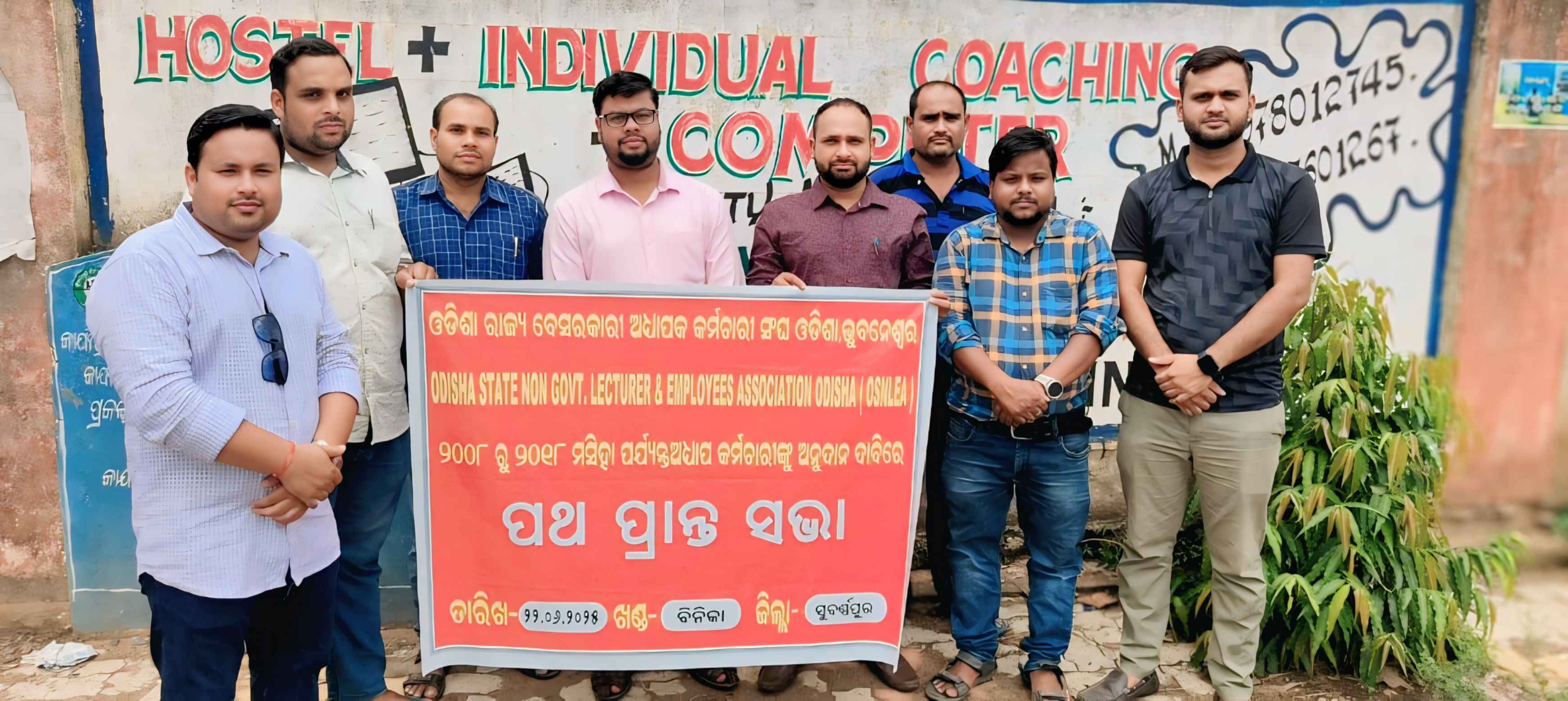 ଓଡ଼ିଶା ରାଜ୍ୟ ବେସରକାରୀ ଅଧ୍ୟାପକ ଓ କର୍ମଚାରୀ ସଂଘ ପକ୍ଷରୁ ରାଜ୍ୟ ସଭାପତି ବିଶ୍ୱରଂଜନ ଦାସଙ୍କ ଆହ୍ବାନ କ୍ରମେ ସୁବର୍ଣ୍ଣପୁର ଜିଲ୍ଲା ବିନିକା ବ୍ଲକର ଛକ ଠାରେ ଖଣ୍ଡ ସଂଯୋଜକ ବିଶ୍ୱନାଥ ମିଶ୍ରଙ୍କ ନେତୃତ୍ୱରେ ସଂଘ ପକ୍ଷରୁ ପଥ ପ୍ରାନ୍ତସଭା ଅନୁଷ୍ଠିତ ହୋଇଥିଲା । ଉକ୍ତ ସଭାରେ ସଂଘର ଜିଲ୍ଲା ସଂଯୋଜକ ଉଦ୍ଧବ ପଧାନ ଯୋଗଦେଇ କହିଥିଲେ ଯେପର୍ଯ୍ୟନ୍ତ ରାଜ୍ୟ ସରକାର ୦୧.୦୬.୨୦୦୮ ରୁ ୦୧.୦୬.୨୦୧୮ ମସିହା ପର୍ଯ୍ୟନ୍ତ ଅନୁଦାନ ନିମନ୍ତେ ନୀତିଗତ ନିଷ୍ପଭି ନେଇନାହାଁନ୍ତି,ସେ ପର୍ଯ୍ୟନ୍ତ ଏ ଅନୁଦାନ ନିମିତ୍ତ ଲଢ଼େଇ ସମଗ୍ର ରାଜ୍ୟରେ ଜାରି ରହିବ ବୋଲି ମତ ପ୍ରକାଶ କରିଥିଲେ। ଏଥି ସହିତ ଉକ୍ତ ସଭାରେ ସଙ୍ଘର ସକ୍ରିୟ ସଦସ୍ୟ ମାନସ ରଞ୍ଜନ ମିଶ୍ର, ମାନସ କୁମାର ନାୟକ,ଉଲୁଣ୍ଡା ବ୍ଲକ ଖଣ୍ଡ ସଂଯୋଜକ ସୁଶାନ୍ତ ଦେହୁରୀ,ପୁସ୍ତମ ମେହେର, ଭୁବନେଶ୍ୱର ସାହୁ,ପ୍ରିୟୟରଞ୍ଜନ ହୋତା,ଶରତ କଅଁର,ଆଶିଷ ଭୋଇ,ବାଳମକୁନ୍ଦ ବାରିକ, ସରୋଜ କୁମାର ବିଶି,ସୁଜିତ ଭୋଇ,ସୁମନ୍ତ ସାହୁ,ଟଙ୍କଧର ପଧାନ ପ୍ରମୁଖ ଉପସ୍ଥିତ ଥିଲେ।