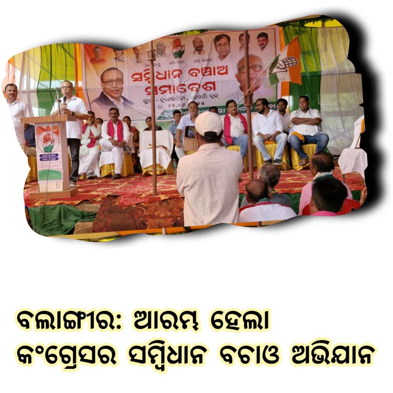 ବଲାଙ୍ଗିର(ପ୍ରେରଣା ଖବର)- ଦେଶର ଜନତାଙ୍କ ଅଧିକାରକୁ କଂଗ୍ରେସ ସର୍ବାଗ୍ରେ ଗୁରୁତ୍ୱ ଦେଇଥାଏ। ଲୋକଙ୍କ ଅଧିକାର ସେତେବେଳେ ସୁରକ୍ଷିତ ରହିବ ଯେତେବେଳେ ଦେଶ ସମ୍ବିଧାନ ସୁରକ୍ଷିତ ରହିବ। ସେଥି ପାଇଁ ଆମେ ଆଜି ସମ୍ବିଧାନ ବଚାଓ ଅଭିଯାନରେ ଆମେ ସମବେତ ହେଇଛୁଁ। ଏହି ଅଭିଯାନ ଲୋକଙ୍କ ପ୍ରତ୍ୟେକ ପାଖକୁ ପହଂଚିବ। ଏହାର ଲକ୍ଷ୍ୟ ହେଲା ବର୍ତ୍ତମାନ ଜନବିରୋଧି ବିଜେପି ସରକାର ଯେଭଳି ଭାବରେ ସମ୍ବିଧାନ ଏବଂ ବିଭିନ୍ନ ଗଣତାନ୍ତ୍ରିକ ସଂସ୍ଥାକୁ ନିଜର ରାଜନୈତିକ ଉଦ୍ଦେଶ୍ୟ ପୁରଣ ପାଇଁ ଆକ୍ରମଣ କରି ଚାଲିଛି ତାର ସେହି ଘୃଣ୍ୟ ଉଦ୍ଦେଶ୍ଯକୁ