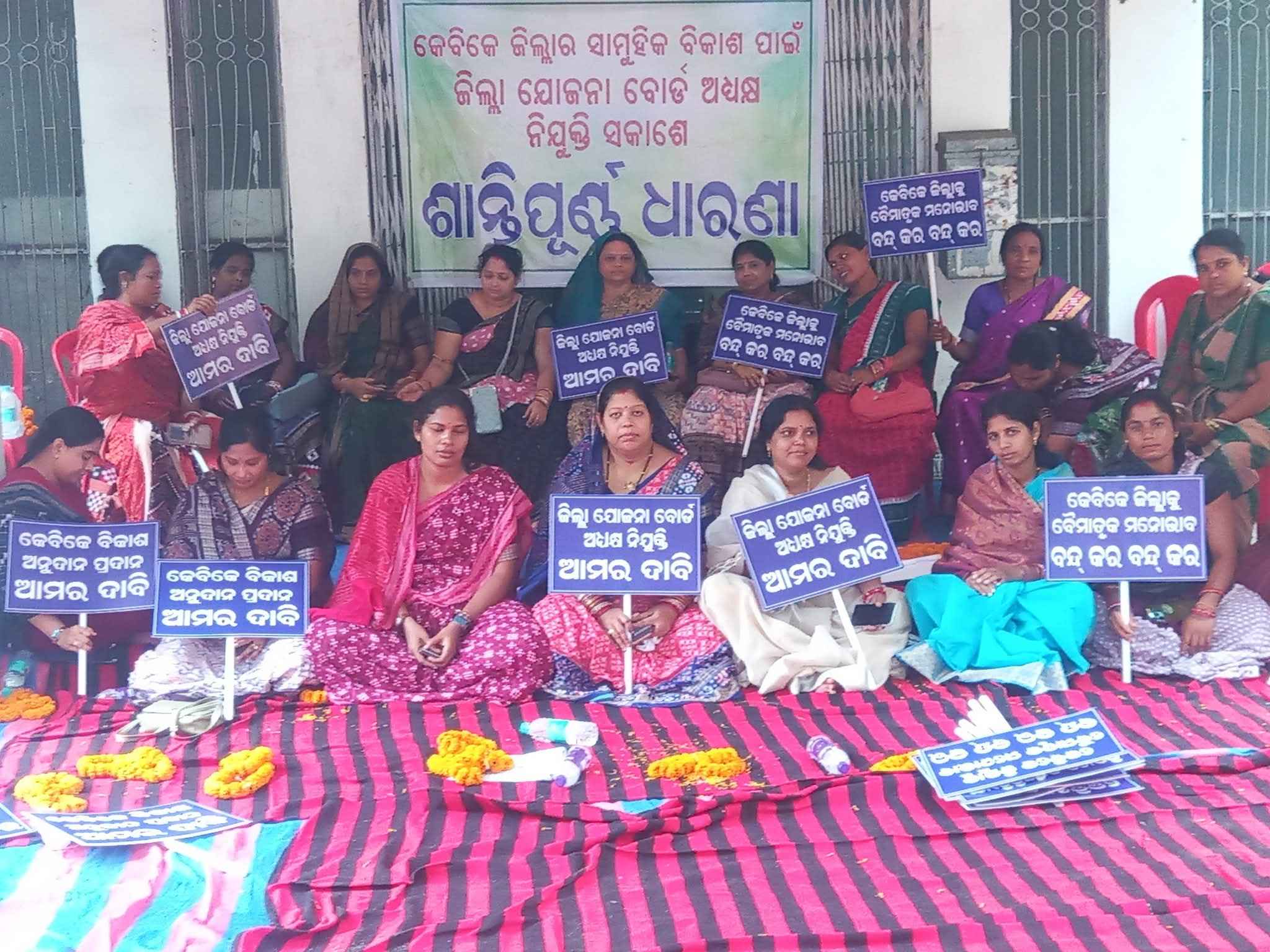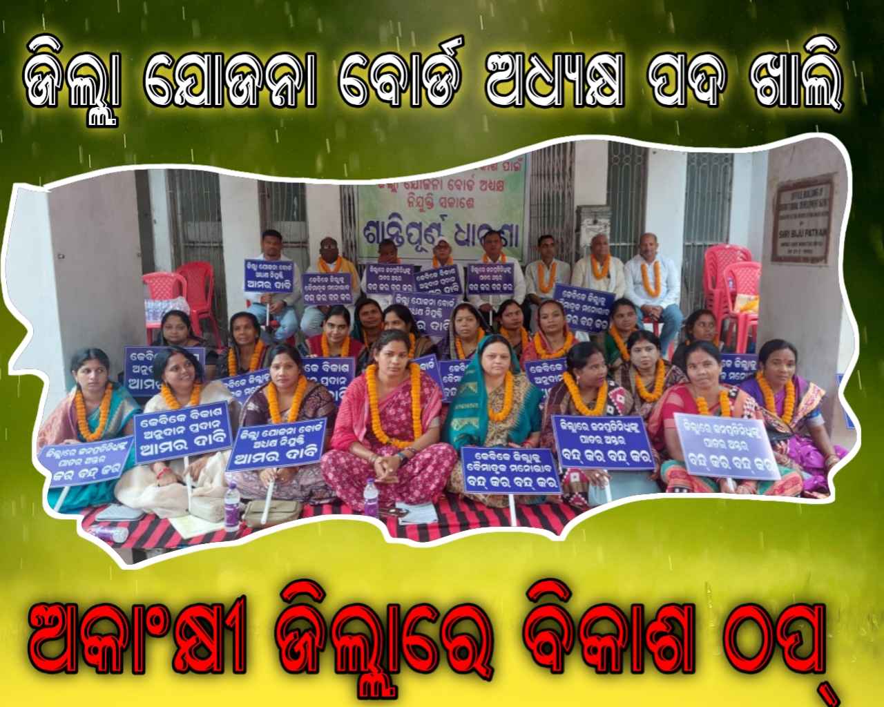 ଧାରଣାରେ ବସିଛନ୍ତି । ଫଳରେ ଜିଲ୍ଲାପରିଷଦର ମୁଖ୍ୟ ନିର୍ବାହୀଅଧିକାରୀଙ୍କ ସହ ଅନ୍ୟାନ୍ୟ କର୍ମଚାରୀମାନେ କାର୍ଯ୍ୟାଳୟକୁ ଯାଇ ନପାରି ଫେରିଯାଇଥିବା ଦେଖାଯାଇଥିଲା । ରିପୋର୍ଟ ଲେଖାଯିବା ପର୍ଯ୍ୟନ୍ତ ପ୍ରଶାସନ ପକ୍ଷରୁ କେହି ମଧ୍ୟ ଆଲୋଚନାକୁ ଆସିନଥିବାରୁ କାର୍ଯ୍ୟାଳୟରେ ତାଲା ପଡିଛି ଓ ଜିଲ୍ଲାପରିଷଦମାନେ ଧାରଣାରେ ବସିରହିଛନ୍ତି । ଜିଲ୍ଲାପରିଷଦର ଅଧ୍ୟକ୍ଷା ଦେବକୀ ସାହୁ ଅଭିଯୋଗ କରିଛନ୍ତି ଯେ,ଗତ ଗୋଟିଏ ବର୍ଷରୁ ଅଧିକ ସମୟ ହେଲା ଜିଲ୍ଲାର ଯୋଜନା ବୋର୍ଡ ଅଧ୍ୟକ୍ଷ ପଦ ଖାଲି ପଡିଛି । ଫଳରେ ଜିଲ୍ଲାର