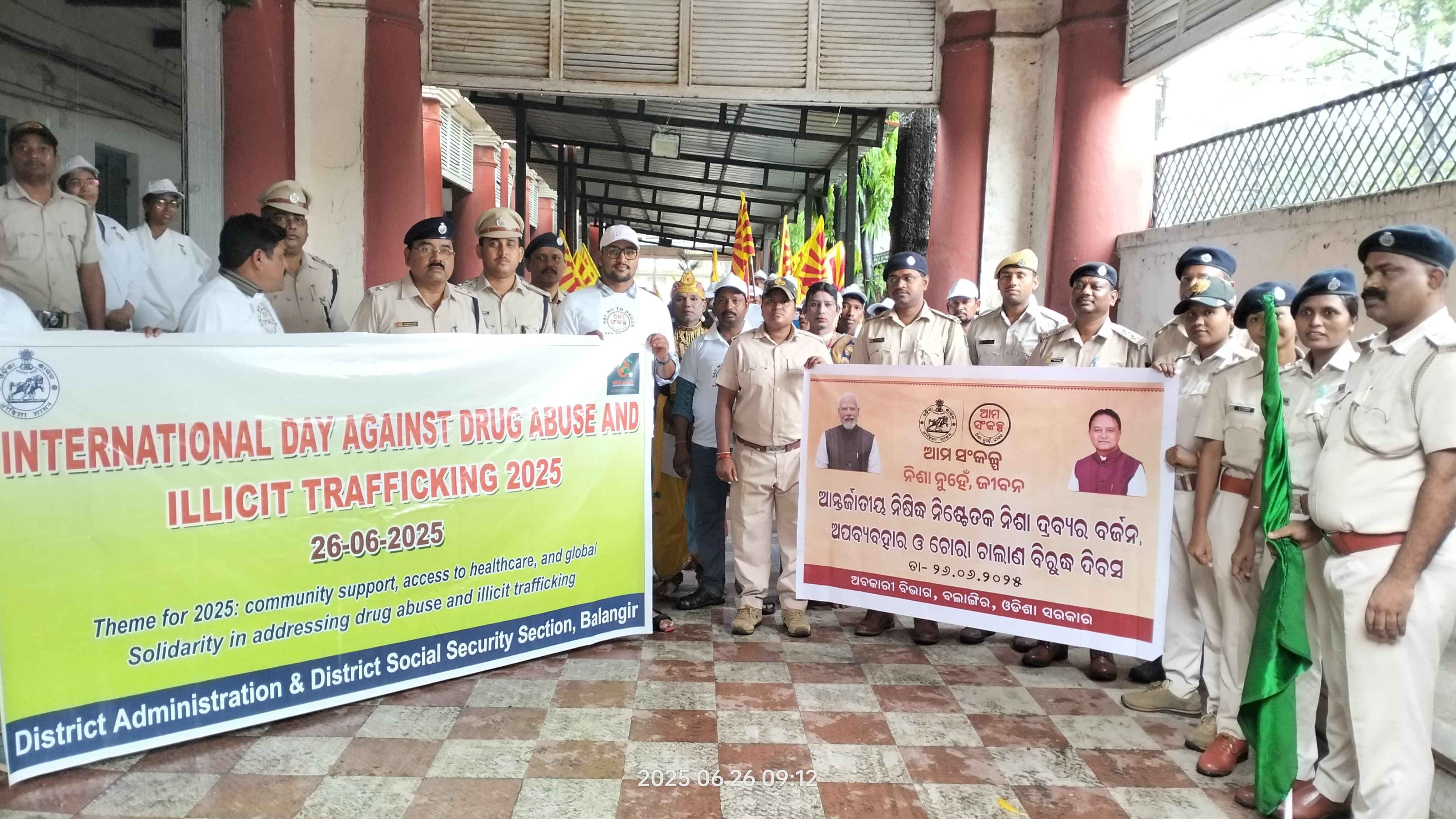 ବଲାଙ୍ଗିର(ପ୍ରେରଣା ଖବର):ଅନ୍ତର୍ଜାତୀୟ ନିଶା ଦ୍ରବ୍ୟର ଅପବ୍ୟବହାର ଓ ଅବୈଧଚଳନ ଦିବସରେ ବଲାଙ୍ଗିର ଜିଲ୍ଲା ଅବକାରୀ ବିଭାଗ ଓ ଜିଲ୍ଲା ସାମାଜିକ ସୁରକ୍ଷା ବିଭାଗତରଫରୁ ଏକ ସଚେତନତା ପଦଯାତ୍ରା ଅନୁଷ୍ଠିତ ହୋଇଥିଲା। ଏହି ପଦଯାତ୍ରାରେ ପୂଜ୍ୟପିତା ବ୍ରହ୍ମ କୁମାରୀ ଈଶ୍ୱରୀୟ ବିଶ୍ୱବିଦ୍ୟାଳୟର ସଦସ୍ୟଗଣ ଓ ପିପୁଲସ ଫୋରୋମ ଦ୍ବାରା ପରିଚାଳିତ ବଲାଙ୍ଗିର ନିଶା ନିବାରଣ କେନ୍ଦ୍ରର ପରିଚାଳକ ଓ