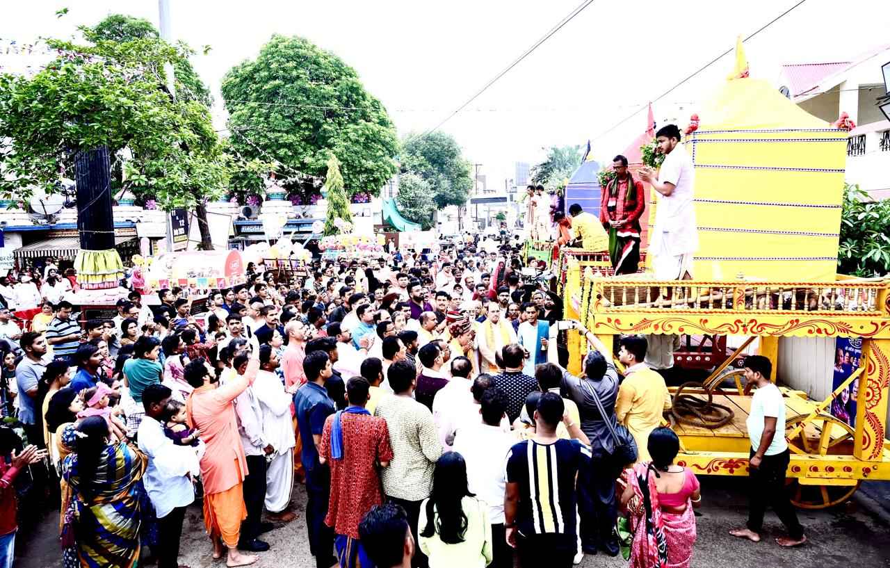 ରାୟପୁର: ରାୟପୁରର ଗାୟତ୍ରୀ ନଗରରେ ଥିବା ଛତିଶଗଡ଼ର ସର୍ବବୃହତ ଜଗନ୍ନାଥ ମନ୍ଦିରଠାରେ ପବିତ୍ର ବାହୁଡ଼ା ଯାତ୍ରା ପ୍ରବଳ ଆନନ୍ଦ, ଉତ୍ସାହ, ଉଲ୍ଲାସ ଓ ଉଦ୍ଦୀପନା ମଧ୍ୟରେ ଅନୁଷ୍ଠିତ ହୋଇଯାଇଛି। ଏହି ଉପଲକ୍ଷେ ଚତୁର୍ଦ୍ଧାମୂର୍ତ୍ତି ବିରାଜମାନ କରୁଥିବା ମନ୍ଦିରର ବେସମେଣ୍ଟସ୍ଥିତ ମାଉସୀ ମା' ଘରର ଆଡ଼ପ ମଣ୍ଡପ ସାମ୍ନାରେ ସ୍ବତନ୍ତ୍ର ପୂଜାର୍ଚ୍ଚନା ଅପରାହ୍ନ ସୁଦ୍ଧା ସମ୍ପନ୍ନ କରାଯାଇଥିଲା। ପାଞ୍ଚଟା ବେଳେ ଚାରି ଠାକୁରଙ୍କୁ ବାଦ୍ୟ, କୀର୍ତ୍ତନର ତାଳେ ତାଳେ ଧାଡ଼ି ପହଣ୍ଡି କରାଯାଇ ମନ୍ଦିର ସମ୍ମୁଖରେ ଦଣ୍ଡାୟମାନ ସୁନ୍ଦର, ସୁଶୋଭିତ ଓ ରଙ୍ଗବେରଙ୍ଗ କପଡ଼ାରେ ସୁସଜ୍ଜିତ ତିନି ରଥ ଉପରକୁ ନିଆଯାଇଥିଲା। ଏହାପରେ ବିଶିଷ୍ଟ ଅତିଥି ବୃନ୍ଦ ଛତିଶଗଡ ବିଧାନ ସଭାର ବିରୋଧୀ ଦଳର ନେତା ଚରଣ ଦାସ ମହନ୍ତ , ଭାଜପା ନେତା ରମେଶ ଠାକୁର , ରାୟପୁର ମୁନିସିପାଲିଟିର ସଭାପତି ସୂର୍ଯ୍ୟକାନ୍ତ ରାଠୋଡ଼ ଏବଂ ହରିଭୂମିର ମୁଖ୍ୟ ସମ୍ପାଦକ ହିମାଂଶୁ ଦ୍ବିବେଦୀ ପ୍ରମୁଖ ପାରମ୍ପରିକ ଛେରା ପହଁରା କାର୍ଯ୍ୟ ସମ୍ପନ୍ନ କରିଥିଲେ। ମନ୍ଦିରର ପ୍ରତିଷ୍ଠାତା ଏବଂ ସ୍ଥାନୀୟ ବିଧାୟକ ପୁରନ୍ଦର ମିଶ୍ର ସେମାନଙ୍କୁ ଏହି କାର୍ଯ୍ୟରେ ସହଯୋଗ କରିଥିଲେ।