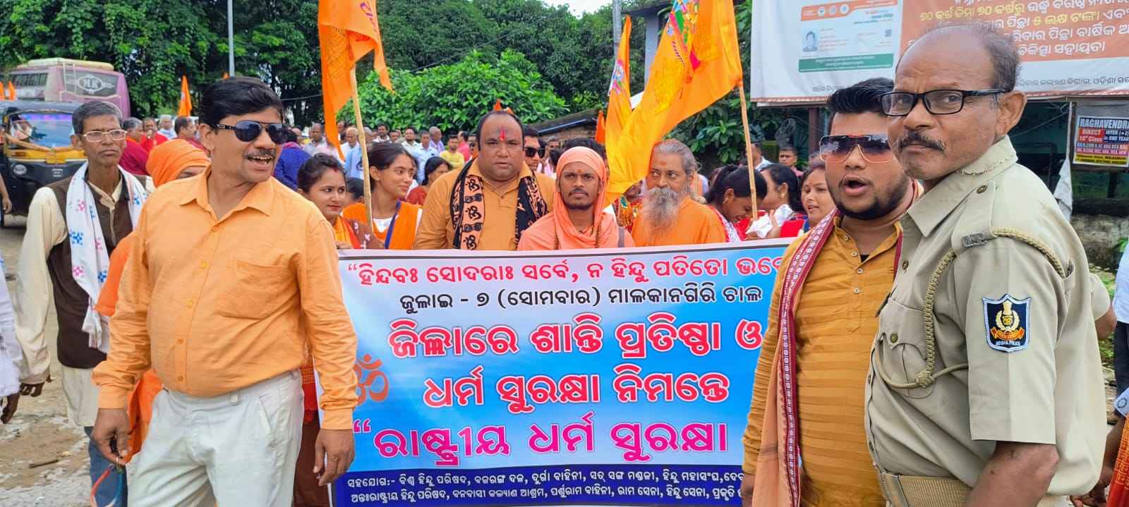 ମାଲକାନଗିରି ସହରରେ ହିନ୍ଦୁ ଧର୍ମ ସୁରକ୍ଷା ପାଇଁ ହିନ୍ଦୁ ମହାସଂଘ, ବିଶ୍ବହିନ୍ଦୁ ପରିଷଦ, ଭବାନୀ ବାହିନୀ, ବନବାସୀ କଲ୍ୟାଣ ଆଶ୍ରମ ସହ ଅନ୍ୟାନ୍ୟ ହିନ୍ଦୁ ସଂଗଠନ ମିଳିତଭାବେ ଏକ ଭବ୍ୟ ଶୋଭାଯାତ୍ରା ର ଆୟୋଜନ କରିଥିଲେ। ରାଷ୍ଟ୍ରୀୟ ଧର୍ମ ସୁରକ୍ଷା ମଞ୍ଚ ଆବାହକ ରାମକୃଷ୍ଣ ଚୌଧୁରୀ, ଲକ୍ଷ୍ମୀକାନ୍ତ ତ୍ରିପାଠୀ, ହିନ୍ଦୁ ମହାସଂଘ ପ୍ରମୁଖ ସୂର୍ଯ୍ୟବଂଶୀ ଜୟନ୍ତ, ମାର୍ଗଦର୍ଶକ ସୌଭାଗ୍ୟ ବାବା, ବିଶ୍ବମିତ୍ରାନନ୍ଦ ଗିରି, ହିନ୍ଦୁ ମହାସଂଘ ଅବିଭକ୍ତ କୋରାପୁଟ ଜିଲ୍ଲା ସଭାପତି ଜଗନ୍ନାଥ ଶତପଥୀ, ରଜନୀ ନାୟକ, ମନୋଜ ମହାଙ୍କୁଡ, ବିଶ୍ବହିନ୍ଦୁ ପରିଷଦ ଜିଲ୍ଲା ସଭାପତି ଜିଲ୍ଲା ସଭାପତି ନୀଳମଣି ପ୍ରଧାନ, ଶିବପାଦ ମିର୍ଧା ପ୍ରମୁଖ ଉପସ୍ଥିତ ଥିଲେ। ହଜାର ରୁ ଉର୍ଦ୍ଧ୍ବ ହିନ୍ଦୁ ସଂଗଠନର କାର୍ଯ୍ୟକର୍ତ୍ତା ଅନ୍ୟାୟ ଧର୍ମାନ୍ତରୀକରଣ ବିରୋଧ ରେ ଜିଲ୍ଲାପାଳଙ୍କ କାର୍ଯ୍ୟାଳୟ କୁ ଯାଇ ଏକ ଦାବିପତ୍ର ପ୍ରଦାନ କରିଛନ୍ତି।
