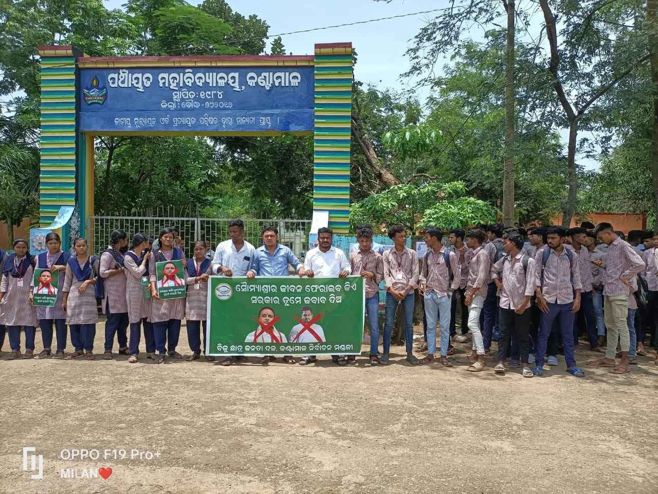 କଣ୍ଟାମାଳ(ଜୟ କୁମାର ମହାରଣା): ବାଲେଶ୍ୱର ଫକୀର ମୋହନ କଲେଜର ଛାତ୍ରୀ ସୌମ୍ୟାଶ୍ରୀଙ୍କ ମୃତ୍ୟୁ ଘଟଣାରେ ଛାତ୍ରୀଙ୍କ ପରିବାରକୁ ନ୍ୟାୟ ଦାବି ନେଇ କଣ୍ଟାମାଳ ବିଜୁ ଛାତ୍ର ଜନତା ଦଳ ସଭାପତି ଉଦିତ ପ୍ରତାପ ଭୋଇଙ୍କ ନେତୃତ୍ୱରେ କଣ୍ଟାମାଳ କଲେଜ ସମ୍ମୁଖରେରେ ବିକ୍ଷୋଭ ପ୍ରଦର୍ଶନ କରା ଯିବା ସହ ମୁଖ୍ୟମନ୍ତ୍ରୀ ଓ ଉଚ୍ଚ ଶିକ୍ଷାମନ୍ତ୍ରୀଙ୍କ ଇସ୍ତପା ଦାବି କରିଛି କଣ୍ଟାମାଳ ବିଜୁ ଛାତ୍ର ଜନତା ଦଳ l କଲେଜ ଫାଟକ ସମ୍ମୁଖରେ ଶହଶହ ଛାତ୍ରଛାତ୍ରୀ ଏକାଠି ହୋଇ ନାରାବାଜି କରିବା ସହ ଏଇ ସରକାର ନାରୀଙ୍କ ସୁରକ୍ଷା ଦେବାରେ ଫେଲ ମାରିଛି । ଏହା ଏକ ମିଛୁଆ ସରକାର ବୋଲି କହିଥିଲେ ଓ ତୁରନ୍ତ ମୁଖ୍ୟମନ୍ତ୍ରୀ ଓ ଉଚ୍ଚଶିକ୍ଷା ମନ୍ତ୍ରୀଙ୍କ ଇସ୍ତପା ଦାବି କରିଛି ବିଜୁ ଛାତ୍ର ଜନତା ଦଳ l ଏହି ବିକ୍ଷୋଭରେ ବିଜୁ ଛାତ୍ର ଜନତା ଦଳ ସଭ୍ୟ ଘନଶ୍ୟାମ ଦନ୍ତା ସମେତ ଅନ୍ୟ ଛାତ୍ରଛାତ୍ରୀ ମାନେ ଉପସ୍ଥିତ ଥିଲେ ।