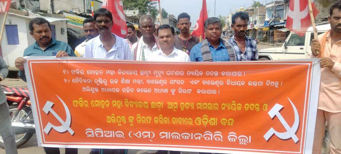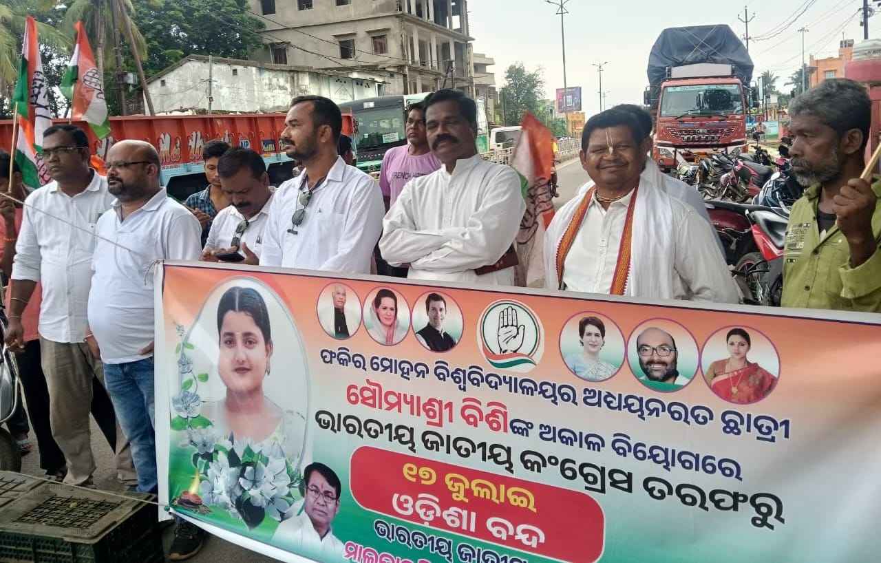 ମାଲକାନଗିରି(କେଶବ ଚନ୍ଦ୍ର ନାୟକ): ବାଲେଶ୍ୱର ଏଫଏମ୍ କଲେଜ ଛାତ୍ରୀ ସୌମ୍ୟାଶ୍ରୀ ବିଶିଙ୍କ ମୃତ୍ୟୁ ଘଟଣାକୁ ନିନ୍ଦା କରି ମୃତକଙ୍କ ପରିବାରକୁ ନ୍ୟାୟ, କ୍ଷତିପୂରଣ ଦାବି କରିଛି କଂଗ୍ରେସ ଦଳ। ସମଗ୍ର ମାଲକାନଗିରି ଜିଲ୍ଲାର ବନ୍ଦ ପ୍ରଭାବ ପଡିଛି । ଗଡ଼ୁନି ବସ୍, ଟ୍ରକ୍ ଏବଂ ଅନ୍ୟାନ୍ୟ ଗାଡ଼ି। ବନ୍ଦ ରହିଛି ଦୋକାନ ବଜାର, ପେଟ୍ରୋଲ ପମ୍ପ, ସ୍କୁଲ,କଲେଜ । ବିଭିନ୍ନ ଛକରେ କଂଗ୍ରେସ କର୍ମୀମାନେ ସକାଳୁ ସକାଳୁ ପିକେଟିଂ କରିବା ସହ ପ୍ରତିବାଦ କରୁଛନ୍ତି । ସୌମ୍ୟାଶ୍ରୀଙ୍କୁ ନ୍ୟାୟ ଦେବା ପାଇଁ ଦାବି ସହ ଅଭିଯୁକ୍ତଙ୍କ ବିରୋଧରେ ଦୃଢ଼ କାର୍ଯ୍ୟାନୁଷ୍ଠାନ ଦାବି କରିଛନ୍ତି । ଏଥିରେ ମାଲକାନଗିରି ନଗର କଂଗ୍ରେସ ଓ ଜିଲ୍ଲା କଂଗ୍ରେସ ସମେତ ସିପିଆଇ, ସିପିଏମ୍ ଆଦି ଦଳ ସାମିଲ୍ ହୋଇଛନ୍ତି ।
