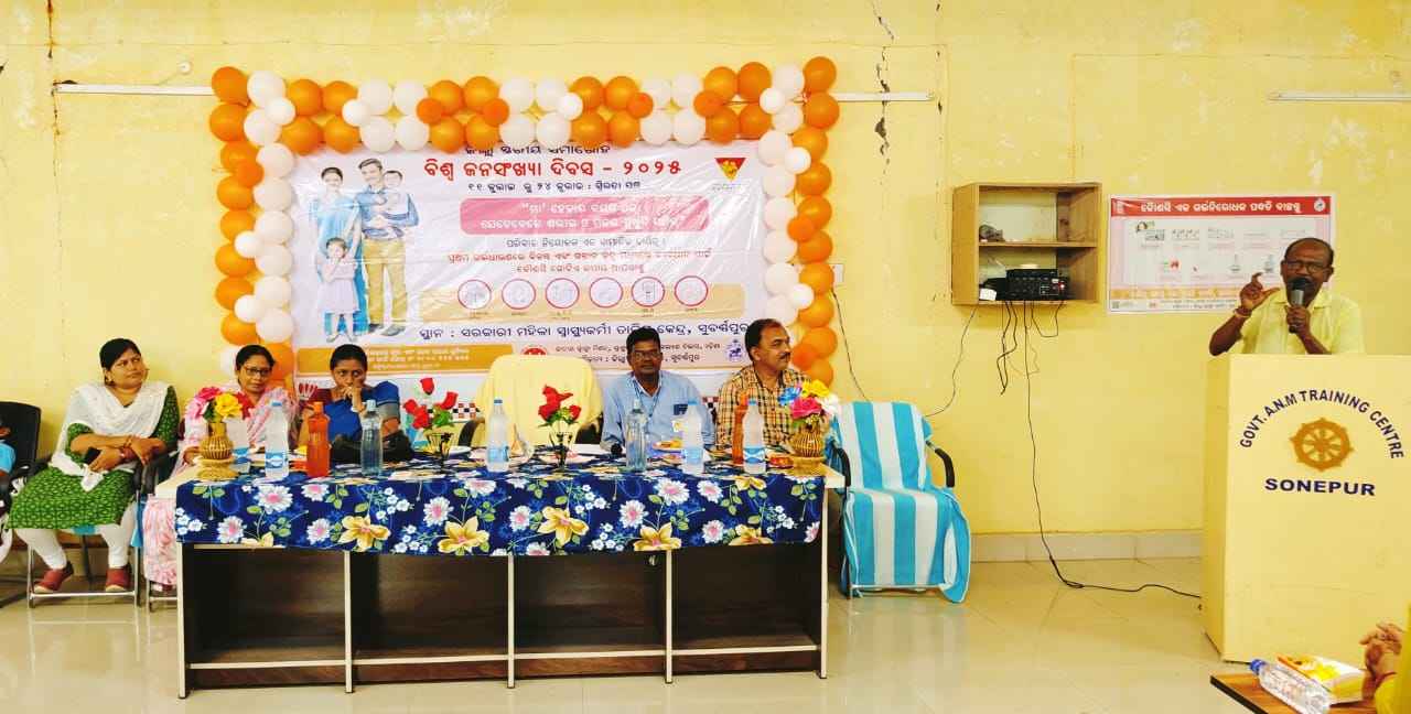 ସ୍ୱାସ୍ଥ୍ୟ ମିଶନ ଜିଲ୍ଲା କାର୍ଯ୍ୟକ୍ରମ ପରିଚାଳକ ରୂପକ କୁମାର ମହାପାତ୍ର, ଅଧୀକ୍ଷକ ସରକାରୀ ମହିଳା ସ୍ୱାସ୍ଥ୍ୟକର୍ମୀ ତାଲିମ କେନ୍ଦ୍ର ସୁବର୍ଣ୍ଣପୁର ସ୍ମିତାଶ୍ରୀ ନାୟକ ପ୍ରମୁଖ ସମ୍ମାନୀତ ଅତିଥି ଭାବରେ ଉପସ୍ଥିତ ଥିଲେ। ଉପସ୍ଥିତ ଅତିଥି ବୃନ୍ଦ ଉକ୍ତ ଦିବସର ମହତ୍ୱ ତଥା ଜନ ସଂଖ୍ୟା ବୃଦ୍ଧି ର କାରଣ ଓ ନିରାକରଣ ଉପରେ ବିଷଦ ଭାବରେ ଆଲୋଚନା କରି ସମସ୍ତଙ୍କୁ ସଚେତନତା ବାର୍ତା ମାଧ୍ୟମରେ ଜନସଂଖ୍ୟା ରୋକିବା ପାଇଁ ଆହ୍ୱାନ ଦେଇ, ପରିବାର ନିୟୋଜନ ଏକ ସାମାଜିକ ଦାୟିତ୍ୱ, ପ୍ରଥମ ଗର୍ଭଧାରଣରେ ବିଳମ୍ବ ଓ ସନ୍ତାନ ଜନ୍ମ ମଧ୍ୟରେ ବ୍ୟବଧାନ ପାଇଁ କୋୖଣସି ଗୋଟିଏ ଉପାୟ ଆପଣାନ୍ତୁ ଏବଂ ଏକ ସୁସ୍ଥ ସୁନ୍ଦର ସୁଖୀ ପରିବାର ଗଠନ କରିବାରେ ସହାୟକ ହୋଇ ପାରିବା ଉପରେ ଗୁରୁତ୍ୱାରୋପ କରିଥିଲେ।
