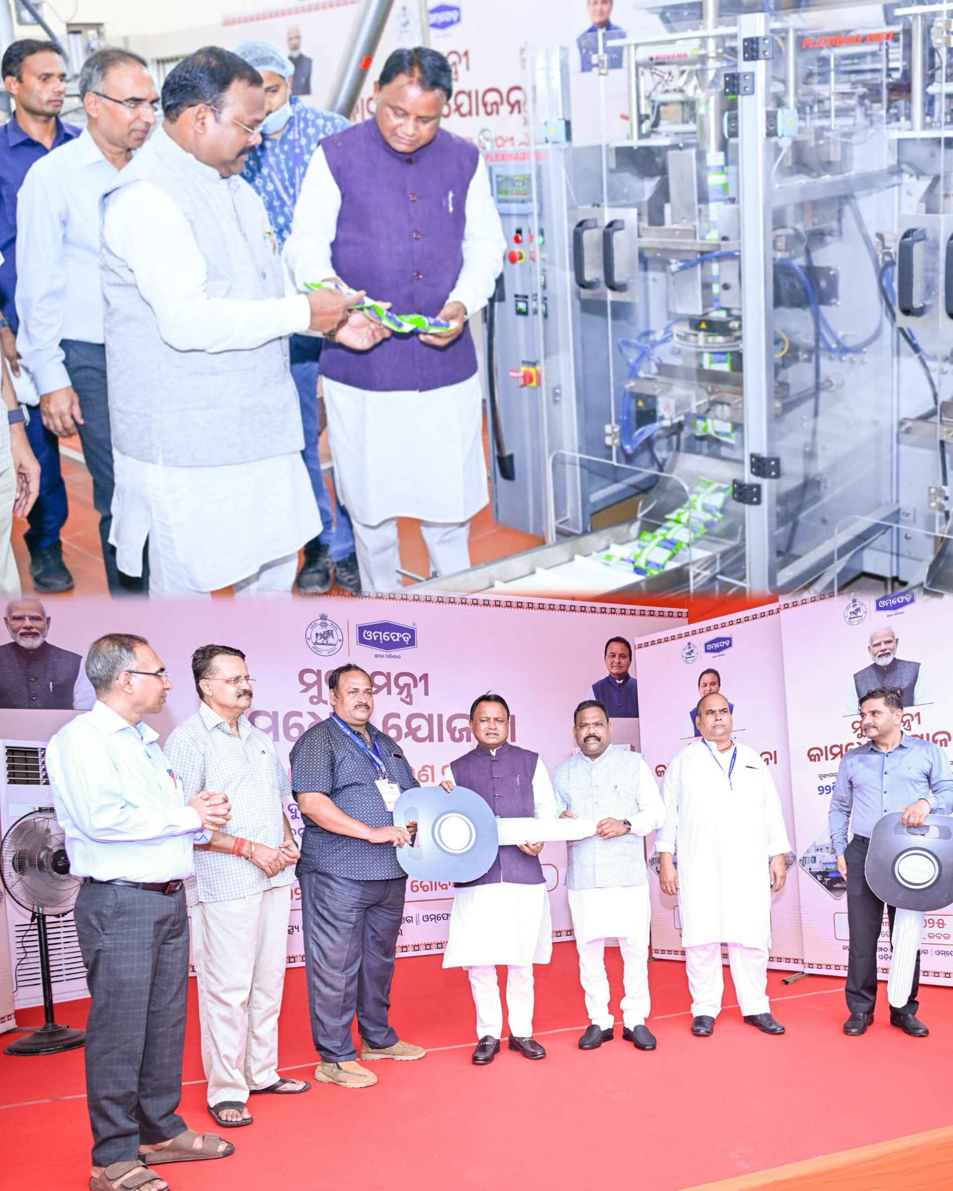 କଟକ(ପ୍ରେରଣା ଖବର): କଟକ ସ୍ଥିତ ଓମଫେଡ କେନ୍ଦ୍ର ଠାରେ ନୂତନ ଦୁଗ୍ଧ ଟ୍ୟାଙ୍କର ଏବଂ ମିଲ୍କ ପାଉଡର ପ୍ୟାକିଙ୍ଗ ମେସିନ ଗୁଡିକର ଉଦଘାଟନ କରୁଛନ୍ତି ମୁଖ୍ୟମନ୍ତ୍ରୀ ଶ୍ରୀ ମୋହନ ଚରଣ ମାଝୀ