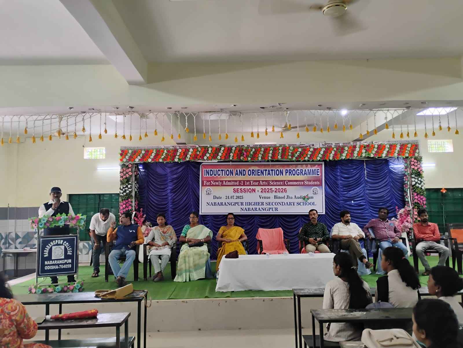 ନବରଙ୍ଗପୁର ମହାବିଦ୍ୟାଳୟ ପରିସରରେ ଥିବା ବିନୋଦ ଝା ପ୍ରେକ୍ଷାଳୟ ଠାରେ ମହାବିଦ୍ୟାଳୟ କୁ ଆଜି ପ୍ରଥମ କରି ଆସିଥିବା ଯୁକ୍ତ ଦୁଇ ପ୍ରଥମ ବର୍ଷ ଛାତ୍ର ଛାତ୍ରୀ ମାନଙ୍କ ପାଇଁ ଏକ ସ୍ୱାଗତ ତଥା ପରାମର୍ଶ ଉତ୍ସବର ଆୟୋଜନ କରାଯାଇଥିଲା। ମହାବିଦ୍ୟାଳୟ ର ଅଧ୍ୟକ୍ଷ ଶ୍ରୀ ଡି. ଗୋବିନ୍ଦା ରାଓ ସମାରୋହ ର ଉଦଘାଟନ କରି ଅନୁଷ୍ଠାନ ର ପରିଚୟ ପ୍ରଦାନ ପୂର୍ବକ ଏହାର ଅତୀତ, ବର୍ତ୍ତମାନ ଓ ଭବିଷ୍ୟତ ଉପରେ ଆଲୋକପାତ କରିଥିଲେ। ପ୍ରଧ୍ୟାପିକା ଶ୍ରୀମତି ସଙ୍ଗୀତା ତ୍ରିପାଠୀ, ଅଧ୍ୟାପକ ଶ୍ରୀ ଦିଲ୍ଲୀପ କୁମାର ହୋତା, ଅଧ୍ୟାପକ ଶ୍ରୀ ମନୋରଞ୍ଜନ ଖୁରା,ଅଧ୍ୟାପିକା ସୁନୟନା ସାମୋସି ଅନୁଷ୍ଠାନ ବିଷୟରେ ସ୍ମୃତି ଚାରଣ କରିବା ସହିତ ଯଥାକ୍ରମେ ବିଦ୍ୟାର୍ଥୀ ଙ୍କ ଆବଶ୍ୟକ ବିଷୟ ଗୁଡିକ ଉପରେ ଆଲୋଚନା କରିଥିଲେ। ଏହି ମର୍ମରେ ପାଠ୍ୟ ଖସଡ଼ା, ୟୁନିଫର୍ମ, କ୍ଲାସ ସମୟ, ଗ୍ରନ୍ଥାଗାର ର ବ୍ୟବହାର, ଛାତ୍ର ପୋର୍ଟାଲ ତଥା ଶିକ୍ଷା ଜ୍ୟୋତି ର ଉପଯୋଗୀତା,ଶୃଙ୍ଖଳା ରକ୍ଷା, ଛାତ୍ରୀ ନିର୍ଯାତନା କମିଟି, ରାଗିଂ କମିଟି ଆଦି ବିଷୟରେ ବକ୍ତା ମାନେ ବିଶଦ ଭାବରେ ବୁଝାଇଥିଲେ। ଅଧ୍ୟାପକ ଶ୍ରୀ ଶମ୍ଭୁ ପ୍ରସାଦ ହୋତ୍ତା ସମଗ୍ର କାର୍ଯ୍ୟକ୍ରମ ର ସଂଯୋଜନା କରିବା ସହିତ ଉତ୍ସବର ପ୍ରଥମ ପର୍ଯ୍ୟାୟରେ ଛାତ୍ର ଛାତ୍ରୀ ଙ୍କୁ ଉତ୍ସବ ର ଉପାଦେୟତା ଉପରେ ସୂଚନା ଦେଇଥିଲେ। ନବରଙ୍ଗପୁର ଭଳି ଏକ ଉପାନ୍ତ ଅଞ୍ଚଳରେ ଉଚ୍ଚଶିକ୍ଷାର ପ୍ରସାର ନିମନ୍ତେ ତତ୍କାଳିନ ପ୍ରଶାସନ ଓ ବୁଦ୍ଧିଜୀବୀ ମାନଙ୍କର ପ୍ରୟାସ ତଥା ଅକୁଣ୍ଠ ଉଦ୍ୟମ ରେ ପ୍ରତିଷ୍ଠିତ ମହାବିଦ୍ୟାଳୟ ୫୫ ବର୍ଷର ଗୌରବମୟ ଇତିହାସ ସୃଷ୍ଟି କରିଛି। ଆଗାମୀ ଦିନରେ ଏହି ଉଚ୍ଚ ଶିକ୍ଷା ର ଯାତ୍ରାକୁ ଆହୁରି ଆଗକୁ ନେଇଯିବା ପାଇଁ ଛାତ୍ର ଛାତ୍ରୀ ଙ୍କୁ ଆହ୍ବାନ ଦିଆଯାଇଥିଲା। ଏହି ଉତ୍ସବ ରେ ସମସ୍ତ ଅଧ୍ୟାପକ, ଅଧ୍ୟାପିକା, କର୍ମଚାରୀଙ୍କ ସମେତ ଯୁକ୍ତ ଦୁଇ କଳା, ବିଜ୍ଞାନ ଓ ବାଣିଜ୍ୟର ଶତାଧିକ ଛାତ୍ର ଛାତ୍ରୀ ଅଂଶ ଗ୍ରହଣ କରିଥିଲେ