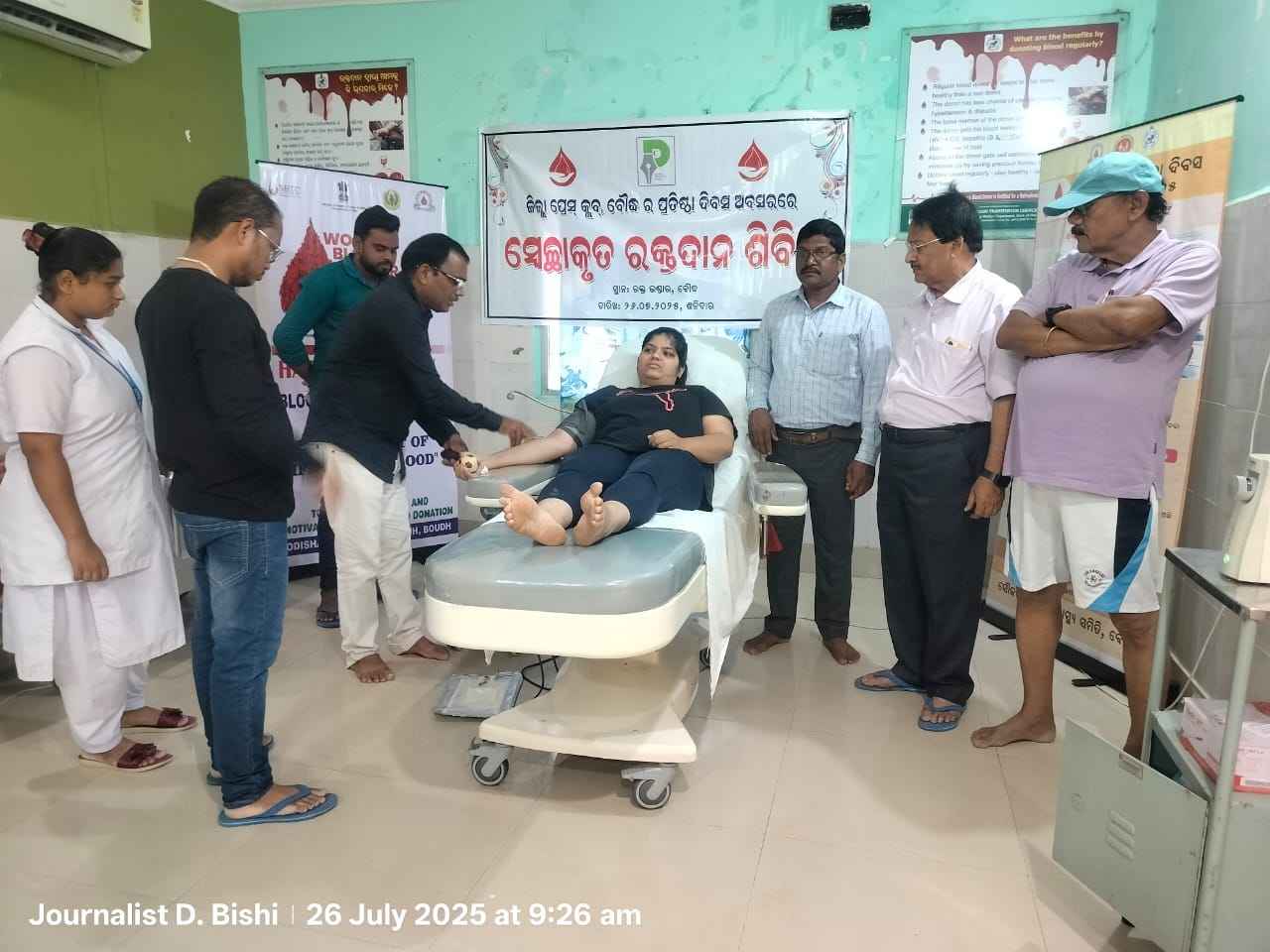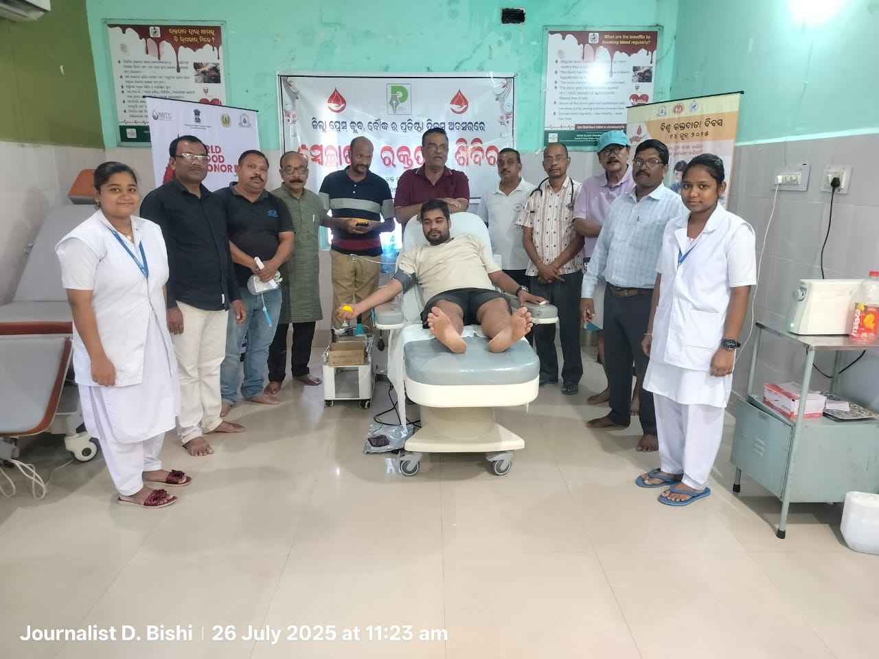 କରିବା ସହ ଏହାର ଶୁଭାରମ୍ଭ କରିଥିଲେ l ରକ୍ତ ଭଣ୍ଡାର ର ଡା.ହେମ୍ରମ ଓ ଷ୍ଟାଫ ଶିବିରରେ ଯୋଗଦେଇ ମୋଟ ୨୬ ୟୁନିଟ ରକ୍ତ ସଂଗ୍ରହ କରିଥିଲେ l ଜିଲ୍ଲା ପ୍ରେସ କ୍ଳବର ସଭାପତି ପ୍ରଦୋଷ କୁମାର ମିଶ୍ର, ସାଧାରଣ ସମ୍ପାଦକ ରଘୁନାଥ ଷଡ଼ଙ୍ଗୀ, ସହ ସମ୍ପାଦକ ଦୁର୍ଯ୍ୟଧନ ବିଶି, ସଦସ୍ୟ ଶମ୍ଭୁ ପ୍ରସାଦ