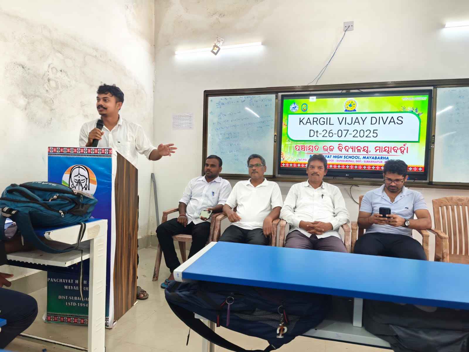 ଡୁଙ୍ଗୁରିପାଲି, ତା ୨୬/୭(ପ୍ରେରଣା ଖବର): ସୁବର୍ଣ୍ଣପୁର ଜିଲ୍ଲା ଡୁଙ୍ଗୁରିପାଲି ବ୍ଲକ୍ ଅନ୍ତର୍ଗତ ପଞ୍ଚାୟତ ଉଚ୍ଚ ବିଦ୍ୟାଳୟ ମାୟାବର୍ହ୍। ଠାରେ ବିଦ୍ୟାଳୟର ପ୍ରଧାନ ଶିକ୍ଷକ ଡ. ରବିଚନ୍ଦ୍ର ପଶାୟତଙ୍କ ସଭାପତିତ୍ବରେ ୨୬ ବର୍ଷ ପୂର୍ବେ ଭାରତର ପାକିସ୍ତାନ ଉପରେ ବିଜୟର ସ୍ମୃତିଚାରଣ ପୂର୍ବକ "କାର୍ଗିଲ ବିଜୟ ଦିବସ" କାର୍ଯ୍ୟକ୍ରମ ଅନୁଷ୍ଠିତ ହୋଇଯାଇଛି। ଆଜି ପ୍ରାରମ୍ଭରେ ବିଦ୍ୟାଳୟର ଛାତ୍ର ଛାତ୍ରୀ , ଶିକ୍ଷକ ତଥା ସମସ୍ତ କର୍ମଚାରୀ ଏକତ୍ରିତ ହୋଇ ସହିଦ ମାନଙ୍କ ସ୍ମୃତିରେ ଏକ ମିନିଟ ନୀରବ ପ୍ରାର୍ଥନା କରିଥିଲେ । ଶେଷରେ ବିଦ୍ୟାଳୟ ପରିସରରେ ସହିଦ ମାନଙ୍କ ସ୍ମୃତିରେ ଛାତ୍ର ଛାତ୍ରୀମାନେ ବିଭିନ୍ନ ଗଛ ଲଗାଇଥିଲେ ଓ ତାହାର ଯତ୍ନ ନେବା ପାଇଁ ପ୍ରତିଜ୍ଞା କରିଥିଲେ। ବରିଷ୍ଠ ଶିକ୍ଷକ ଦୀନବନ୍ଧୁ ପ୍ରଧାନ କାର୍ଯ୍ୟକ୍ରମକୁ ସଂଯୋଜନା କରିବା ସହ ସହିଦ ସୈନିକ ମାନଙ୍କ ବଳିଦାନ ଯୋଗୁ ଆଜି ଅଖଣ୍ଡ ଭାରତରେ ଶାନ୍ତିରେ ବାସ କରିପାରୁଛୁ ବୋଲି ମତବ୍ୟକ୍ତ କରିଥିଲେ। । ଖେଳ ଶିକ୍ଷକ ଚିନ୍ମୟ କୁମାର ଦାସ ଛାତ୍ର ଛାତ୍ରୀ ମାନଙ୍କୁ ଗୀତ ମାଧ୍ୟମରେ ସହିଦ ମାନଙ୍କୁ ଶ୍ରଦ୍ଧାଞ୍ଜଳୀ ପ୍ରଦାନ କରିଥିଲେ। ଏହି ଅବସରରେ ଆଞ୍ଚଳିକ ଉଚ୍ଚ ବିଦ୍ୟାଳୟ ସିଂହିଯୁବାର ଗଣିତ ଶିକ୍ଷକ ସମ୍ମାନିତ ଅତିଥି ଭାବରେ ଯୋଗଦାନ କରି ସୈନିକ ମାନଙ୍କ ଅବଦାନ କୁ ଭୂୟସୀ ପ୍ରଶଂସା କରିଥିଲେ।ଅନ୍ୟତମ ଅତିଥି ଭାବରେ ସିଂହିଯୁବା ବିଦ୍ୟାଳୟ ର ଖେଳ ଶିକ୍ଷକ ମଲୟ ସାହୁ ଯୋଗଦାନ କରି ସହୀଦ ବିକ୍ରମ ବାତ୍ରାଙ୍କ ଲୋମହର୍ଷଣକାରୀ ତଥ୍ୟ ପ୍ରଦାନ କରିଥିଲେ। ଛାତ୍ର ଛାତ୍ରୀଙ୍କ ମଧ୍ୟରୁ ପୂଜାରଣି ଦୀପ, ଝରଣା ସାହୁ, ଶ୍ରୀମୟୀ, ଦିପ୍ତିଶିଖା, ଆୟୁଶୀ, ଆଭା, ବିକାଶ ପ୍ରଭୁତି ନିଜ ନିଜ ବକ୍ତବ୍ୟ ପ୍ରଦାନ କରିଥିଲେ। ଶେଷରେ ସଂସ୍କୃତ ଶିକ୍ଷକ ରାଜୁ ମେହେର ସମସ୍ତଙ୍କୁ ଧନ୍ୟବାଦ୍ ପ୍ରଦାନ କରିଥିଲେ ।