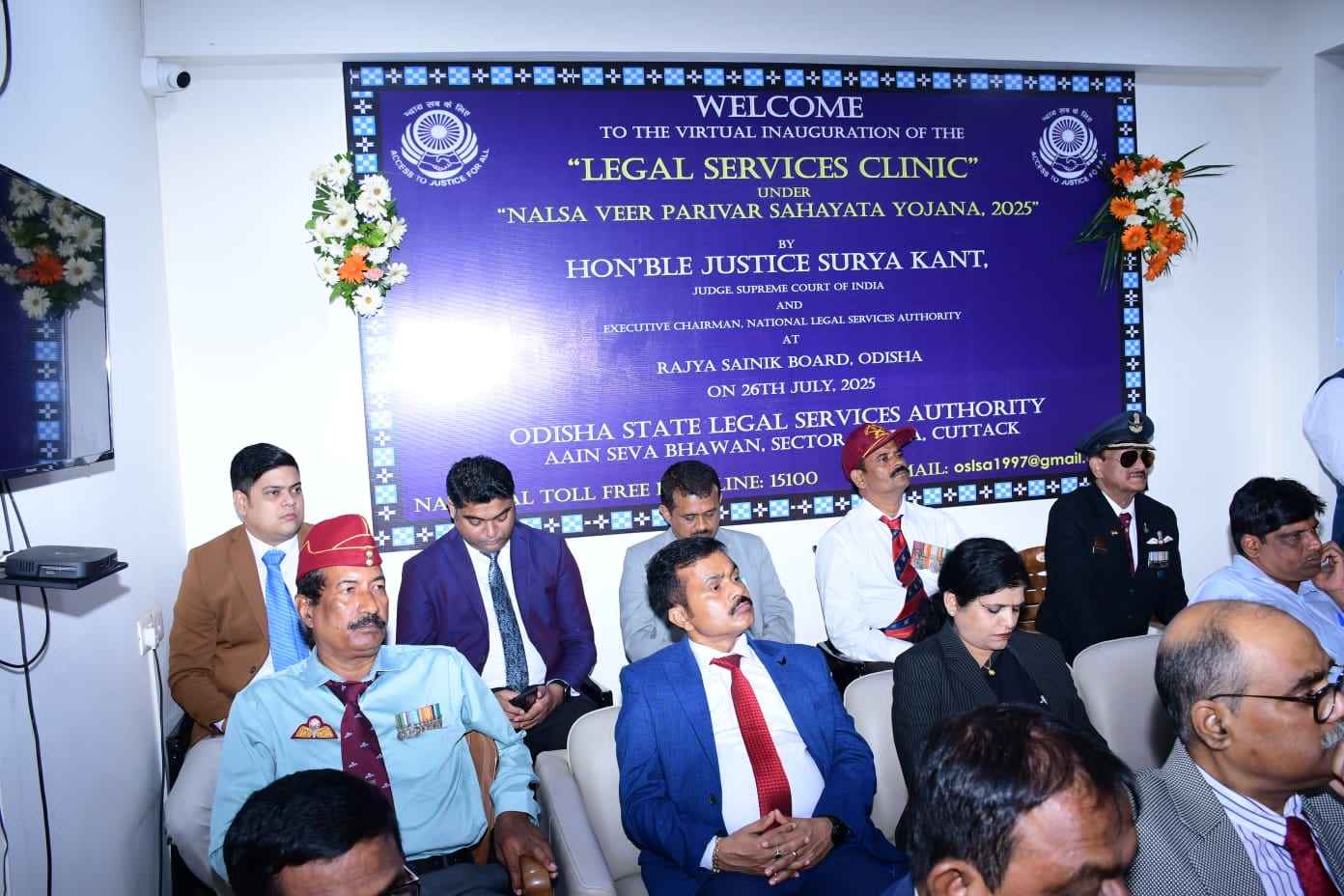 ଏୟାର ମାର୍ଶାଲ ଜେ. ଏନ୍. ବର୍ମା, ରାଜ୍ୟ ସୈନିକ ବୋର୍ଡ ସମ୍ପାଦକ ଶ୍ରୀ ଘନଶ୍ୟାମ ଓଝା, ଓଡ଼ିଶା ଆଇନ ସେବା ପ୍ରାଧିକରଣ ଉପସଚିବ ଶ୍ରୀ ଚିତ୍ତରଞ୍ଜନ ମିଶ୍ର, ଖୋର୍ଦ୍ଧା ଜିଲ୍ଲା ଆଇନ ସେବା ପ୍ରାଧିକରଣ ସଚିବ ଶ୍ରୀମତୀ ସଲୋମୀ ସାହୁ, ଓଡିଶା ଆଇନ ସେବା ପ୍ରାଧିକରଣ ଆସିଷ୍ଟାଣ୍ଟ ସେକ୍ରେଟାରୀ ବିବେକ ସାସମଲ ପ୍ରମୁଖ ଉପସ୍ଥିତ ଥିଲେ ।