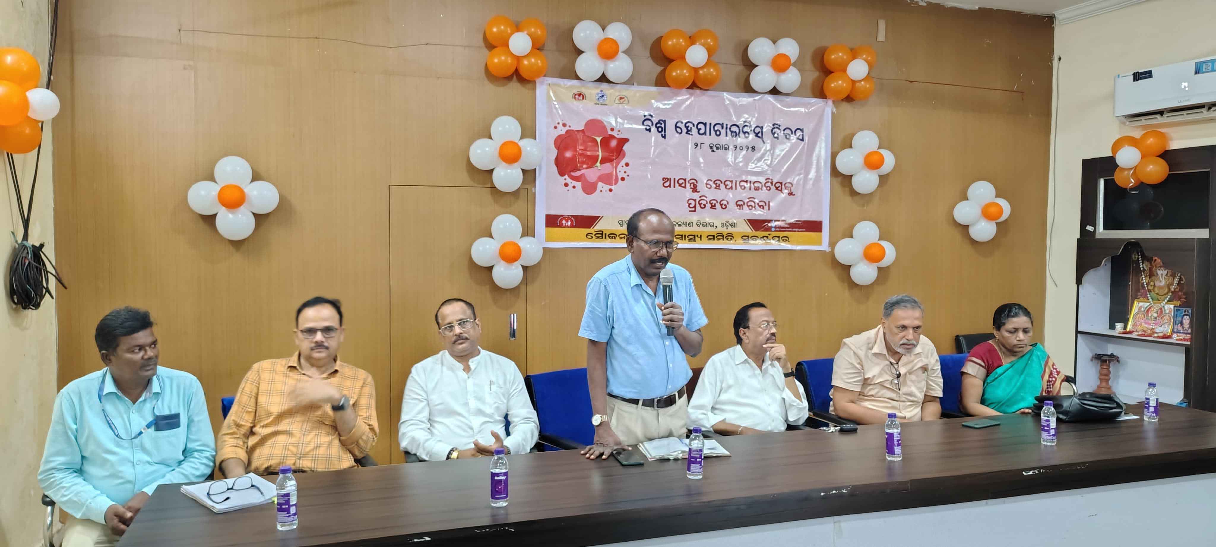 ସ୍ବାସ୍ଥ୍ୟ ଅଧିକାରୀ(TB) ଡ଼ା ପଦ୍ମହଂସା ଦୋରା, ଅତିରିକ୍ତ ଜିଲ୍ଲା ଜନସ୍ୱାସ୍ଥ୍ୟ ଅଧିକାରୀ (କୁଷ୍ଠ) ଡ଼ା ତ୍ରିବିକ୍ରମ ପାଣ୍ଡିଆ ଓ ଜିଲ୍ଲା କାର୍ଯ୍ୟକ୍ରମ ପରିଚାଳକ ରୂପକ କୁମାର ମହାପାତ୍ର ପ୍ରମୁଖ ସମ୍ମାନୀତ ଅତିଥି ଭାବରେ ଯୋଗଦେଇ ହେପାଟାଇଟିସ ରୋଗ ର ଲକ୍ଷଣ ଓ ଏହାର ପ୍ରତିକାର ଉପରେ ଜଣ ସାଧାରଣ ଙ୍କୁ ସଚେତନତା ମାଧ୍ୟମରେ ରୋକା ଯାଇ ପାରିବା ତେଣୁ ଆମେ ସମସ୍ତେ ସନ୍ତୁଳିତ ତଟକା ଖାଦ୍ୟ, ବିଶୁଦ୍ଧ ପାନୀୟ ଜଳ ବ୍ୟବହାର କରି ଉତ୍ତମ ଜୀବନ ଶୈଳୀ, ନିଶା ଯୁକ୍ତ ଖାଦ୍ୟ ରୁ ବିରତ ହୋଇ ଶାରୀରିକ ପରିଶ୍ରମ କରିବା , ଧୁମପାନ ରୁ ସମ୍ପୂର୍ଣ ମାତ୍ରା ରେ ମୁକ୍ତ ରହିବା, ଯୋଗ ଓ ଧ୍ୟାନ ଅଭ୍ୟାସ କରିବା ଉପରେ ସମସ୍ତଙ୍କୁ ସଚେତନତା ବାର୍ତା ପ୍ରଦାନ କରିବା ଓ ନିୟମିତ ପରୀକ୍ଷା କରାଇ ଡାକ୍ତରଙ୍କ ପରାମର୍ଶ କ୍ରମେ ଔଷଧ ସେବନ କରିବା ଉପରେ ପୁଙ୍ଖାନୁପୁଙ୍ଖ ଆଲୋଚନା କରି ସଚେତନତା ବାର୍ତ୍ତା ପ୍ରଦାନ କରି ଥିଲେ l ହେପାଟାଇଟିସ ରୋଗରୁ ମୃତ୍ୟୁହାରକୁ ନିହାତି ହ୍ରାସ କରି ହେପାଟାଇଟିସକୁ ପ୍ରତିହତ କରି ସୁସ୍ଥ ସୁନ୍ଦର ସମାଜ ଗଠନ ସମ୍ଭବ ହୋଇ ପାରିବା ଉପରେ ବୁଝାଇ ଥିଲେ ।