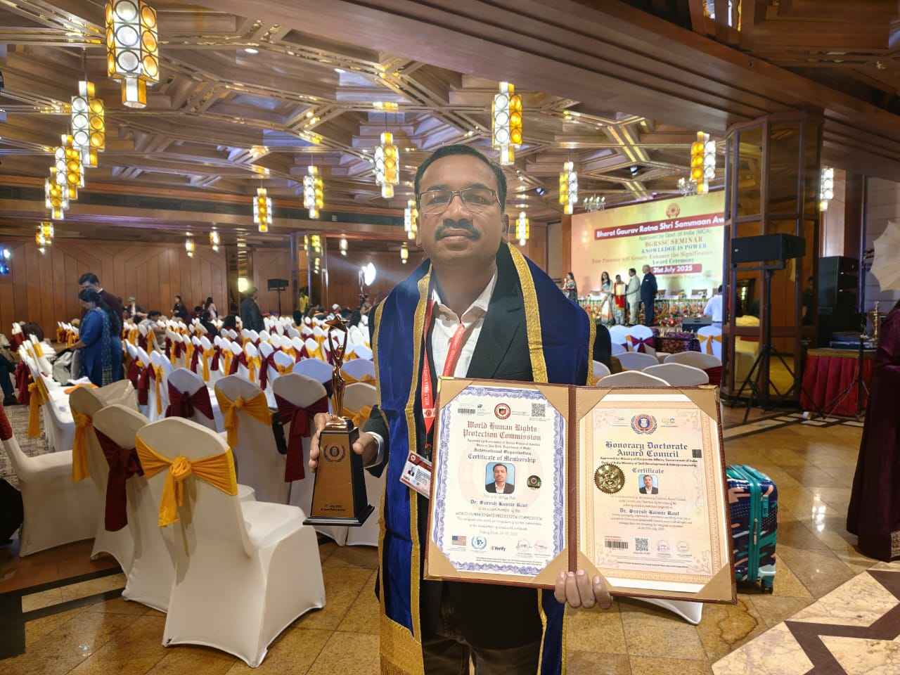 ପଲ୍ଲୀବିକାଶର ସମ୍ପାଦକ ତଥା ପ୍ରତିଷ୍ଠାତା ଶ୍ରୀଯୁକ୍ତ ସୁରେଶ କୁମାର ରାଉତ, ଚଲାନ ପଡାଙ୍କୁ ନୂଆଁ ଦିଲ୍ଲୀ ଚାଣକ୍ୟପୁରୀ ସ୍ଥିତ ଦି ଅଶୋକ ହୋଟେଲ ଠାରେ ସମାଜସେବା ପାଇଁ ଆନ୍ତର୍ଜାତୀୟ ସଂସ୍ଥା ୱାଲ୍ଡ ହ୍ୟୁମାନ ରାଇଟ ପ୍ରୋଟେକଶନ କମିଶନ ଓ ଅନୋରାରୀ ଡକ୍ଟରେଟ ଆୱାର୍ଡ କାଉନସିଲ ପକ୍ଷରୁ ସମ୍ମାନସୂଚକ ଡକ୍ଟରେଟ ପ୍ରଦାନ କରାଯାଇଛି । ଏହି ବର୍ଣ୍ଣାଢ଼୍ୟ ସମାରୋହରେ ଦେଶର ବିଭିନ୍ନ ପ୍ରାନ୍ତରୁ ଚୟନ ହୋଇଥିବା ପ୍ରତିଭାଙ୍କୁ ଡକ୍ଟରେଟ୍ ସମ୍ମାନରେ ସମ୍ମାନୀତ କରାଯାଇଛି। ଦେଶ ର ବିଭିନ୍ନ ସ୍ଥାନରୁ ଆସିଥିବା ସମସ୍ତ ୧୩୪ ପ୍ରତିଭା ମାନଙ୍କୁ ଅତିଥି ମାନେ ମାନପତ୍ର, ଟ୍ରଫି ଓ ଉପଢ଼ୌକନ ଦେଇ ସମ୍ମାନିତ କରିଥିଲେ।