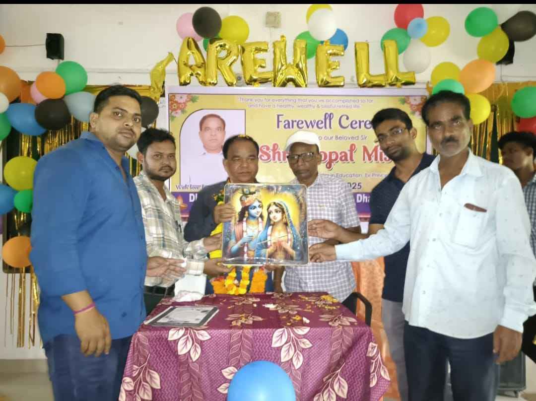 ସୁବର୍ଣ୍ଣପୁର ଜିଲ୍ଲା ଉଲୁଣ୍ଡା ବ୍ଲକ ଅନ୍ତର୍ଗତ ଧର୍ମଶାଳା ମହା ବିଦ୍ୟାଳୟ ର ଅଧ୍ୟକ୍ଷ ଶ୍ରୀଯୁକ୍ତ ଗୋପାଳ ମିଶ୍ର ଙ୍କୁ ଅବସର କାଳୀନ ବିଦାୟ ସମ୍ବର୍ଦ୍ଧନା ଜ୍ଞାପନ କରା ଯାଇଛି l ୧୯୯୧ ମସିହା ରେ ଧର୍ମଶାଳା ଉଚ୍ଚ ମହାବିଦ୍ୟାଳୟ ରେ କାର୍ଯ୍ୟ ଆରମ୍ଭ କରି ସେ କିଛି ବର୍ଷ ଅଧ୍ୟାପକ ଓ ୨୬ ବର୍ଷ ଅଧ୍ୟକ୍ଷ ଭାବେ ସୁଚାରୁ ରୁପେ କାର୍ଯ୍ୟ କରି ଆସି ଅଞ୍ଚଳ ର ଅନେକ ଛାତ୍ର ଛାତ୍ରୀ ଙ୍କୁ ଭଲ ମଣିଷ କରି ଗଢ଼ି ତୋଳିବାରେ ଉଚ୍ଚ ପଦ ପଦବୀ ରେ ସ୍ଥାପିତ କରିବାରେ ସେ ଉଲ୍ଲେଖନୀୟ ଭୂମିକା ଗ୍ରହଣ କରିଥିଲେ l