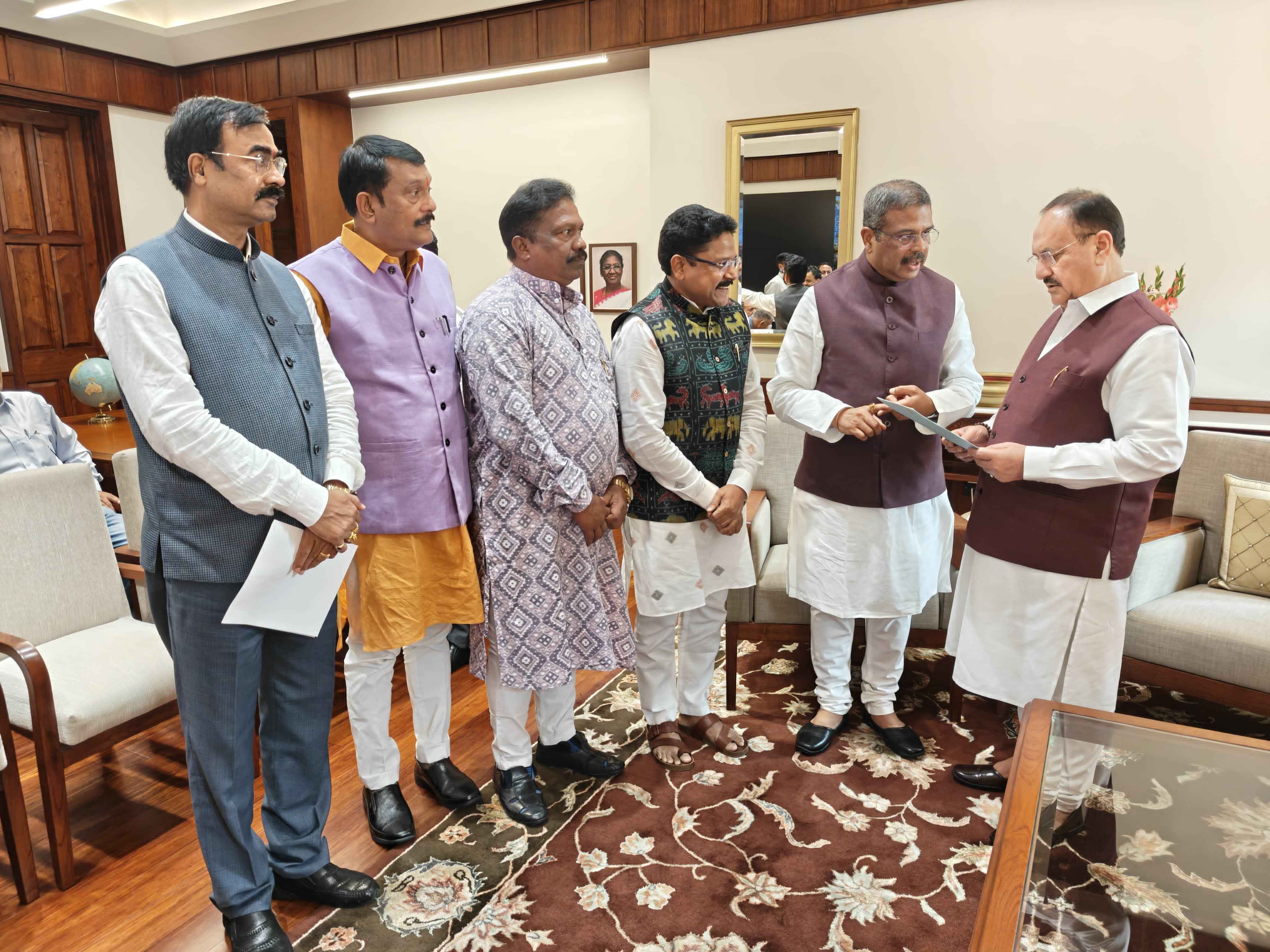 ଭୁବନେଶ୍ଵର(ପ୍ରେରଣା ଖବର): ଆଜି ମାନ୍ୟବର କେନ୍ଦ୍ର ଶିକ୍ଷା ମନ୍ତ୍ରୀ ଶ୍ରୀ ଧର୍ମେନ୍ଦ୍ର ପ୍ରଧାନଙ୍କ ତତ୍ଵାବଧାନରେ ମାନ୍ୟବର ସ୍ୱାସ୍ଥ୍ୟ ଓ ପରିବାର କଲ୍ୟାଣ ମନ୍ତ୍ରୀ, ଓଡିଶା ସରକାର ଡ଼ ମୁକେଶ ମହାଲିଙ୍ଗ ତାଳଚେରର ପବିତ୍ର ମୋହନ ପ୍ରଧାନ ମେଡିକାଲ କଲେଜ ଏବଂ ଫୁଲବାଣୀ ର ସରକାରୀ ମେଡିକାଲ କଲେଜର ୨୦୨୫-୨୬ ଶିକ୍ଷାବର୍ଷ ପାଇଁ ସମୁଦାୟ ୨୦୦ ଏମବିବିଏସ ସିଟରେ ନାମ ଲେଖା ପାଇଁ ମାନ୍ୟବର କେନ୍ଦ୍ର ସ୍ୱାସ୍ଥ୍ୟ ଓ ପରିବାର କଲ୍ୟାଣ ମନ୍ତ୍ରୀ ଶ୍ରୀ ଜଗତ ପ୍ରକାଶ ନଡ୍ଡାଙ୍କୁ ଭେଟି ଅନୁମତି ପତ୍ର (LoP) ଅନୁରୋଧ କରିବା ସହ ରାଜ୍ୟରେ ସ୍ୱାସ୍ଥ୍ୟ ସେବା କୁ ଉନ୍ନତତର କରିବା ପାଇଁ ପୁଙ୍ଖାନୁପୁଙ୍ଖ ଆଲୋଚନା କରିଛନ୍ତି ।