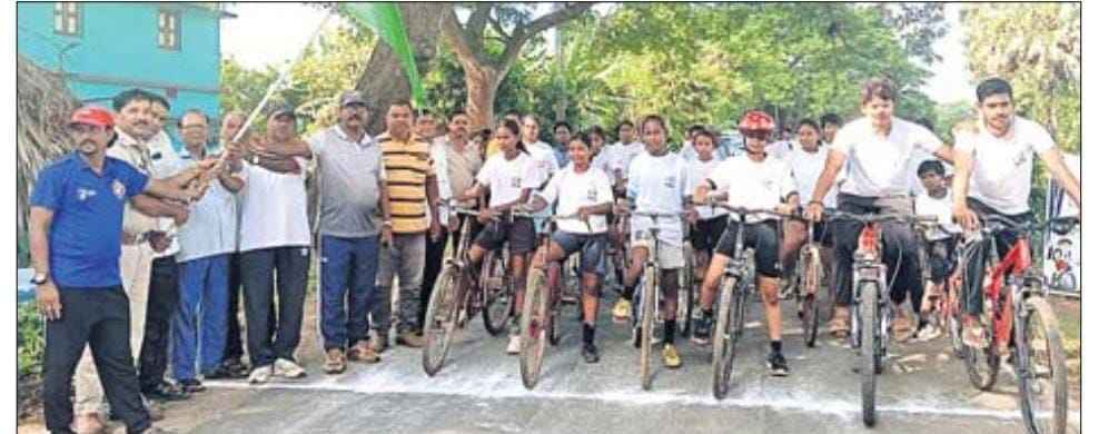 ବରୀ(ରଞ୍ଜିତ ମହାନ୍ତି):ସାଇକେଲ୍ ଶୋଭାଯାତ୍ରାକୁ ଅତିଥ ପତାକା ଦେଖାଇ ଇ ଶୁଭାରମ୍ଭ କରୁଛନ୍ତି ।